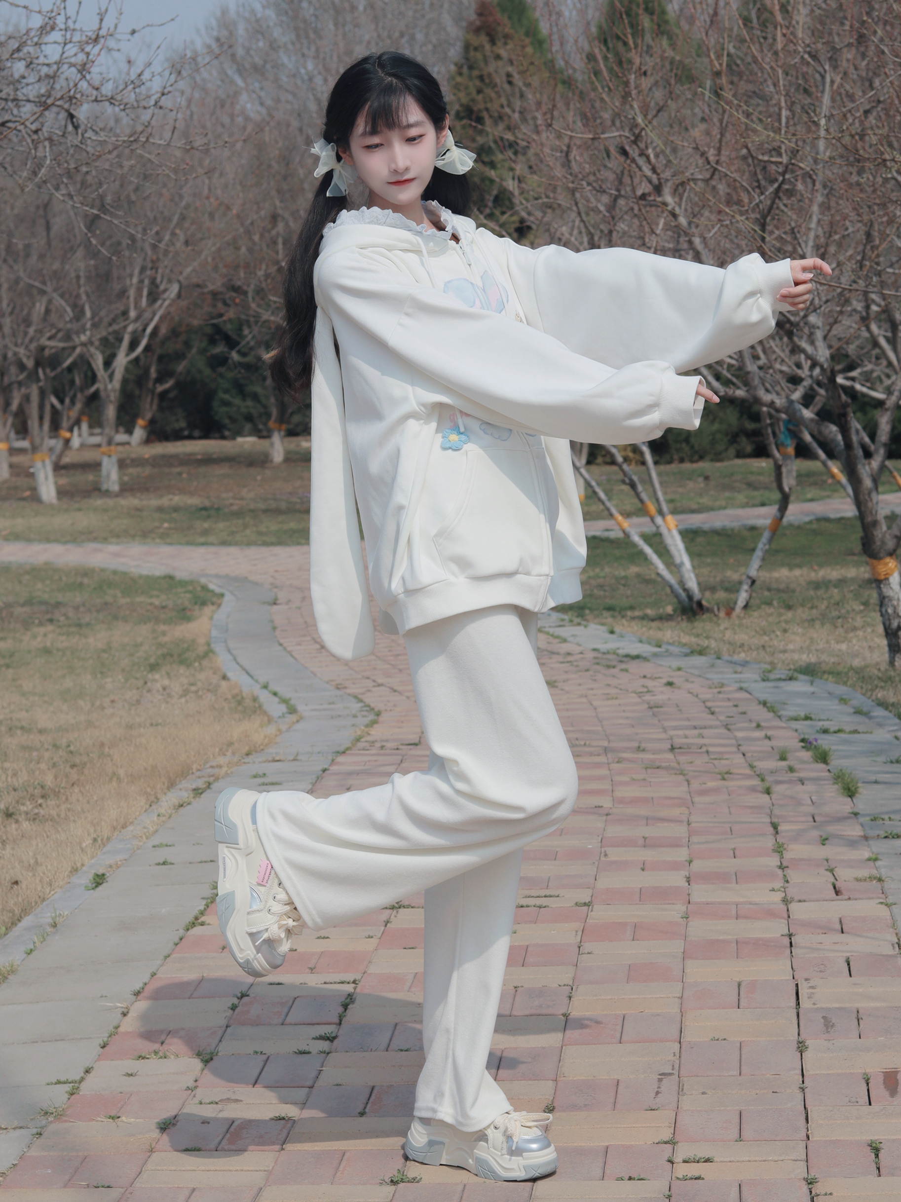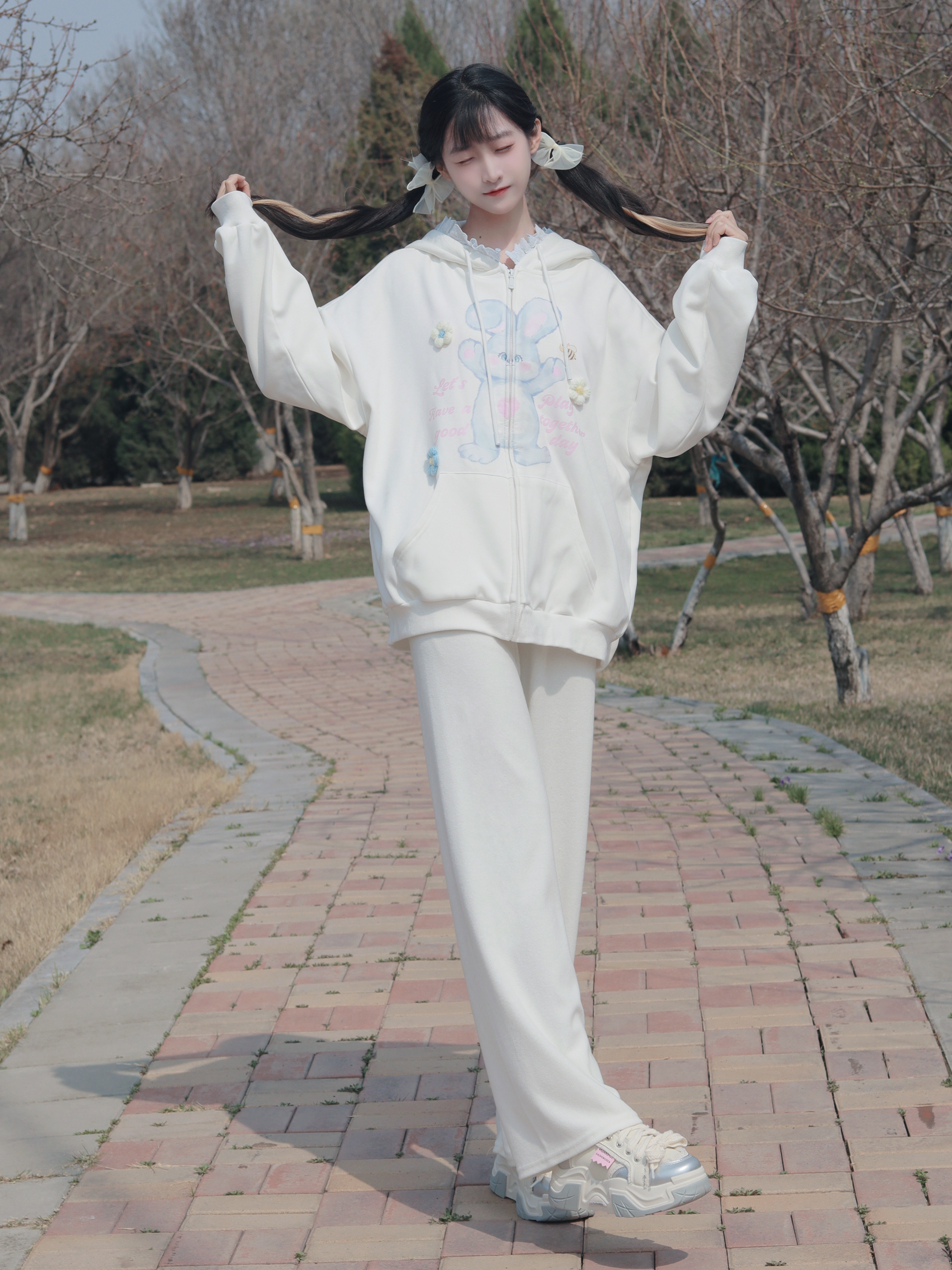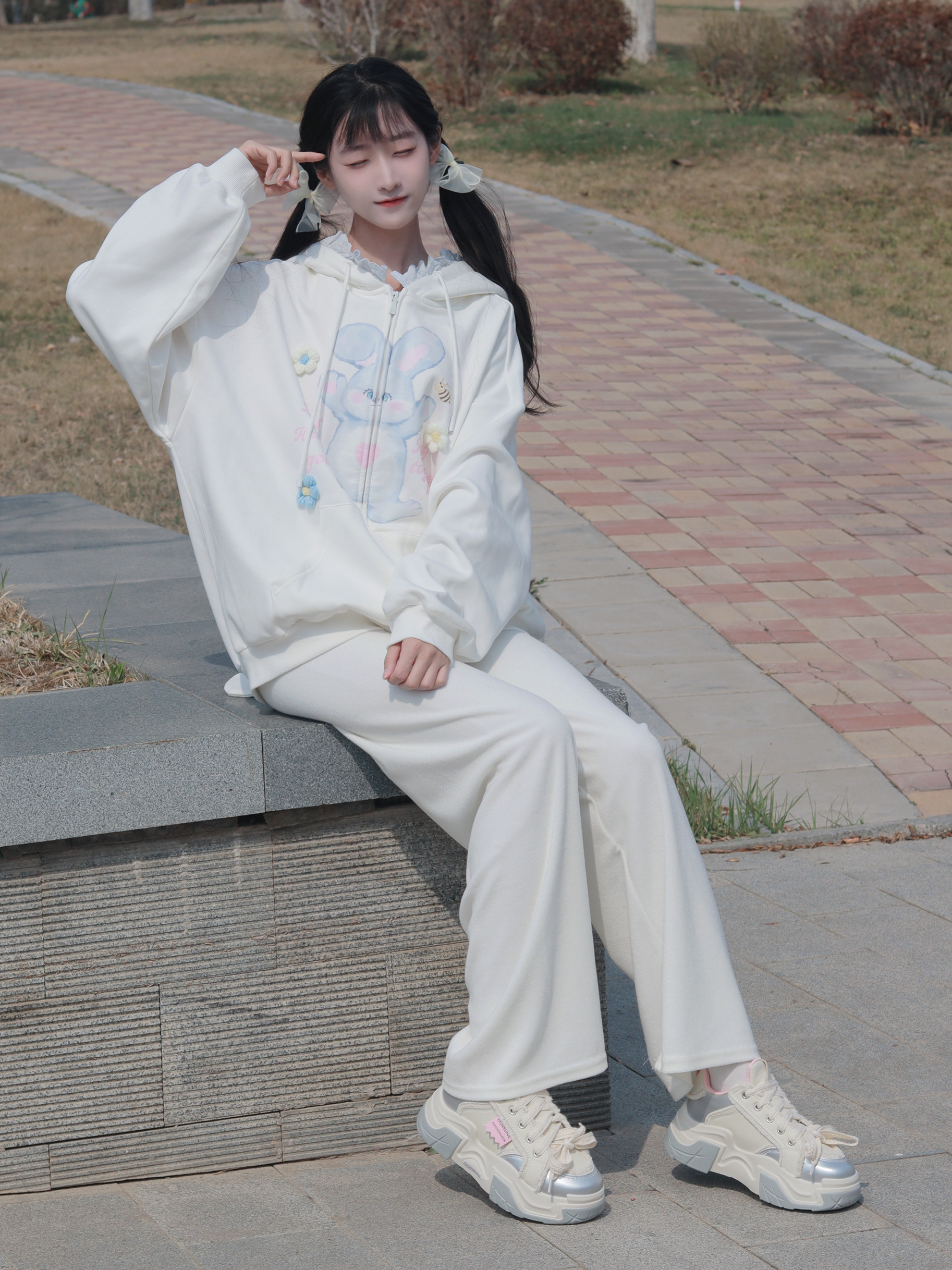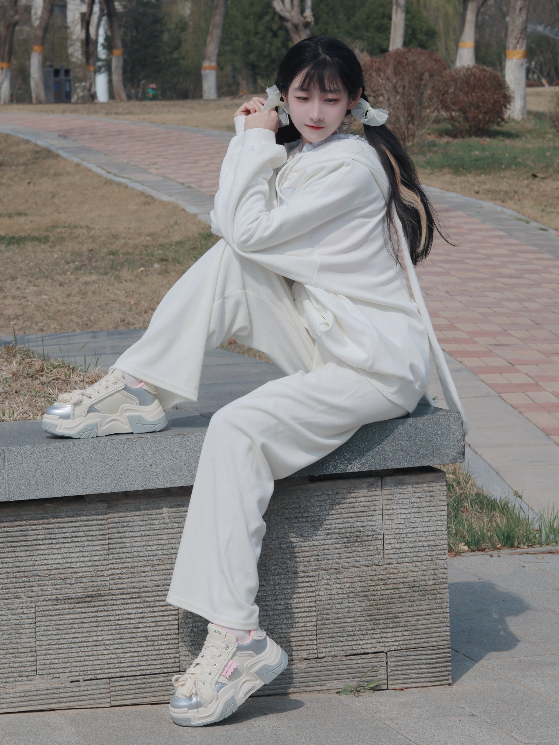 白色外套🧥减龄俏皮 搭配同色系直筒裤和厚底鞋 甜美可爱又不失个性~