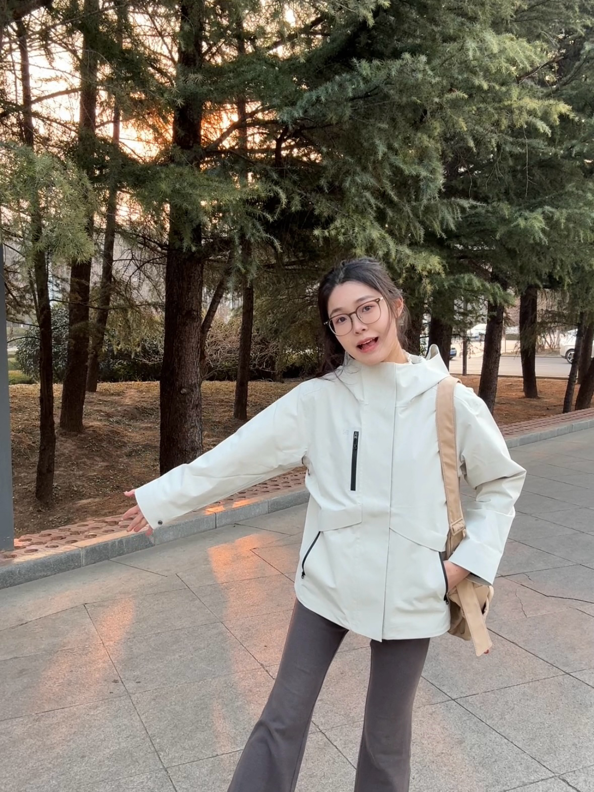 谁说美眉穿冲锋衣一定要帅气😎 也可以穿出清冷美女感~ 我选择了这款比较高级的白桦木色 - 细节做的都不错 袖口有个暗扣 可以扣上防风 比较喜欢它的防水和通气性👍 - 尺码偏小 建议买大一号 增强包裹感 天冷里面可以套内胆也🆗 📍170/92上身m码效果