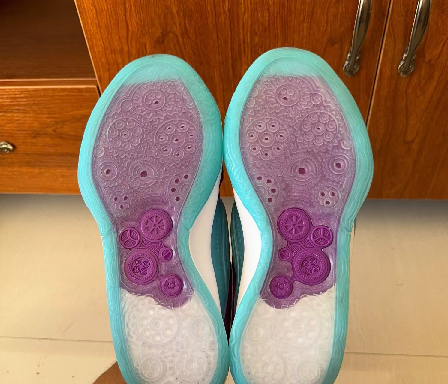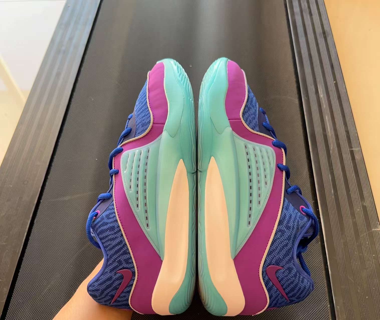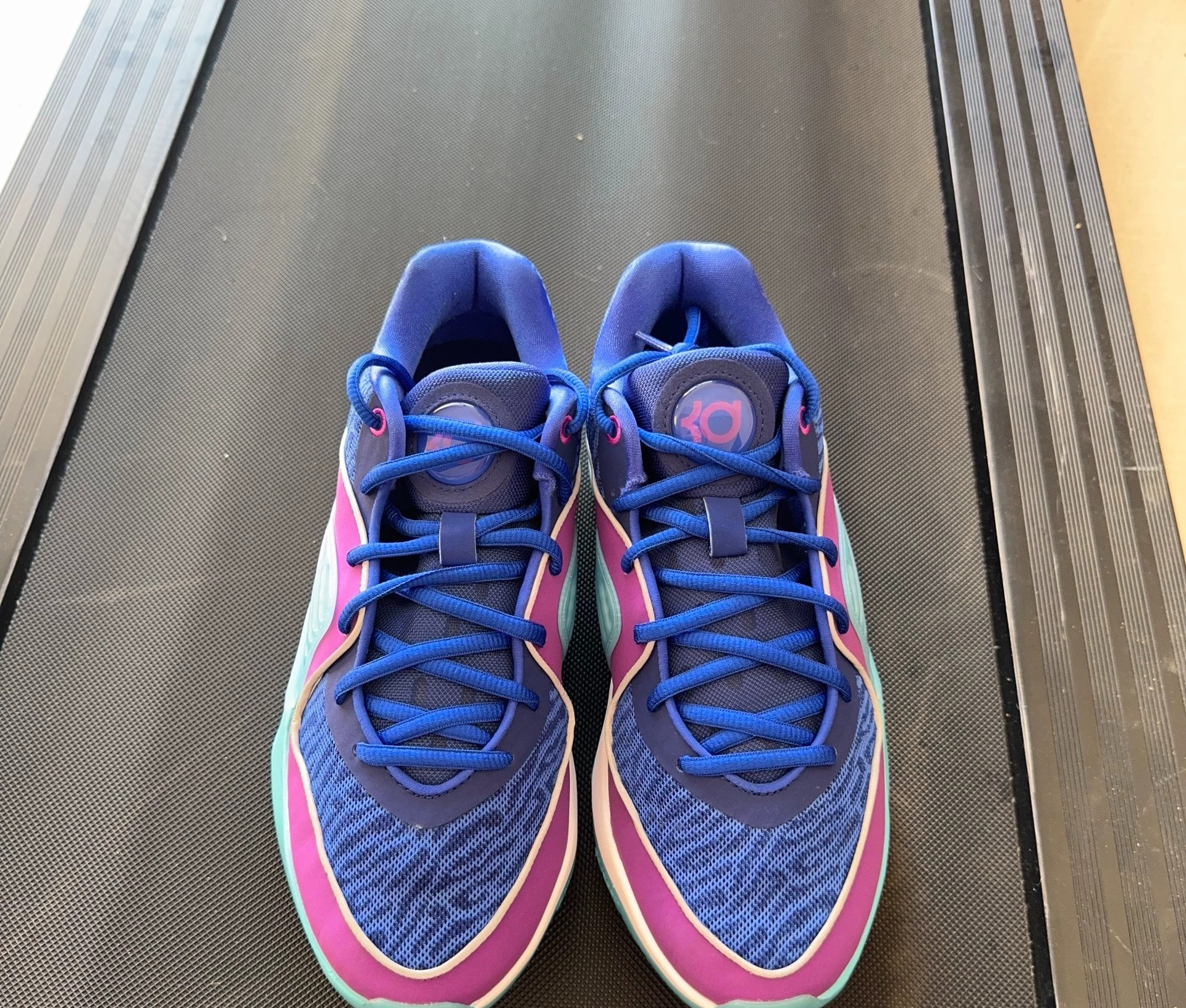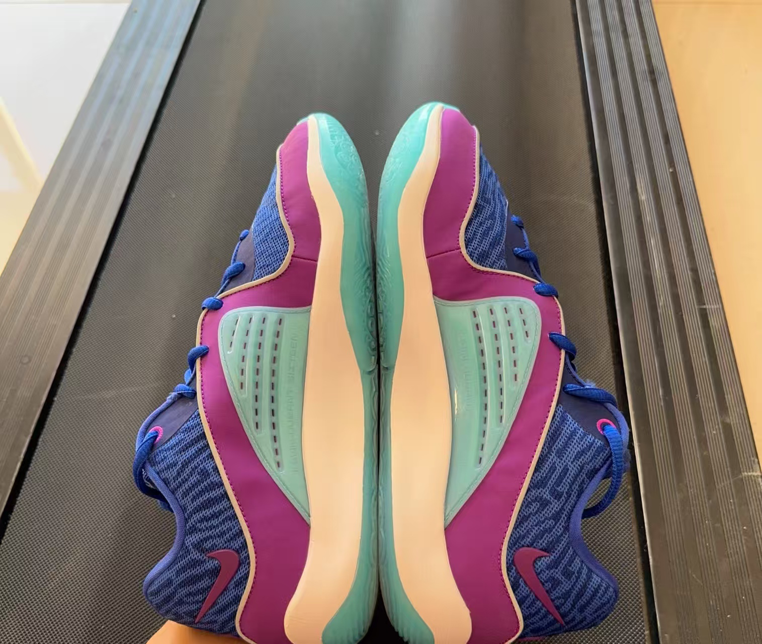 Nike KD 16蓝紫男款低帮实战篮球鞋 - 前掌反馈灵敏:前掌搭载Zoom Air气垫,踩开后软弹适中,能提供良好的缓震和回弹力,无论是突破、跳投还是日常行走,每一步都有明显的气垫反馈感,不会出现泄力的情况。 - 后掌缓震有效:后掌采用Air Sole气垫,虽然相对前掌逊色,但仍具备一定的缓震能力,能在一定程度上减轻落地时对脚部和关节的冲击。 - 材质舒适:鞋面采用网眼布搭配防麂皮...
