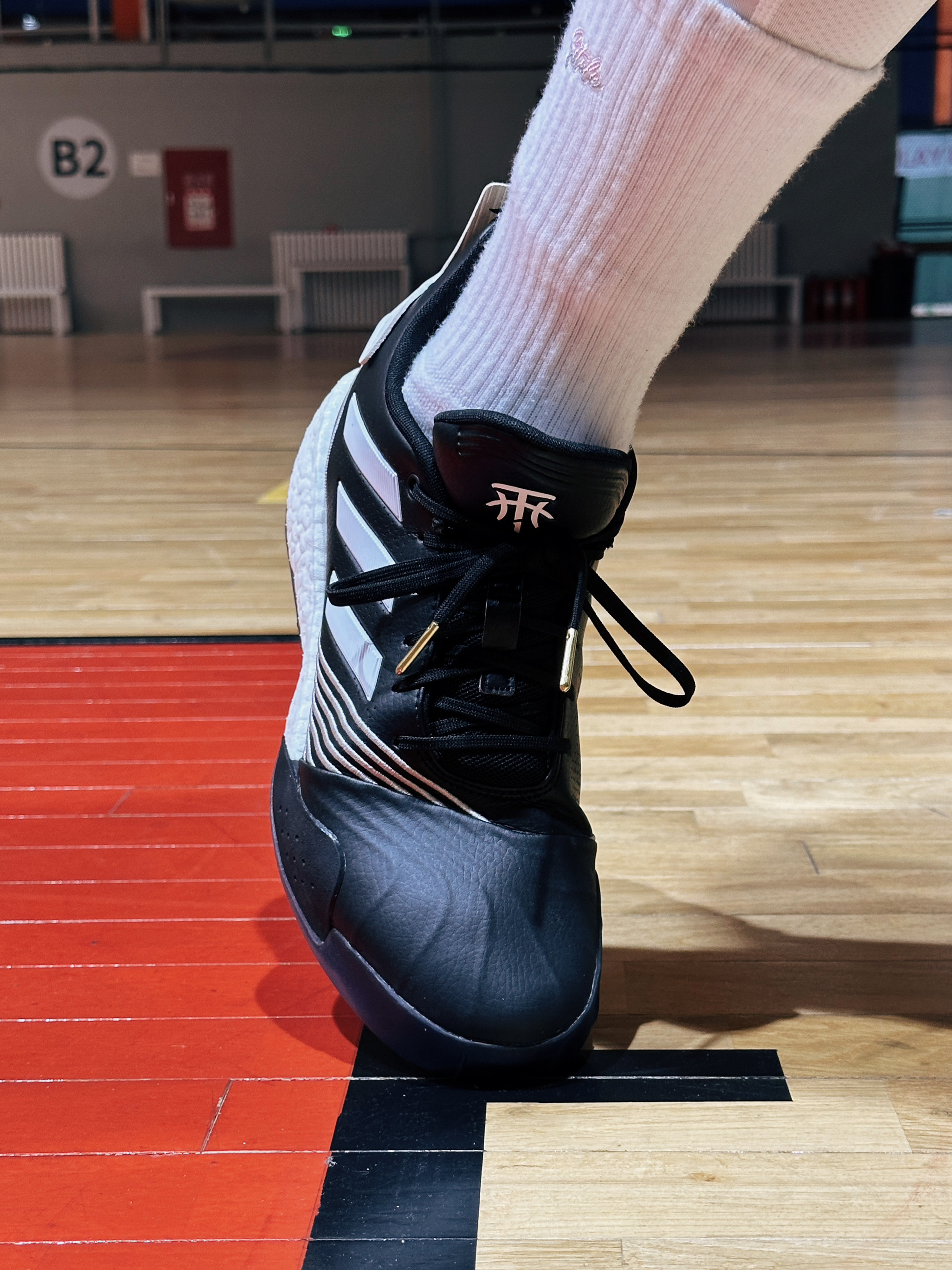 上脚以后我是 45 的窄脚型 低脚背 扁平足,我穿 45 的鞋正合适,鞋楦做的正常,不宽也不窄,高度合适,不压脚背,所以脚型适配度很理想,由于全身大面积的皮革材质,所以强度很棒,但是贴合感有些生硬,前掌卡脚的感觉明显,所以上脚以后需要多磨合一下! 静态穿着的时候呈现出略微平缓的重心感受,坡度很自然,场地感没有,说实话你就闭着眼穿,真的很像 哈登2 的感觉!(中底的反馈) 缓震方面:纯弹的...