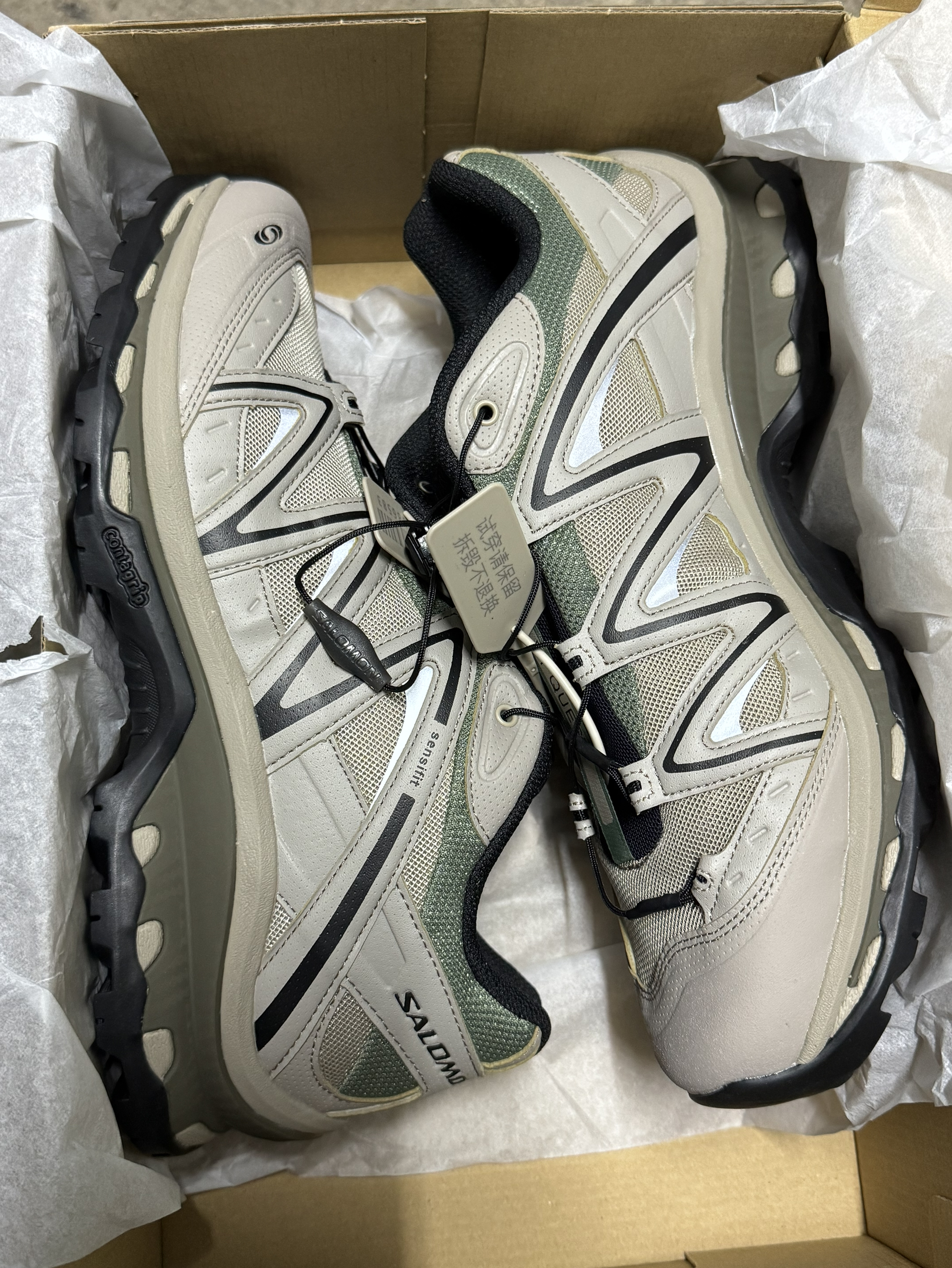 第三双salomon 码数正常选。后跟位置包裹感很强又不会卡 脚,脚背矮前脚掌位置有些晃。复古卡其和摩卡棕里一直犹豫,卡其更配运动风一些,更耐看。摩卡棕第一眼很出彩,但是鉴于不太耐脏还是选了卡其色。侧边反光条小细节也挺好看的。