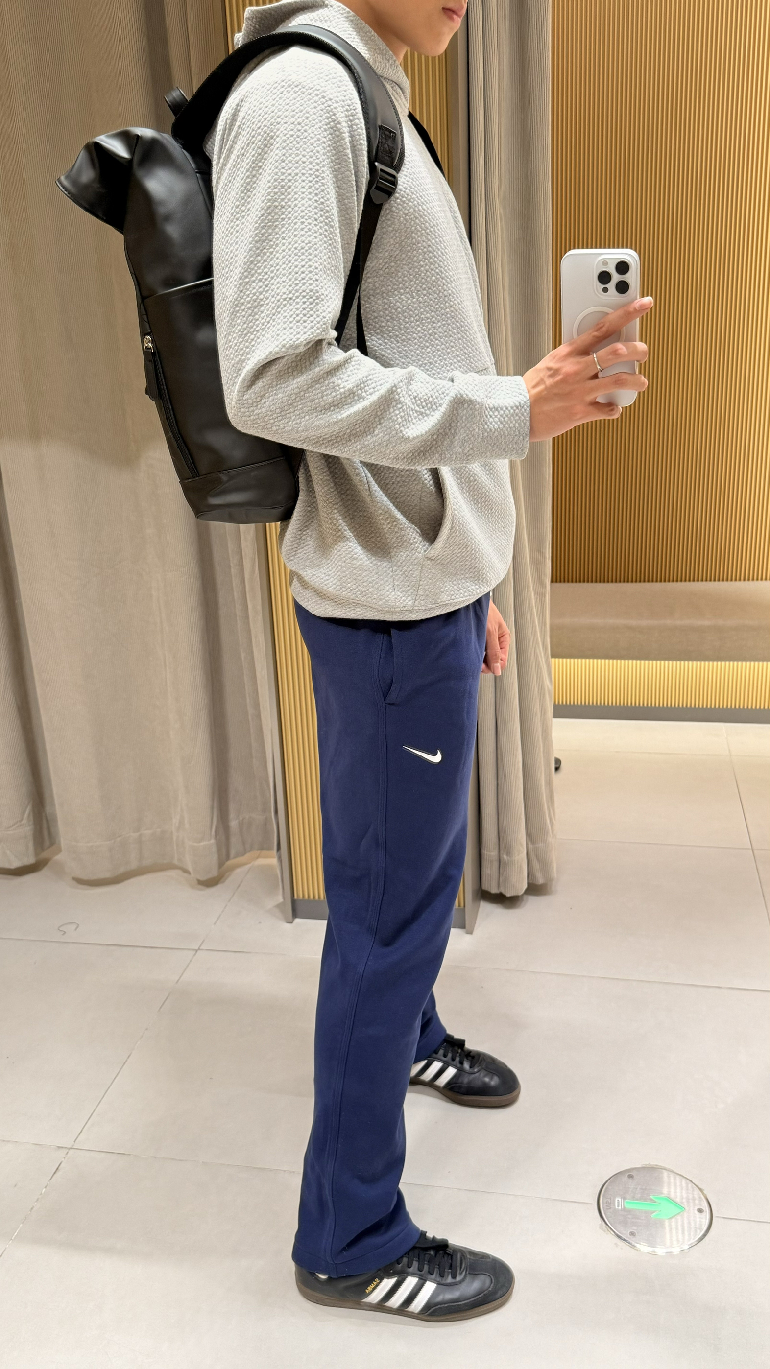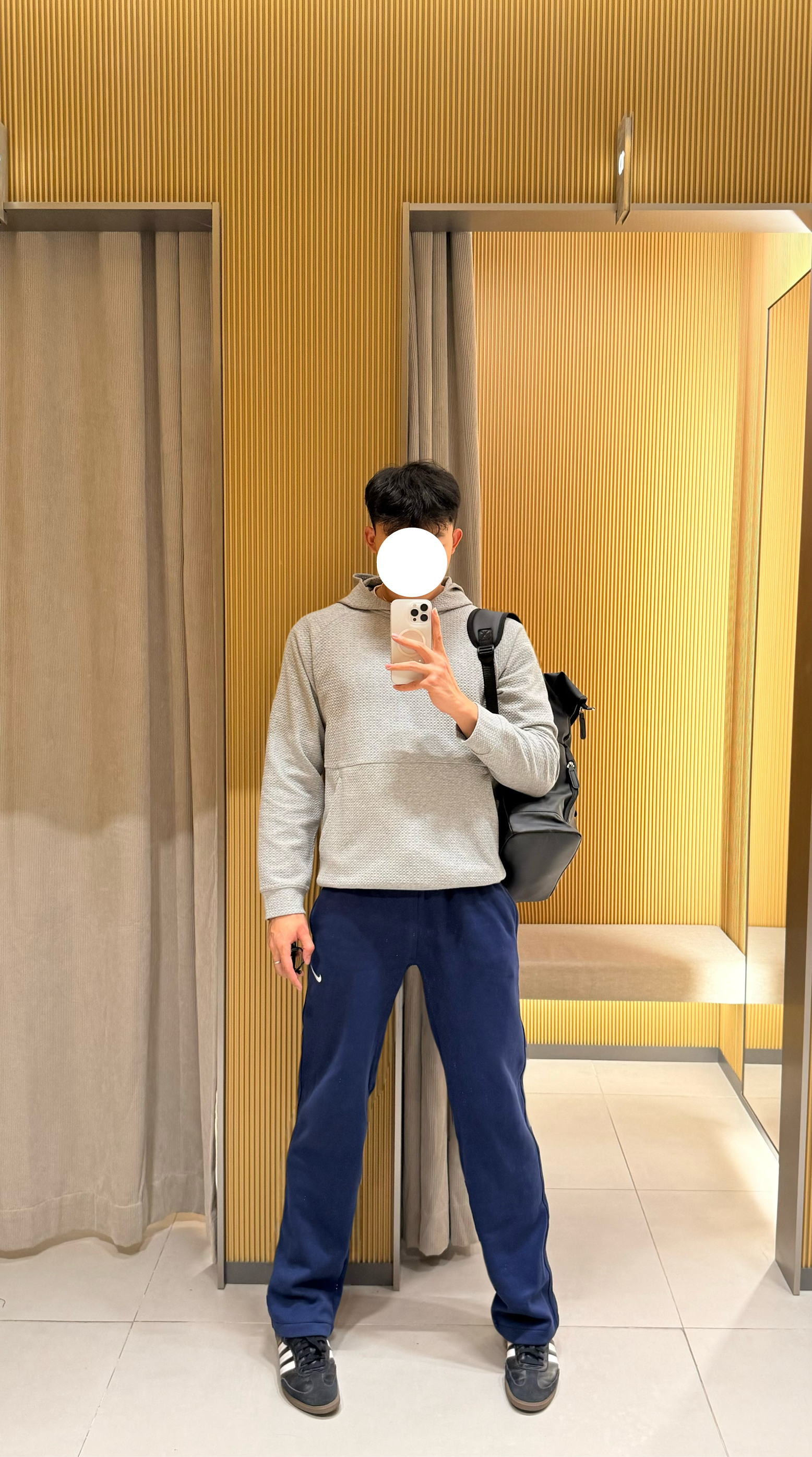 身高|体重:190/85kg 🧍♂️ 穿搭风格:休闲运动风 👔 上衣:华夫格卫衣 👖 下装:直筒nike卫裤 👟 鞋子:samba 🎒配饰:双肩包
