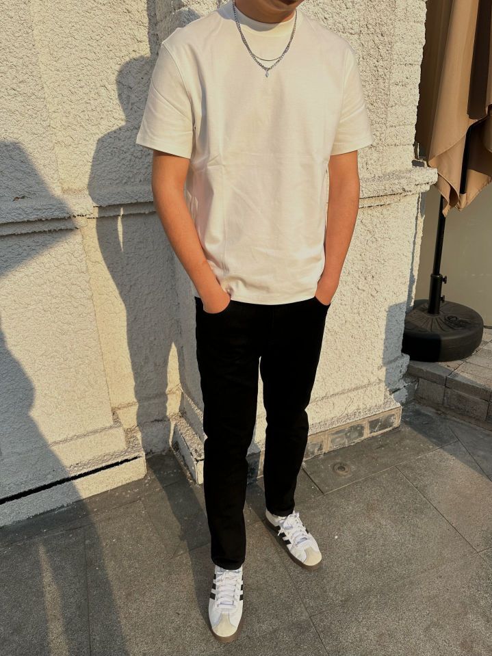 哈喽大家好,我是小沈。 众所周知,武汉是个没有春秋的城市,立春之后,我开始为夏天做准备了。 入手了#A.B.X 家的纯白T恤。基础款是所有穿搭的基础。白色又是百搭的颜色。 今天选择白T加黑色牛仔裤和德训鞋的组合,简单干净,再配上项链和帽子的点缀。简单大方。