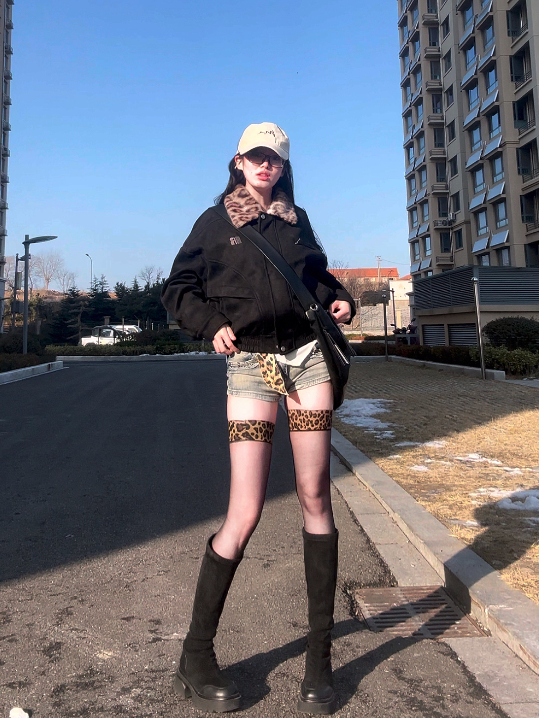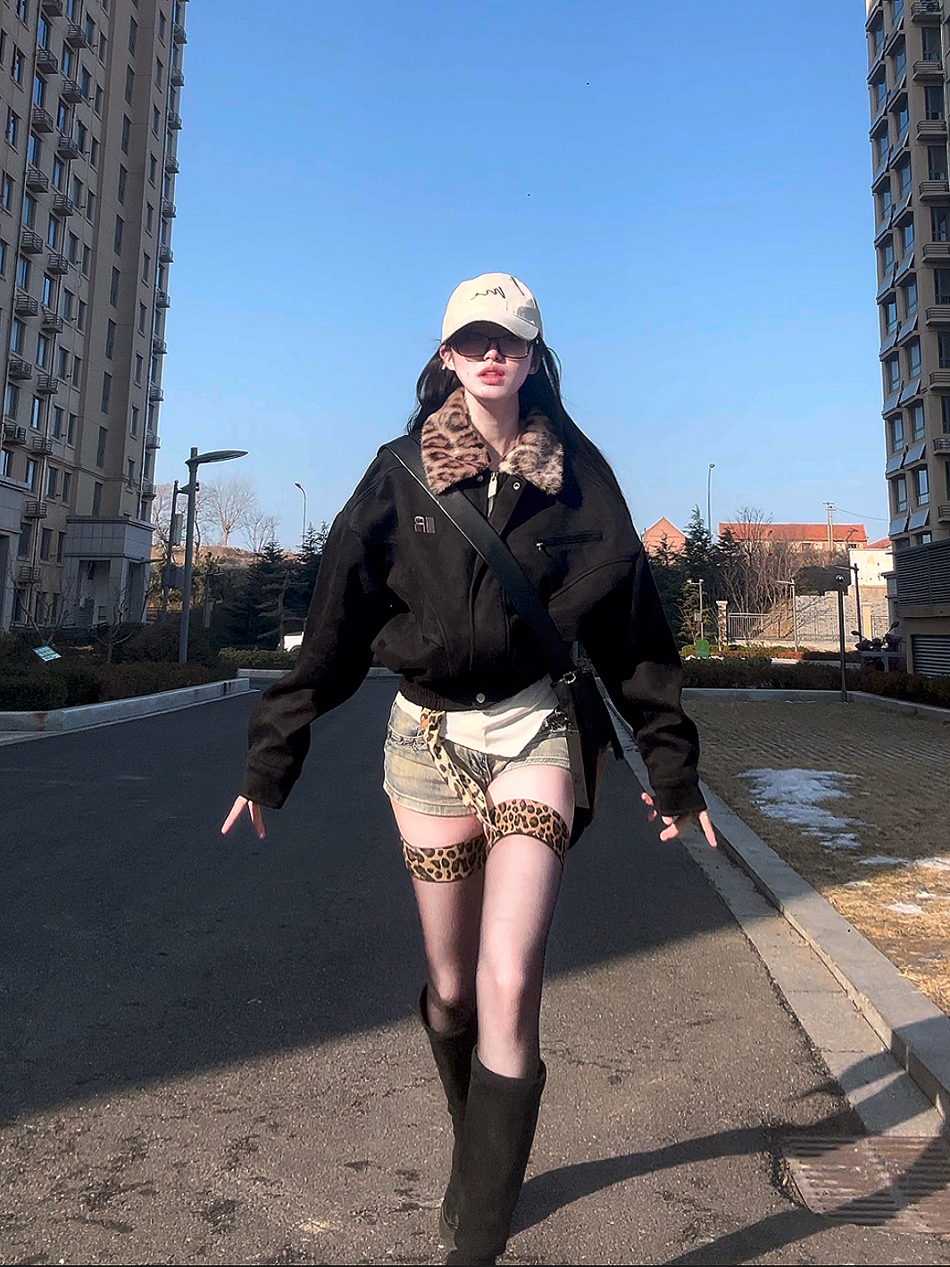 🧥: FDR 🧍♀️:160cm 44kg 📏:S码 这一套回头率真的拉满啦 衣服版型好时髦,麂皮拼接设计很特别 豹纹元素是我必须要夸的!! 豹纹毛领性感又俏皮又俏皮 外套保暖又时髦,贴身穿也亲肤 搭配豹纹边丝袜也太吸睛啦 简直是炸街必备的一套!