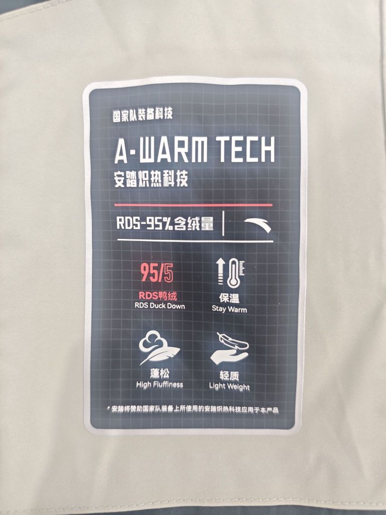 安踏冰甲羽绒服,两天就到啦,物流真的很快,羽绒服的颜值也是非常高,我给大家说一下它的优秀点吧 优点:穿起来非常合身,并且暖和,使用了安踏的国家队科技,保暖性能嘎嘎强,并且原价1000多元的它现在600元以内就能到手,还是非常有性价比的 缺点:袖口的地方是灰色,感觉不耐脏,要是袖口是黑色就好了,那样会更耐脏 总体来说,这次购物体验非常满意!安踏产品质量上乘,发货速度快,强烈推荐给大家