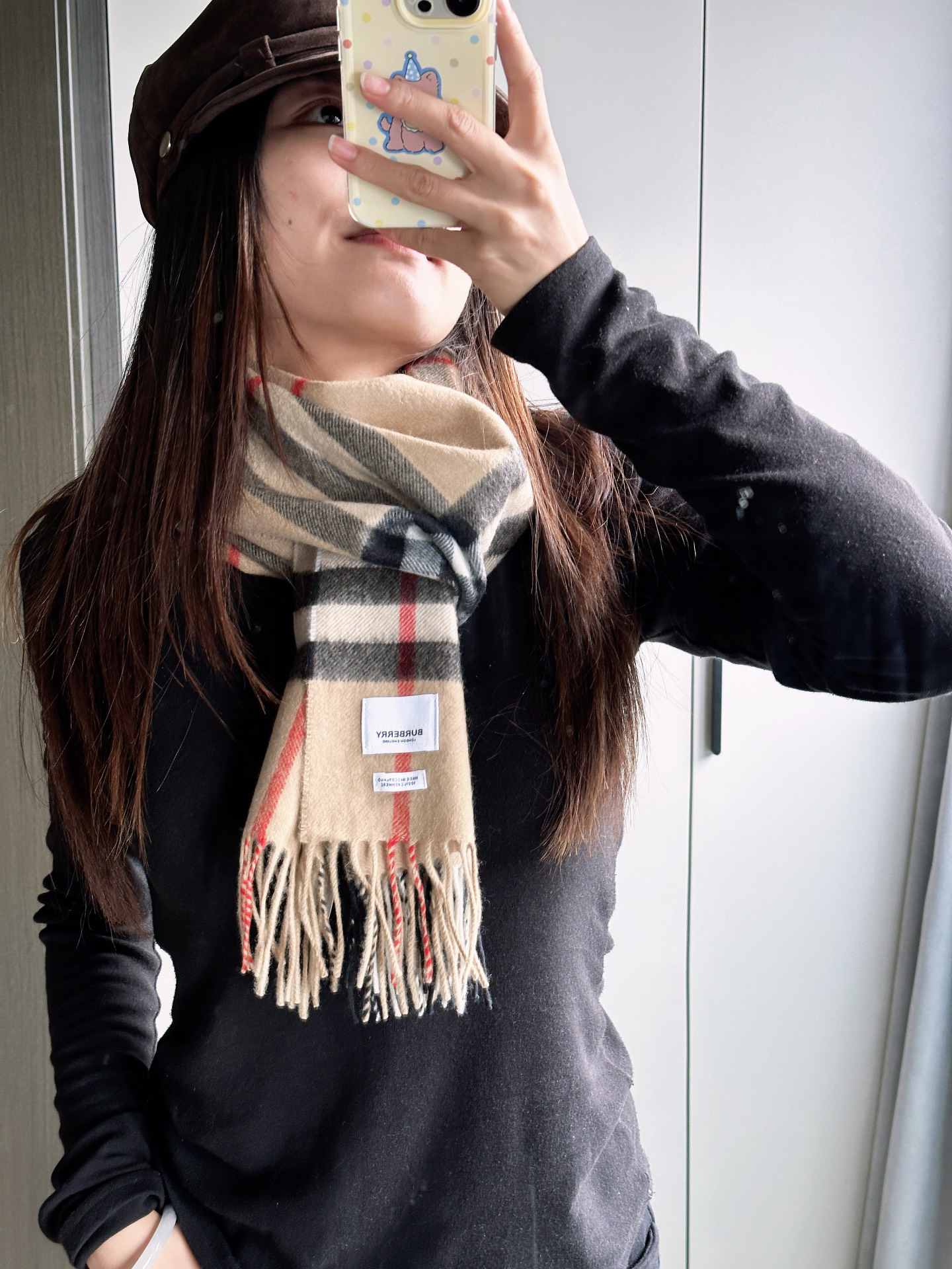 Burberry的围巾到货啦,一眼心动。羊毛的材质摸起来超级柔软,很保暖,搭配大衣再合适不过了,冬天就是需要一条百搭实用的围巾。 🧚🏻♀️经典的格子设计,显得人很有气质。围巾真的是秋冬季节不可或缺的单品了,不仅保暖还适合搭衣服。 图源于@_泓泓泓,侵删