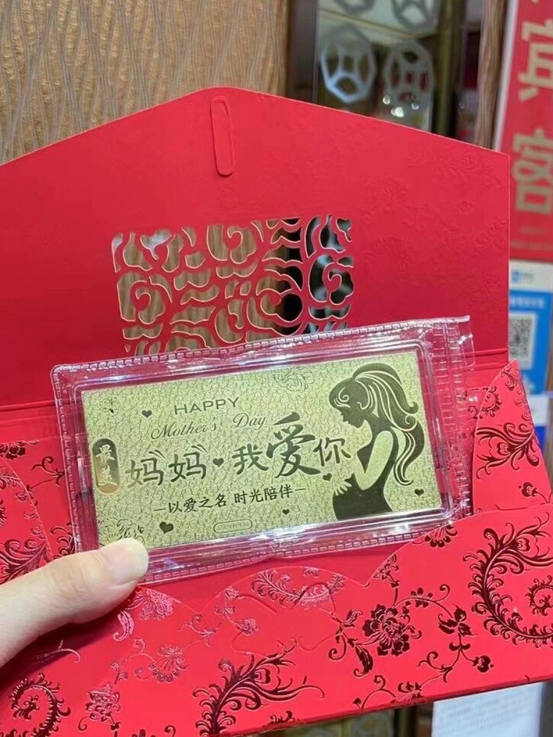 我已经给妈妈提前准备好母亲节礼物了🎁 足金999.9母亲节金钞 “妈妈我爱你”1g 带红包壳子包装 送礼佳品 一克足金999.9妈妈我爱你➕母亲节玫瑰花 妈妈不会拒绝的母亲节礼物 你们觉得好看吗?好想知道你们准备的礼物快跟我一起秀出你们准备的母亲节礼物叭‼ 图源网络,侵删