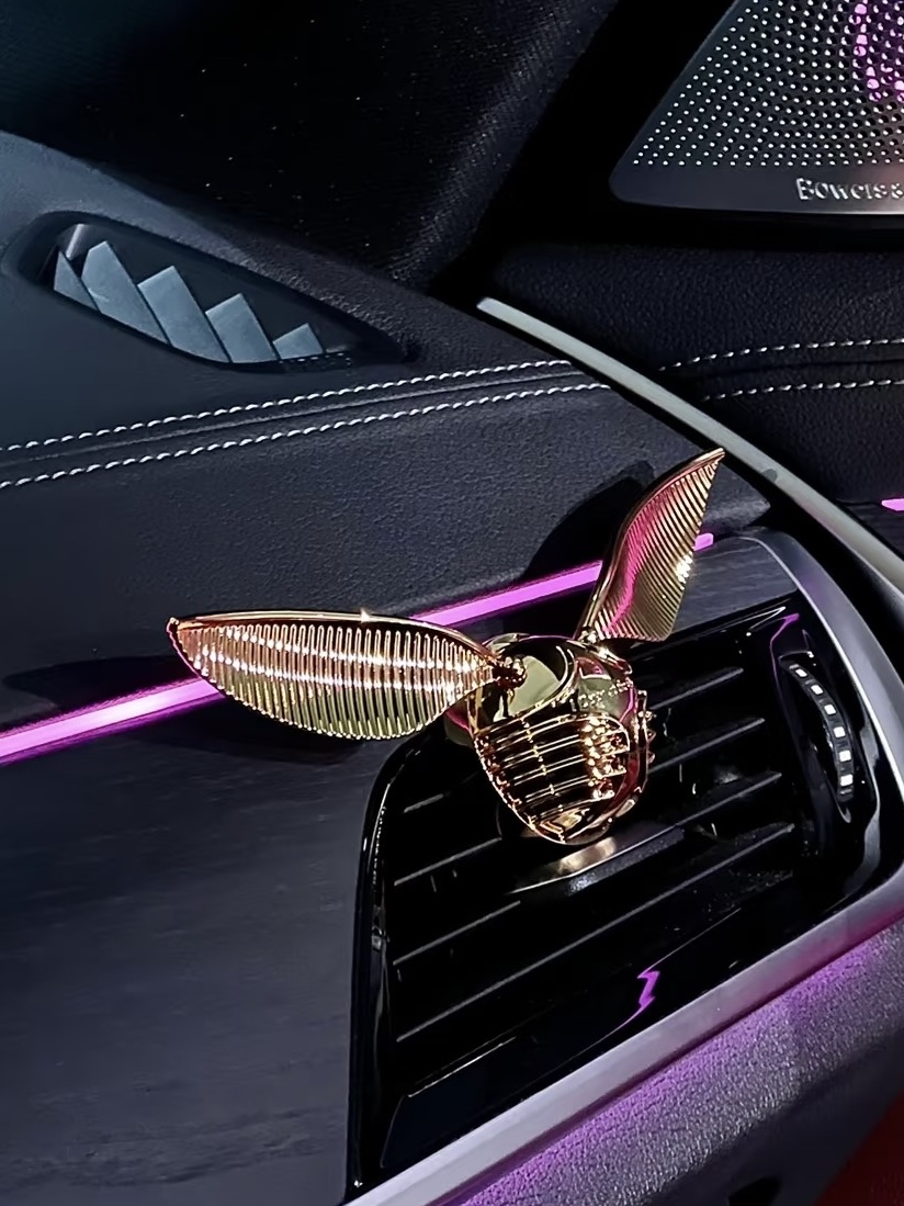 金色飞贼的香薰,需要一个小配件,刚好卡在特斯拉的空调出风口。比较稳固,一般颠簸不会掉,两个小翅膀,还挺好看的,自己也哈利波特迷,真的超级喜欢这一款香薰,颜值超级棒👍 图源网络,侵删