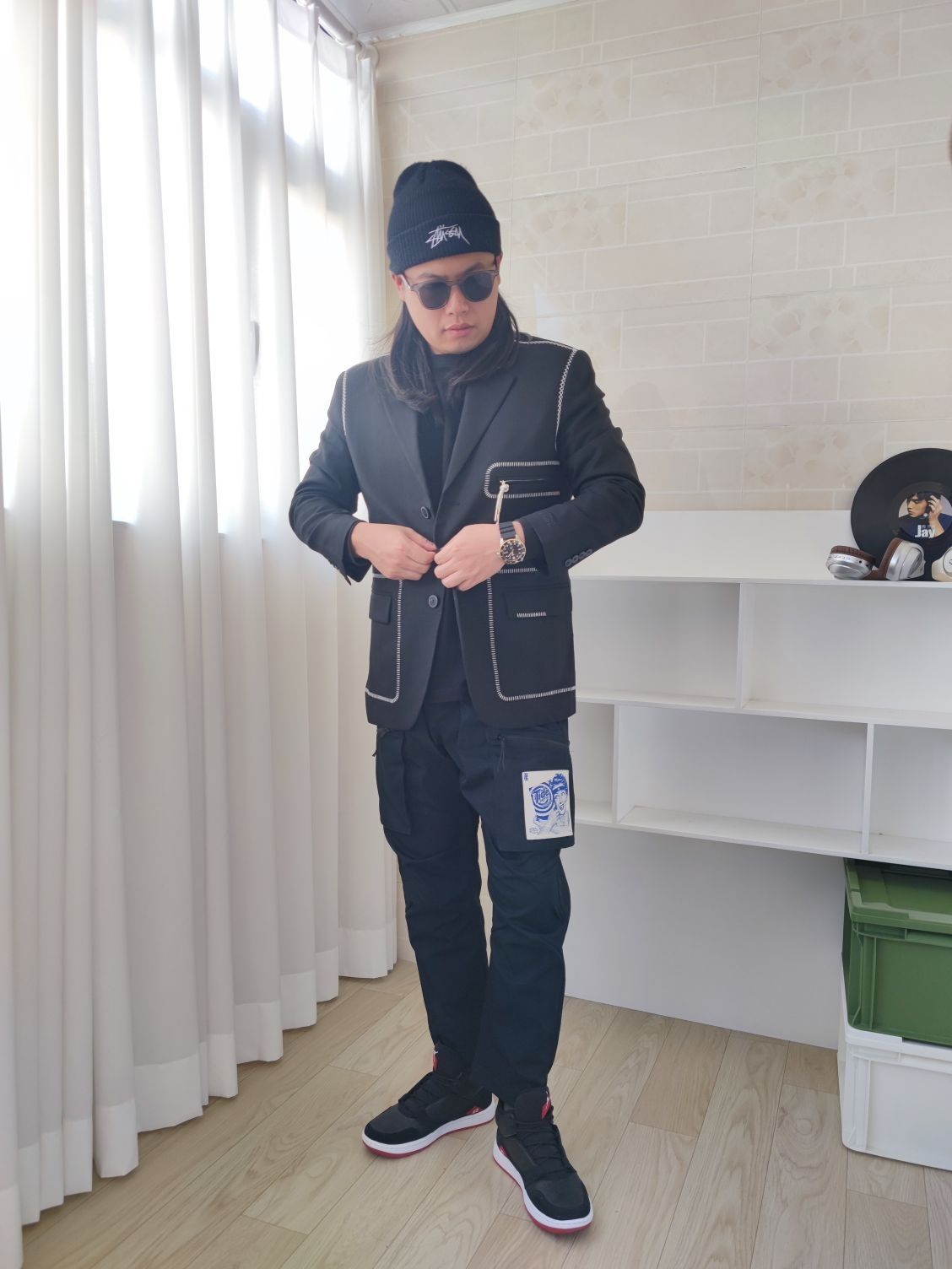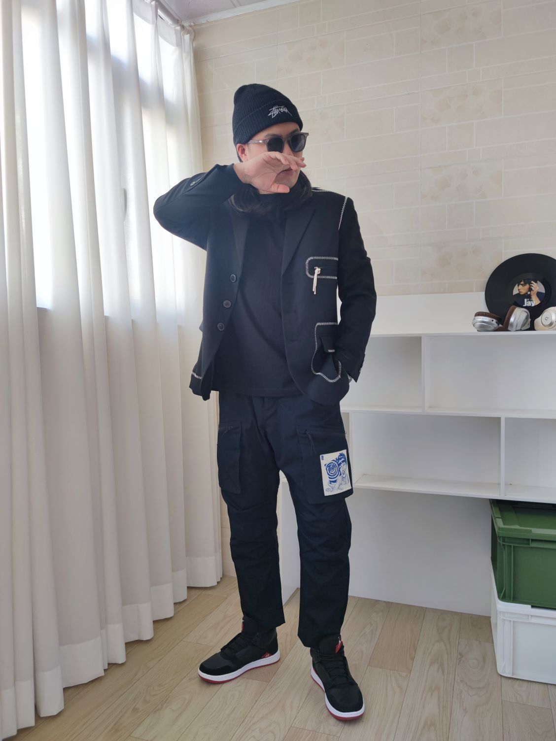 帅到没朋友的运动休闲风穿搭 👕上衣:LiNing李宁韦德系列休闲排扣V领西装(男款黑色) 👖裤子:LiNing李宁x汰渍联名款篮球工装裤(男款标准黑) 👟鞋子:Jordan Fadeaway中帮复古篮球鞋(男款黑红) 🧢帽子:钓鱼熊针织帽(男女同款情侣款) 家人们,男人想穿西装又怕太正经,试试这套!李宁的休闲西装,V领排扣设计,一点都不老气,穿着很自在。 下身搭联名工装裤,舒适还百搭,和西...