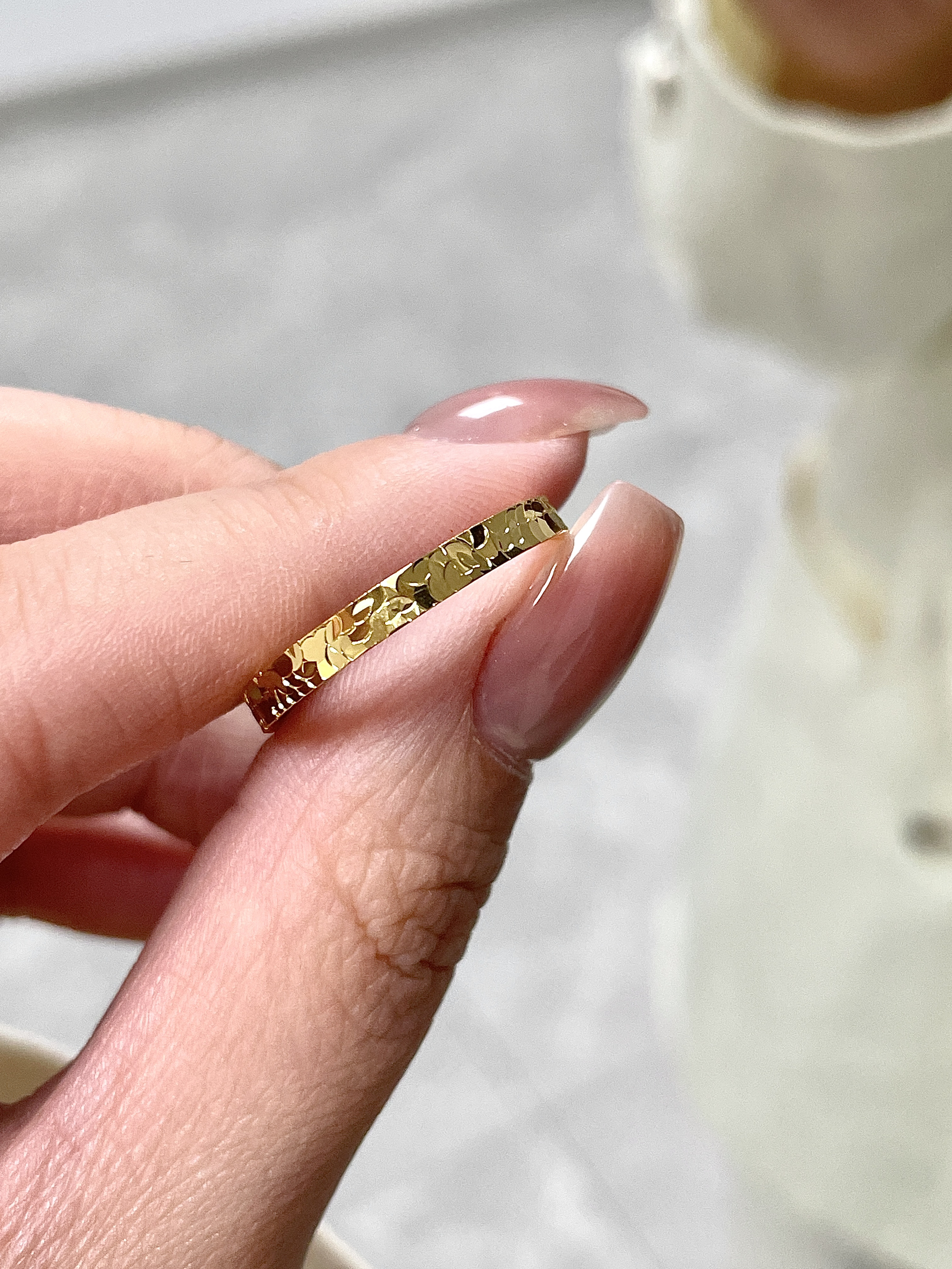 普通女孩的囤金日记之碎碎金戒指 我觉得实物真的好漂亮呀 碎碎闪闪的 贵气十足 戴在手上那一刻幸福感是无法言说的 希望自己能碎碎平安 金运连连 我想没有女孩能拒绝金子的疑惑吧