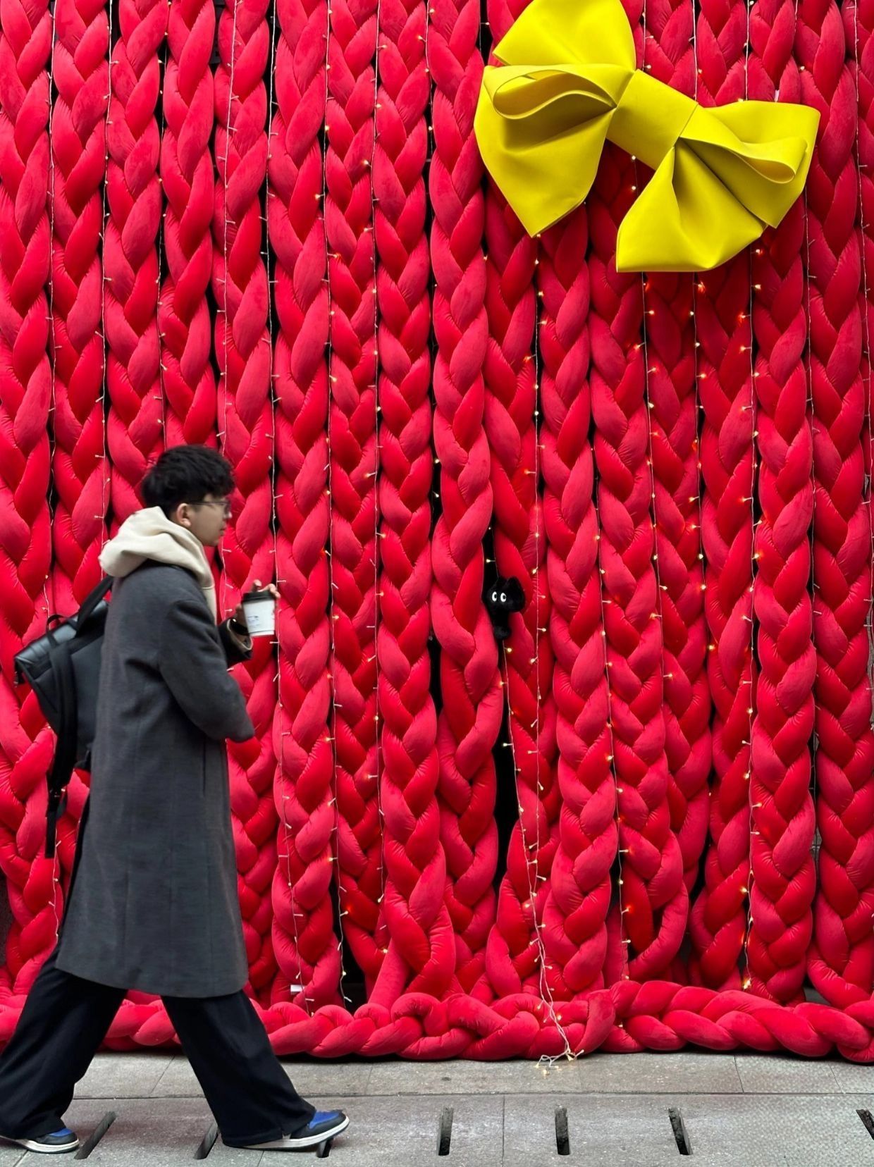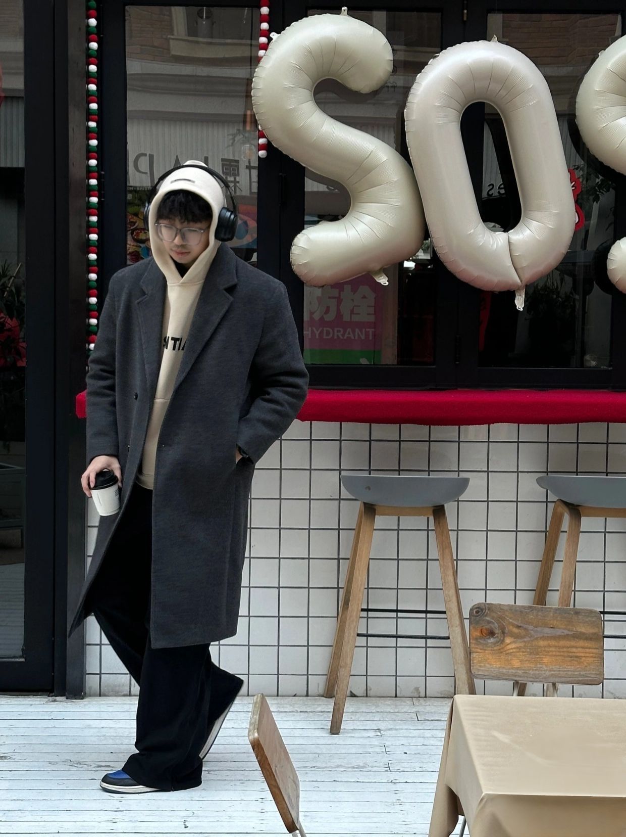 上身大衣配上连帽卫衣,裤子穿个阔腿裤,鞋子配上经典AJ。韩系范儿拉满!