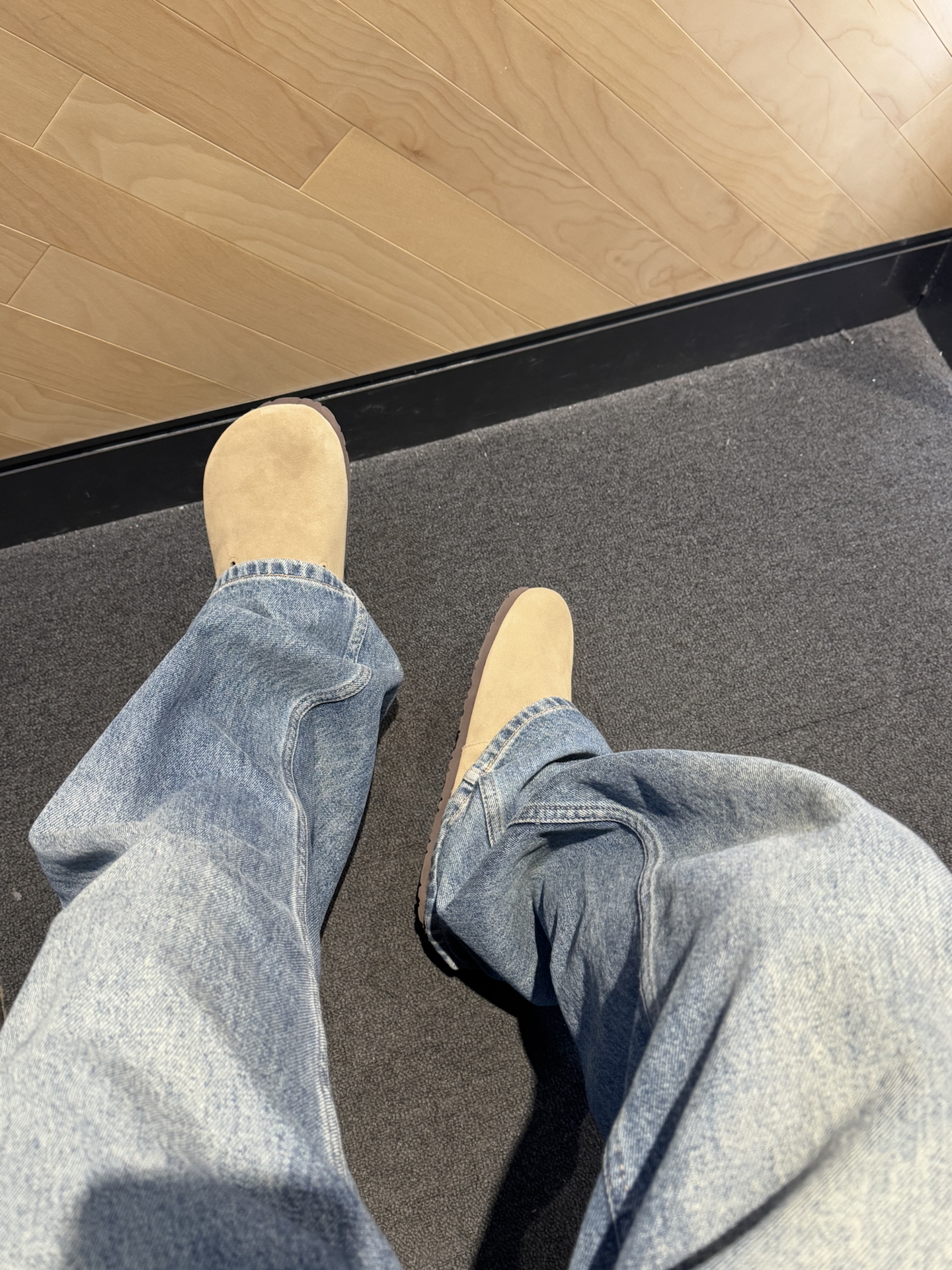 卡其色系和秋冬配度满分💯 加绒内里非常暖和懒人搭配的神器设计细节更是绝绝子~ 金色金属扣环和搭扣给整体增添了不一样的质感简约高级怎么搭都不出错真是谁穿谁好看~ 牛仔裤 itcheck 鞋柜