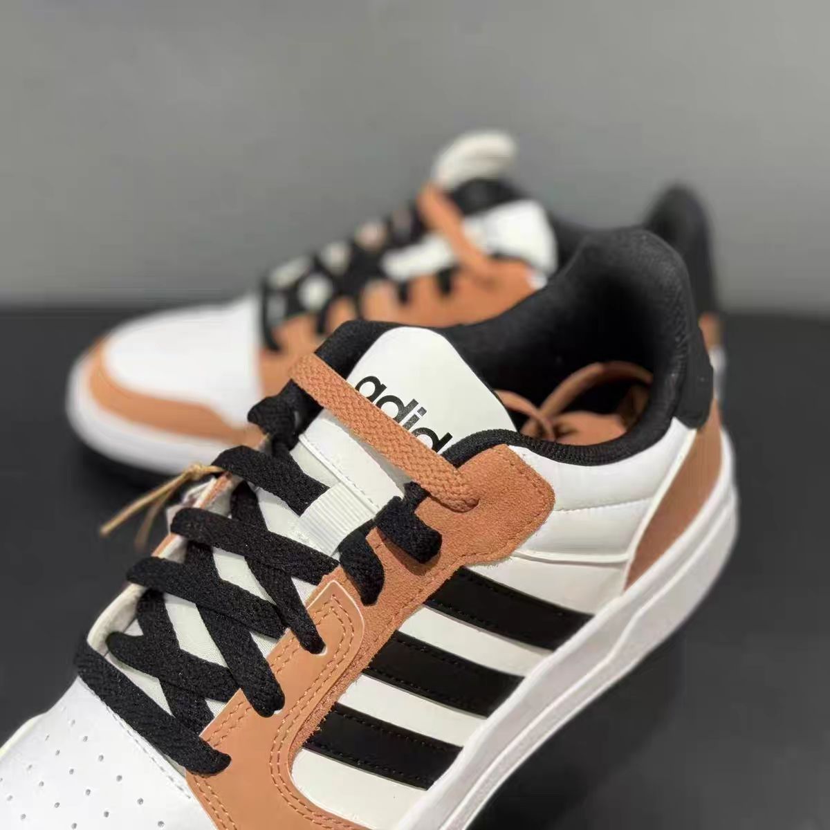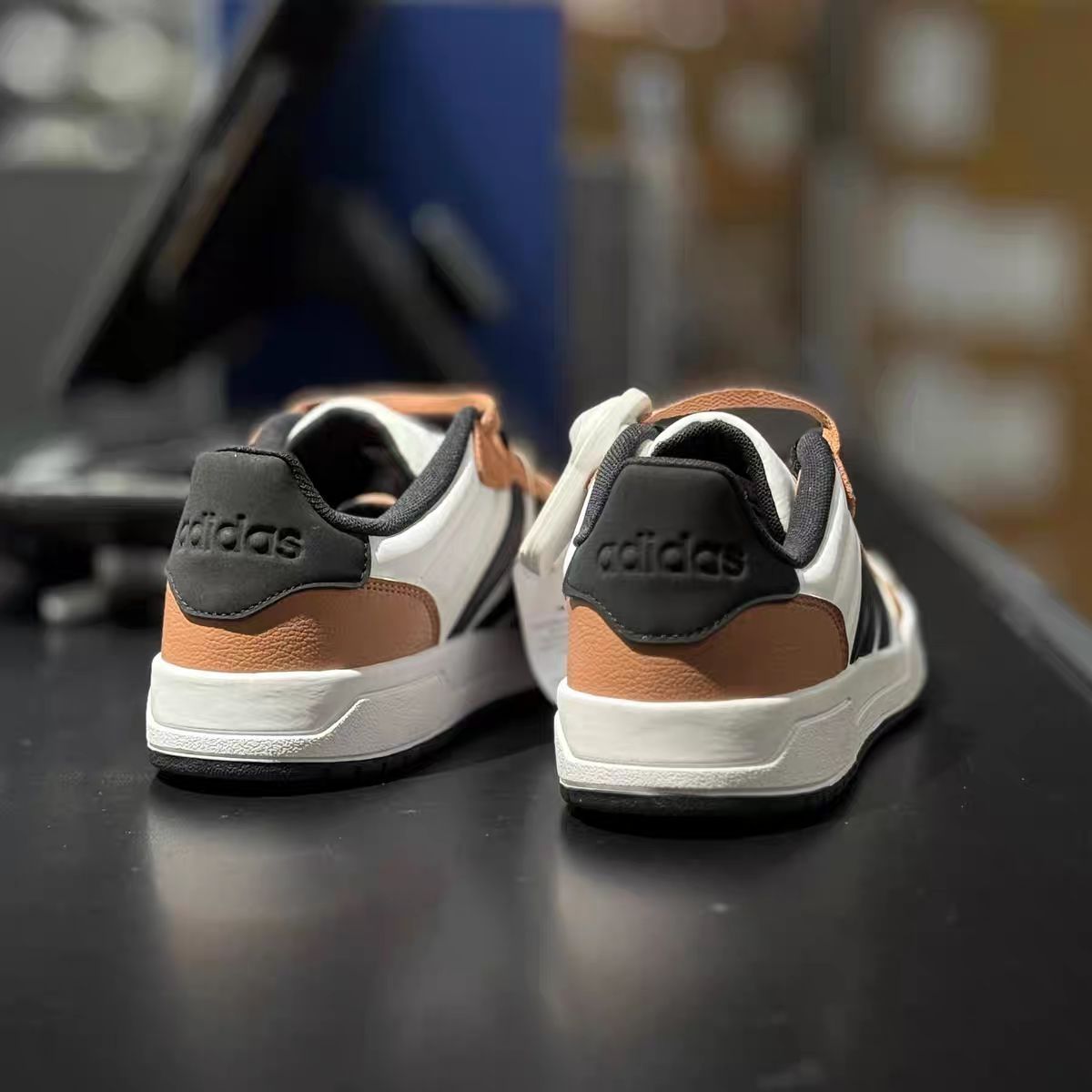 今天评测一款adidas neo Entrap 白色/黑色/棕色复古板鞋。 adidas neo Entrap系列复古板鞋以复古篮球风格为核心设计,结合现代时尚元素。皮革质地的鞋面是白色为主,翻毛麂皮的棕色条形环绕其外,营造出暖色时尚的氛围,黑色则是adidas经典三条杠的logo和鞋底、鞋带、鞋圈口的配色,给整双鞋子增添了很多质感。整双鞋以复古质感皮革搭配白黑色的撞色标牌,整体形象大气时尚,配色...