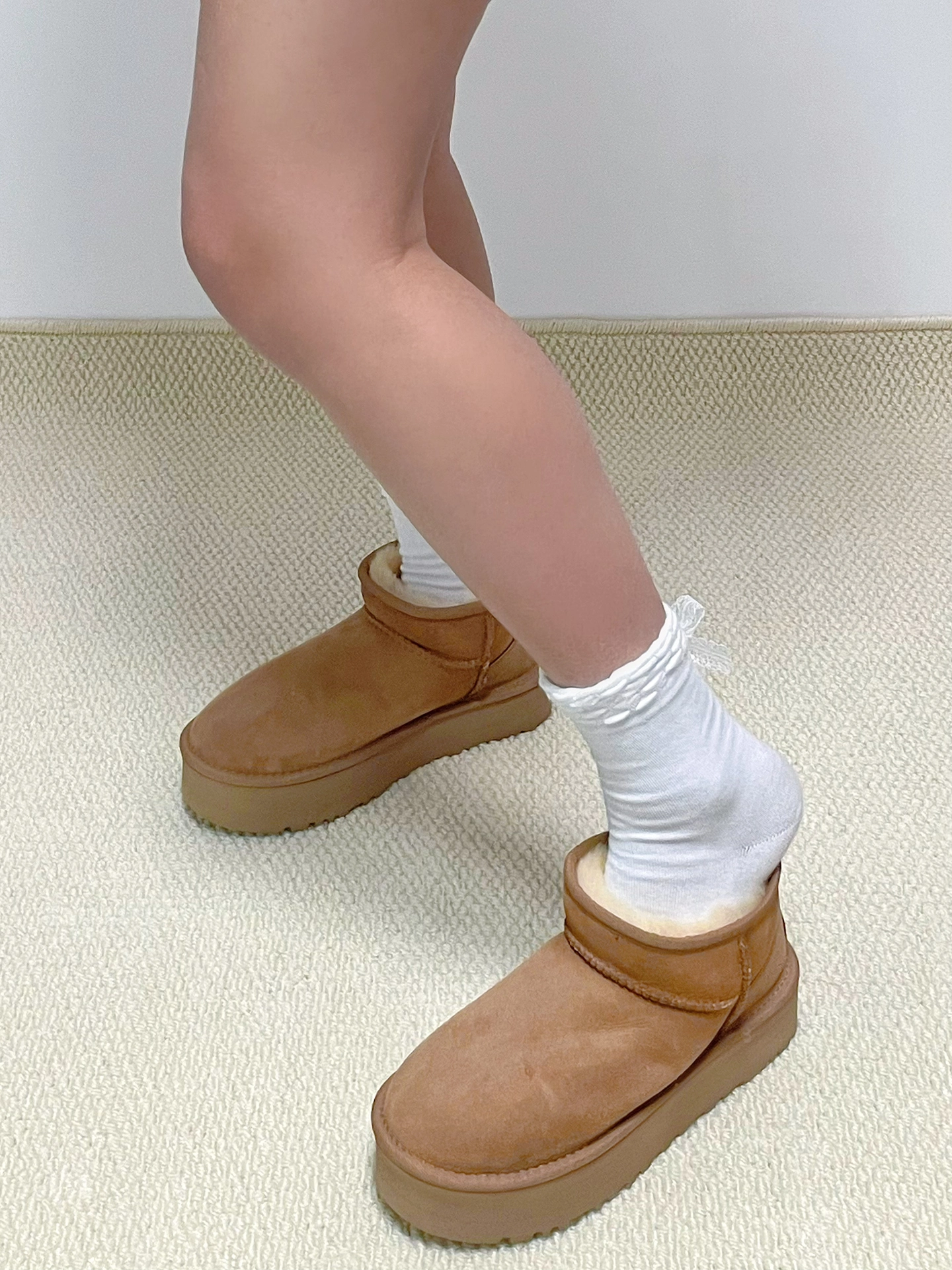 ugg mini真的太好穿啦 雪地靴在冬天就是最diao哒 不愧是人手一双的神👢 3CM增高上脚显得腿巨长 比例一整个好看住耶 雪地靴 雪地靴 厚底