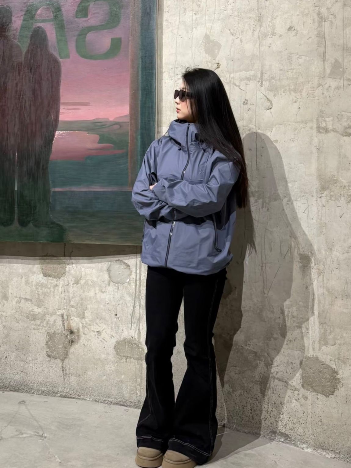 黑白灰穿多了不如来点冷色调。 上身始祖鸟BETASL层云蓝。 SL代表了轻量化设计,性能方面并没有消减。 三层压胶40Dx70D,轻量化设计对比lt更日常。 内衬c-knit静音面料,声音真的很小! 轻薄款透气方面也是更好。 颜色选择肯定是今年新款主打层云蓝! 淡淡冷色调非常适合酷酷的穿搭! SI价格方面也非常不错性价比极高!