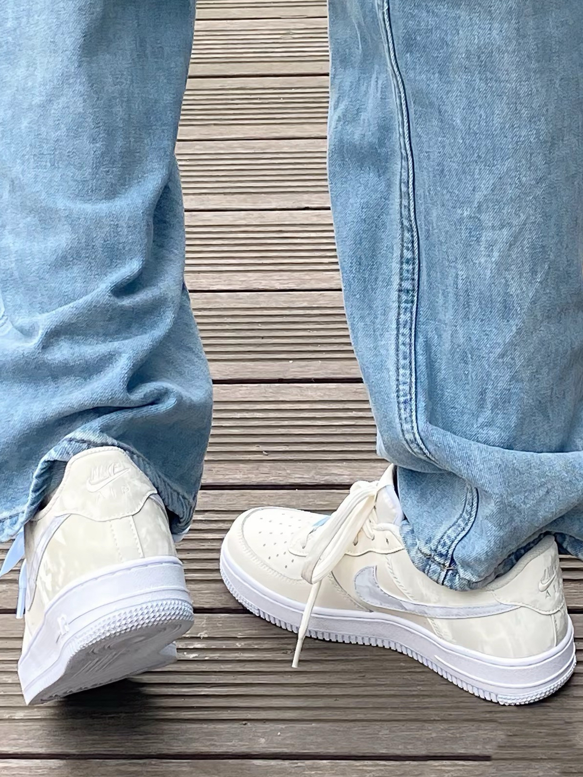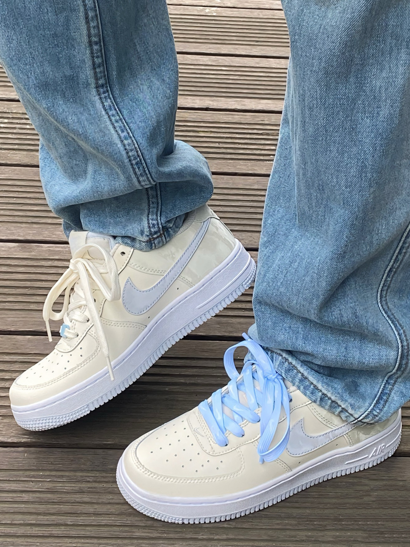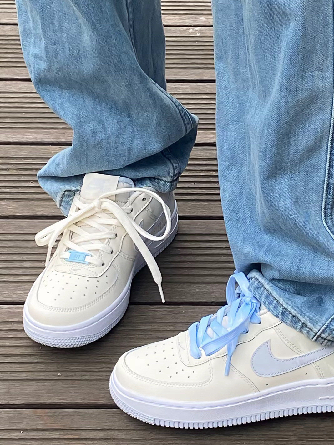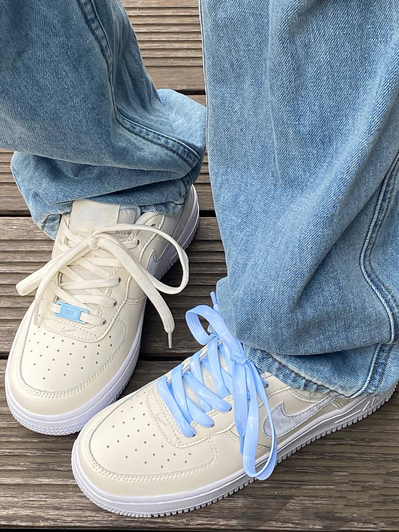 一眼沦陷在这双AF1的温柔乡里啦!😍 后脚跟那层仿佛雪糕冰霜的鞋面设计,简直是细节控的大胜利!🧊✨ 蓝米色配色,简直是奶系穿搭的天花板! 🌈 我自己动手DIY,加了个性鞋扣和一抹清新蓝鞋带,瞬间颜值爆表! 🎨 走在街上,回头率满分,连牛仔裤都秒变高级感满满~👖💫 重点来了!这双鞋现在还没火起来,赶紧趁人少我先冲了!🏃♀️💨 百搭神器,不挑人不挑衣,穿上它,你就是行走的时尚宣言!💪
