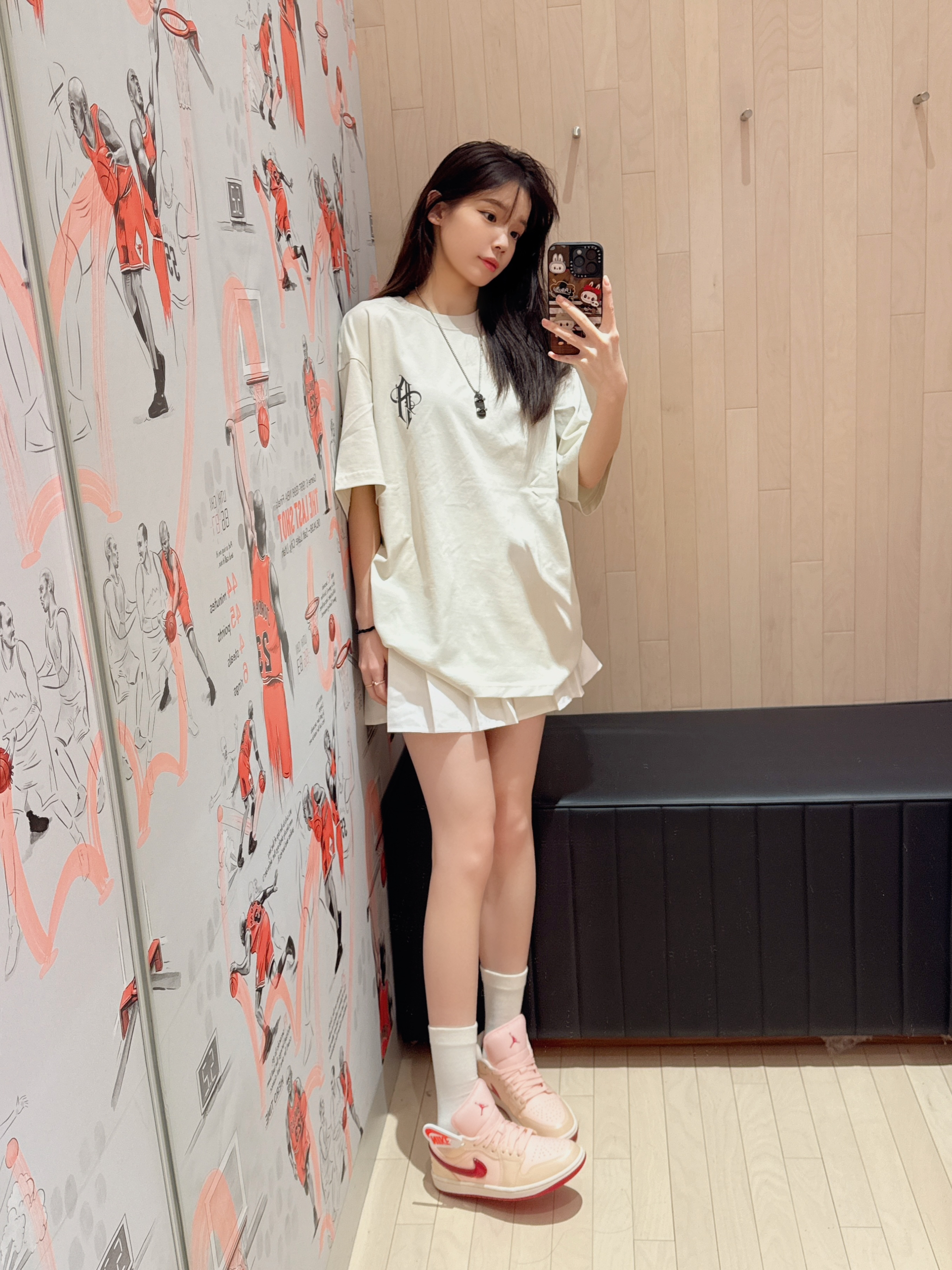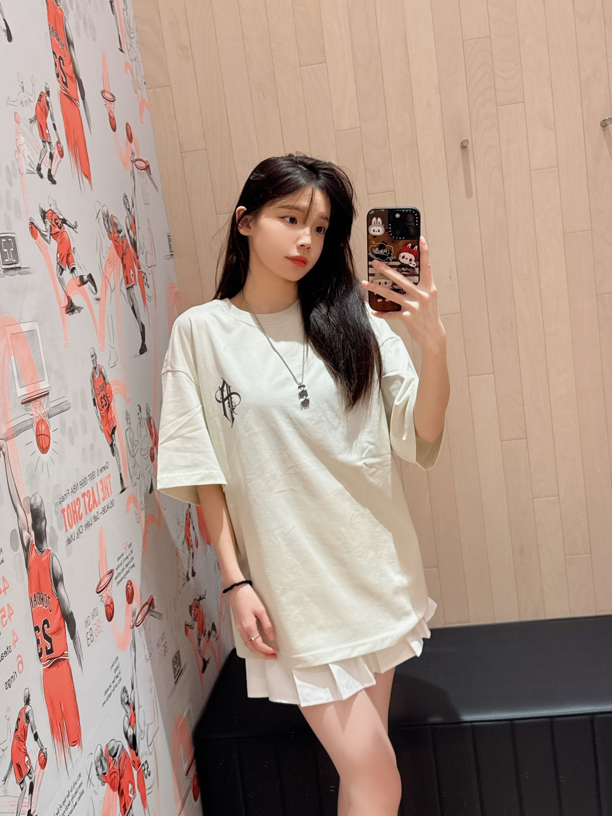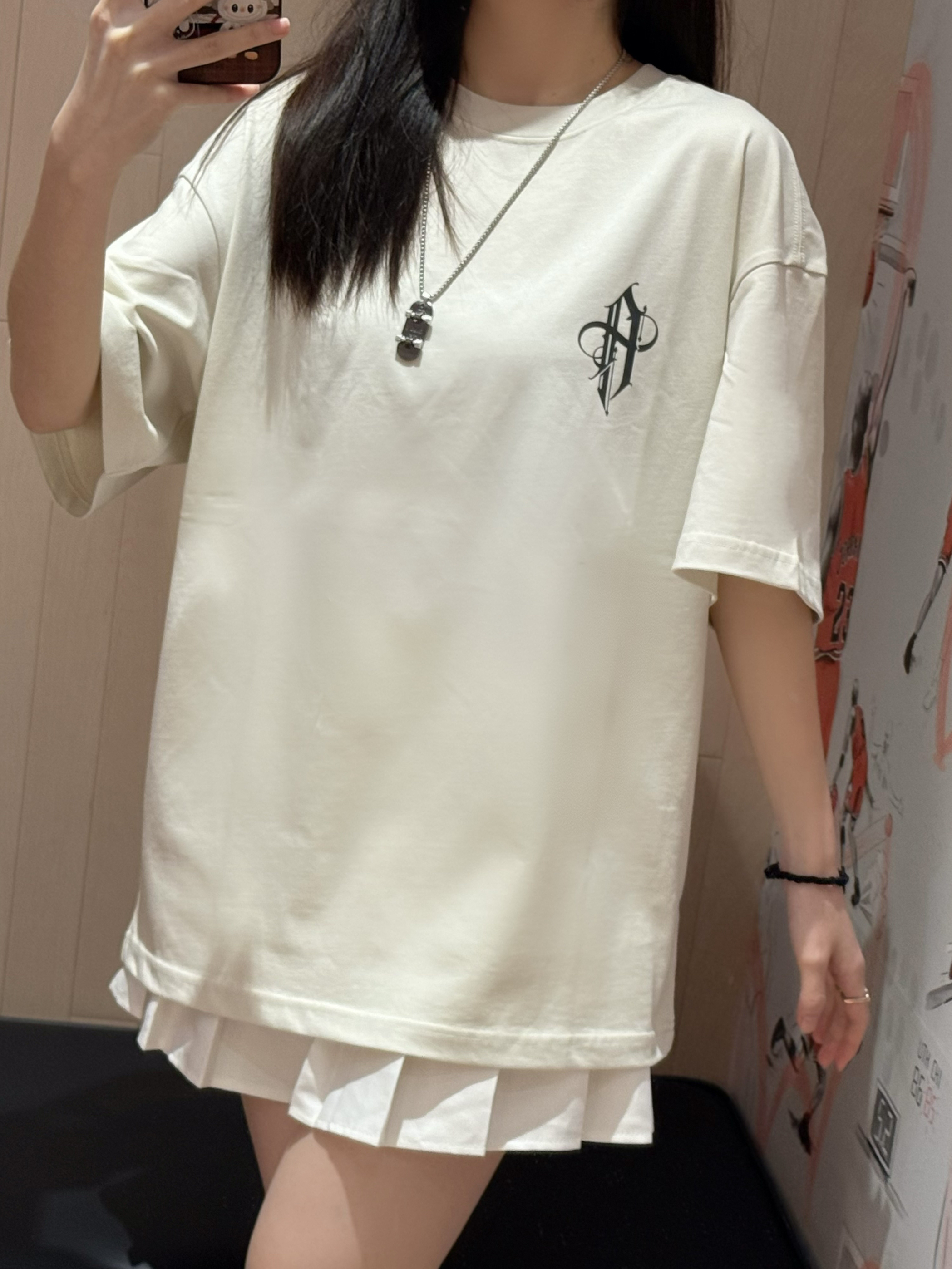 美式短袖真的太帅了😎 版型宽松显瘦 微胖的宝宝也可以轻松驾驭哦! 正面做简单logo设计 后背主打潮酷氛围感字母图案 印花美式街头风拉满了🥰 随意搭配休闲裤或者👖也很OK 👩166/43kg M码 👟是AJ1低帮的新配色🥰情人节配色 上脚真nice👍