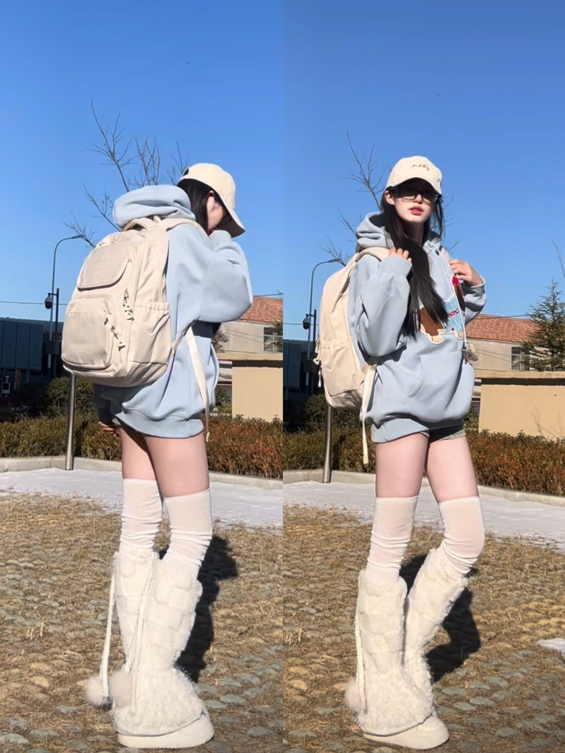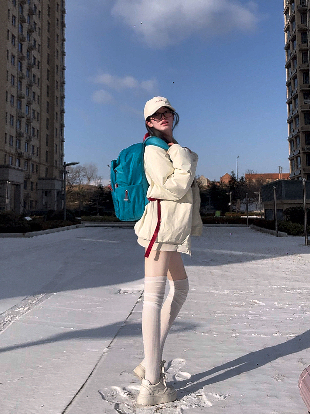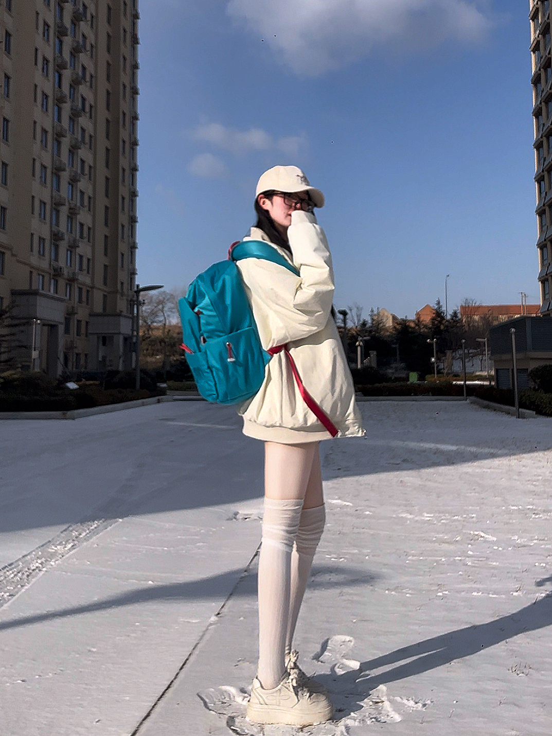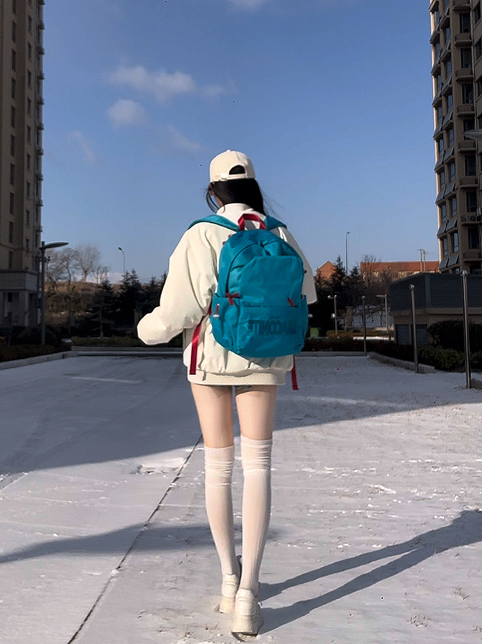 🎒: DRACONITE 🧍♀️:160cm 44kg 这一套我好喜欢呀 尤其是我的新双肩包,点睛之笔~ 好特别的蓝色,好有质感~ 纯色好舒服,越简单越高级 容量也超级大,书本电脑都能装 侧袋可以装进去水杯雨伞很牢固🌂 穿搭运动通勤都适配, 时髦感与实用性并存,爱啦!
