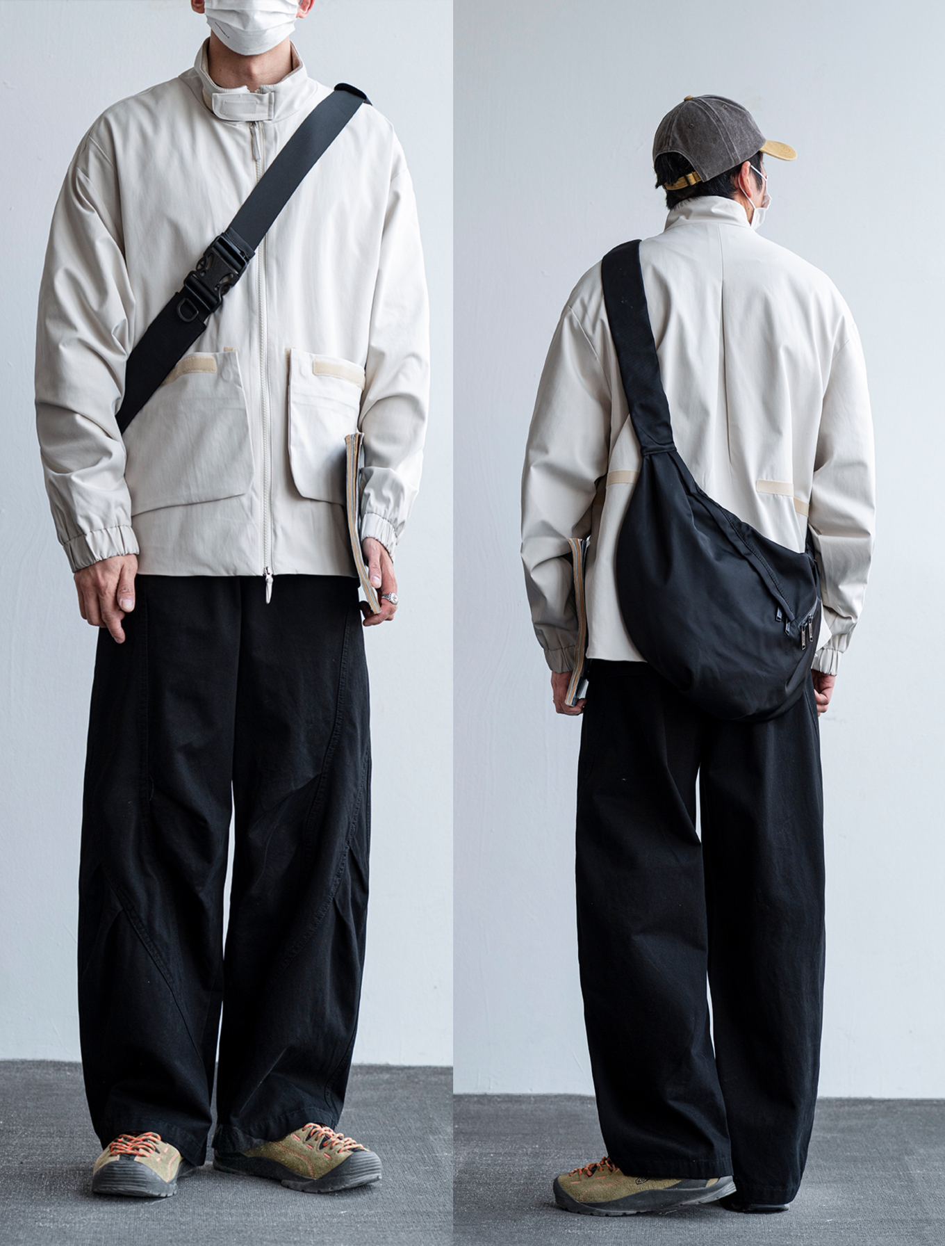 每个男生都适合的一款工装裤! 无论是户外,还是日常通勤,统统不在话下 版型是流行趋势的宽松版 复古感自带立体裁剪分割设计裤子 面料舒适也不会沾毛,很挺括 细节敲多,造型感满满很有看点 可以随性的看着搭配都不会出错〰 - 模特:身高172CM | 体重62.5KG | 穿L码