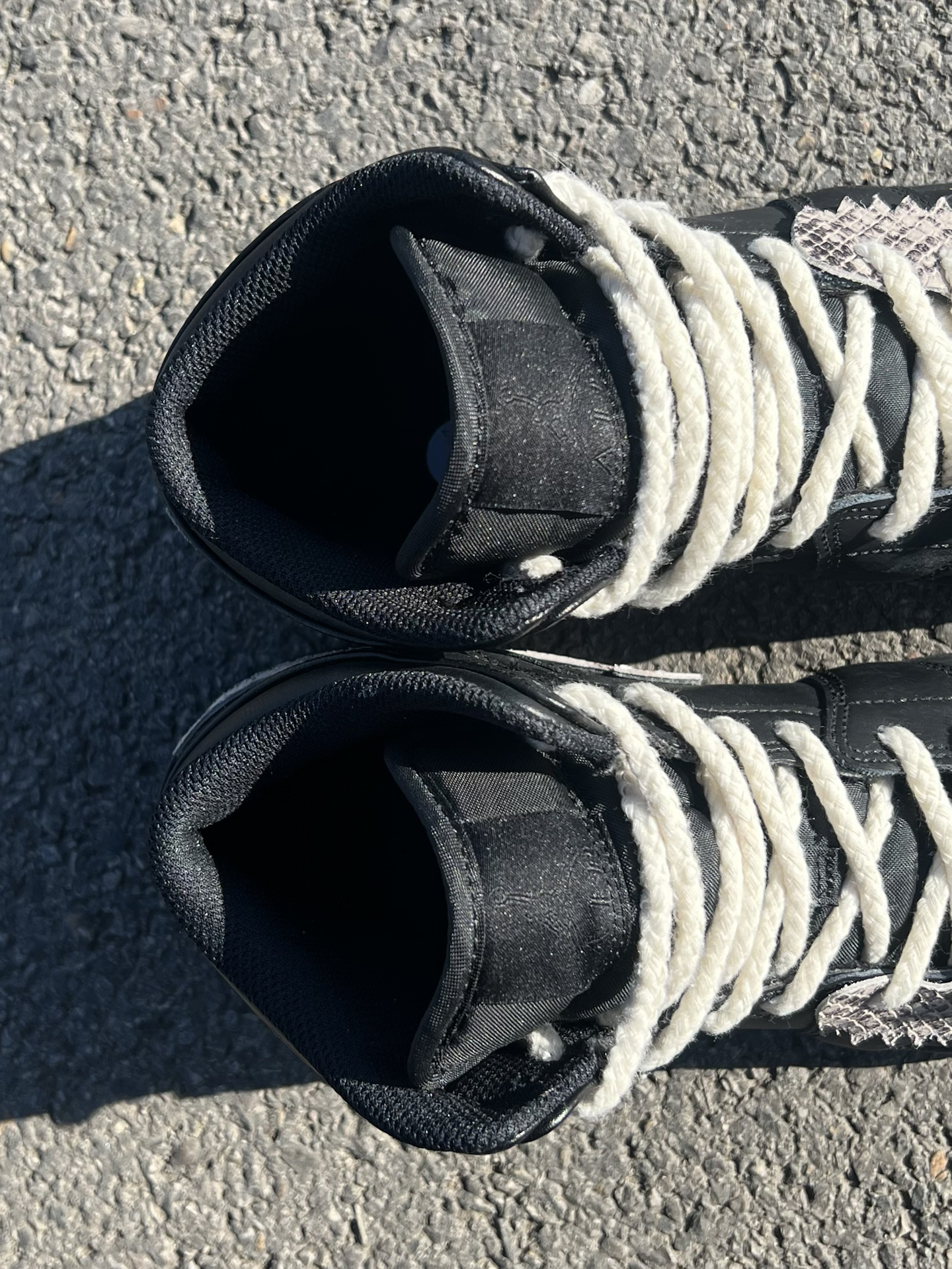 简约大气的板鞋就很适合早春 鞋身配色很干净,黑色➕蛇纹点缀 黑武士即视感搭配黑色修身裤就好看 厚底高帮 朋友说显腿比例好 总的来说这双鞋子的外观和质感我还是挺满意的 早春好鞋又找到啦 则