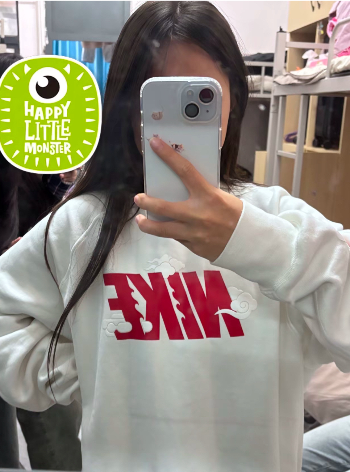 nike这件卫衣穿上身是真的很好看! 是加绒的冬天穿在外套里面很保暖 春天也可以外穿! 白红搭配真的很爱啊!!!