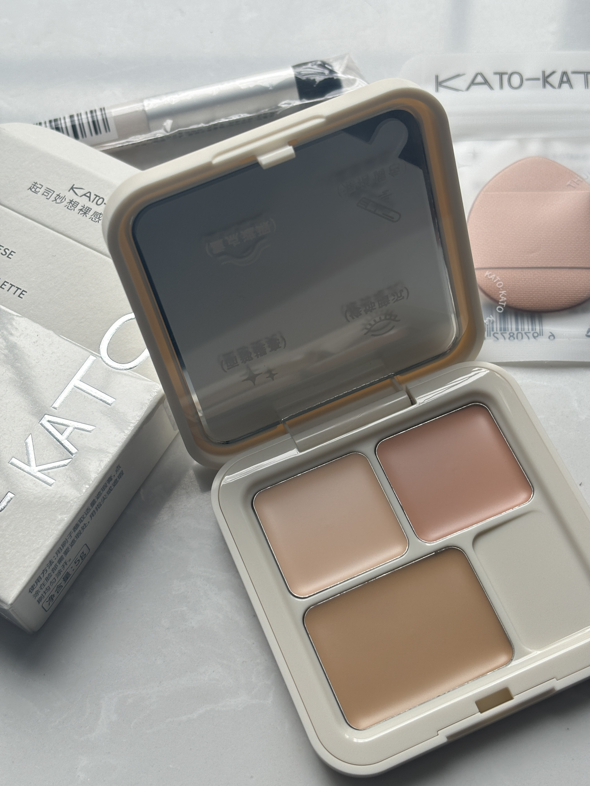 💫【混干皮の救赎日记】 作为混干皮+熊猫眼十级选手,试过无数遮瑕不是卡成东非大裂谷就是遮了寂寞...直到遇见这盘KATO奶油起司三色遮瑕!上脸瞬间和眼下干纹和解,遮完黑眼圈像开了「眼部PS」特效,连泪沟都一键隐形! 🔥【遮瑕界六边形战士】 ▪️滋润度:⭐️⭐️⭐️⭐️⭐️ 奶酪质地一揉就化开!混干皮用完全不会卡粉拔干,眼下沙漠变绿洲~ ▪️遮瑕力:⭐️⭐️⭐️⭐️✨ 深色格精...