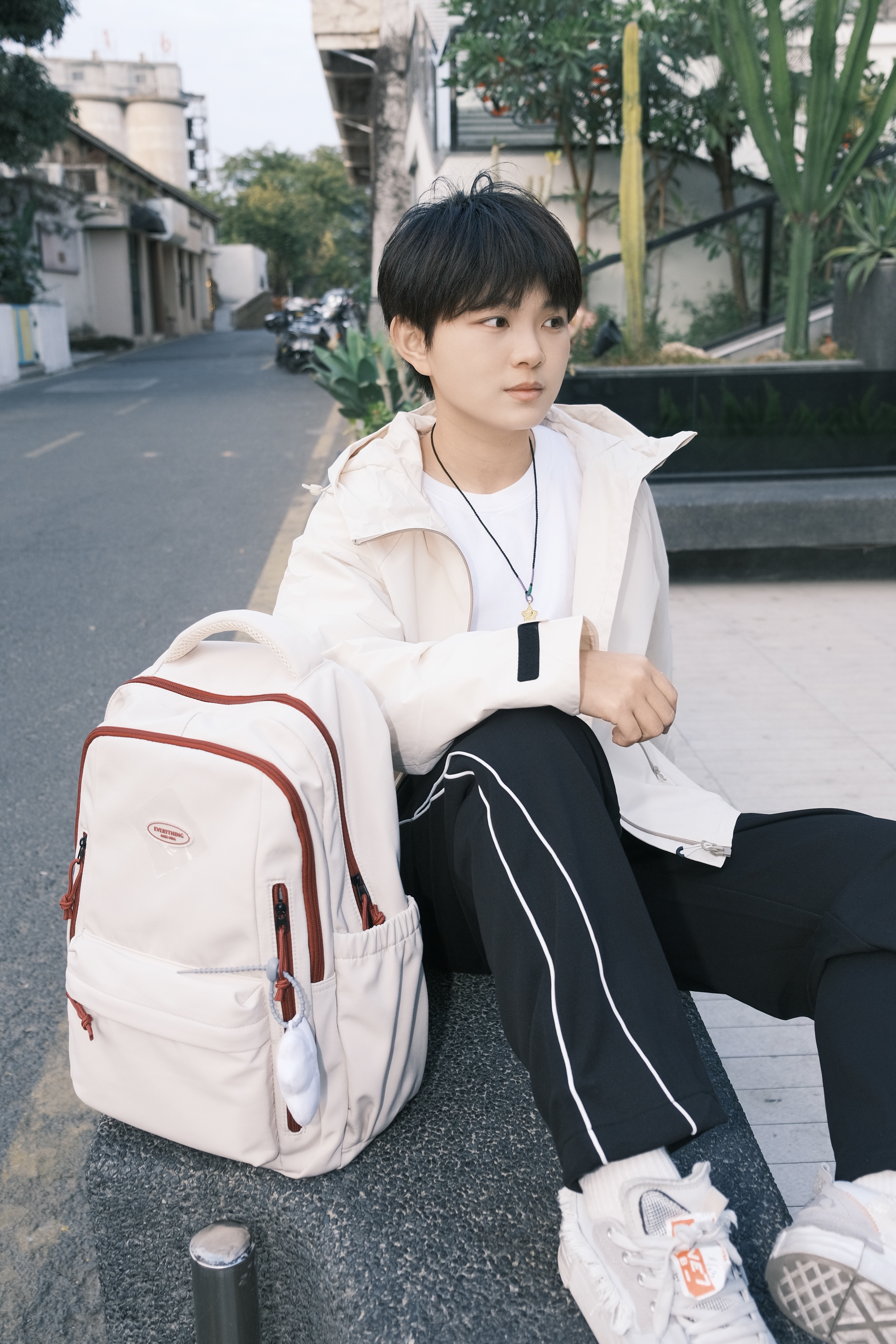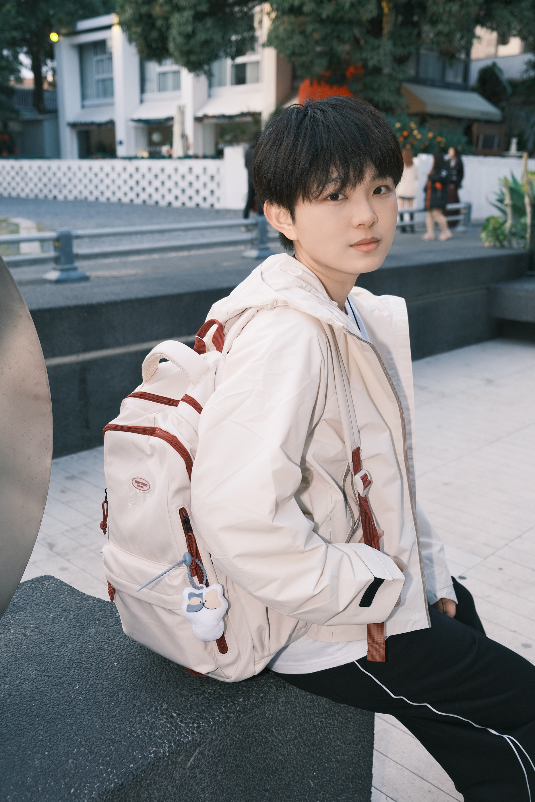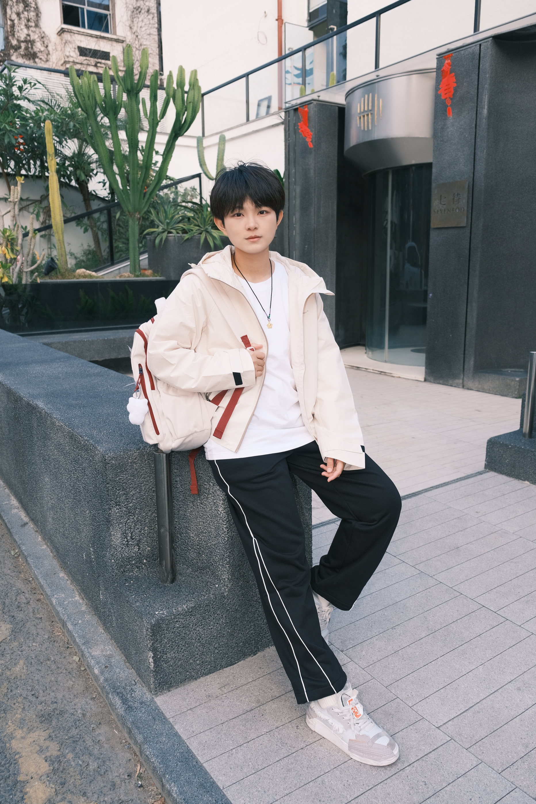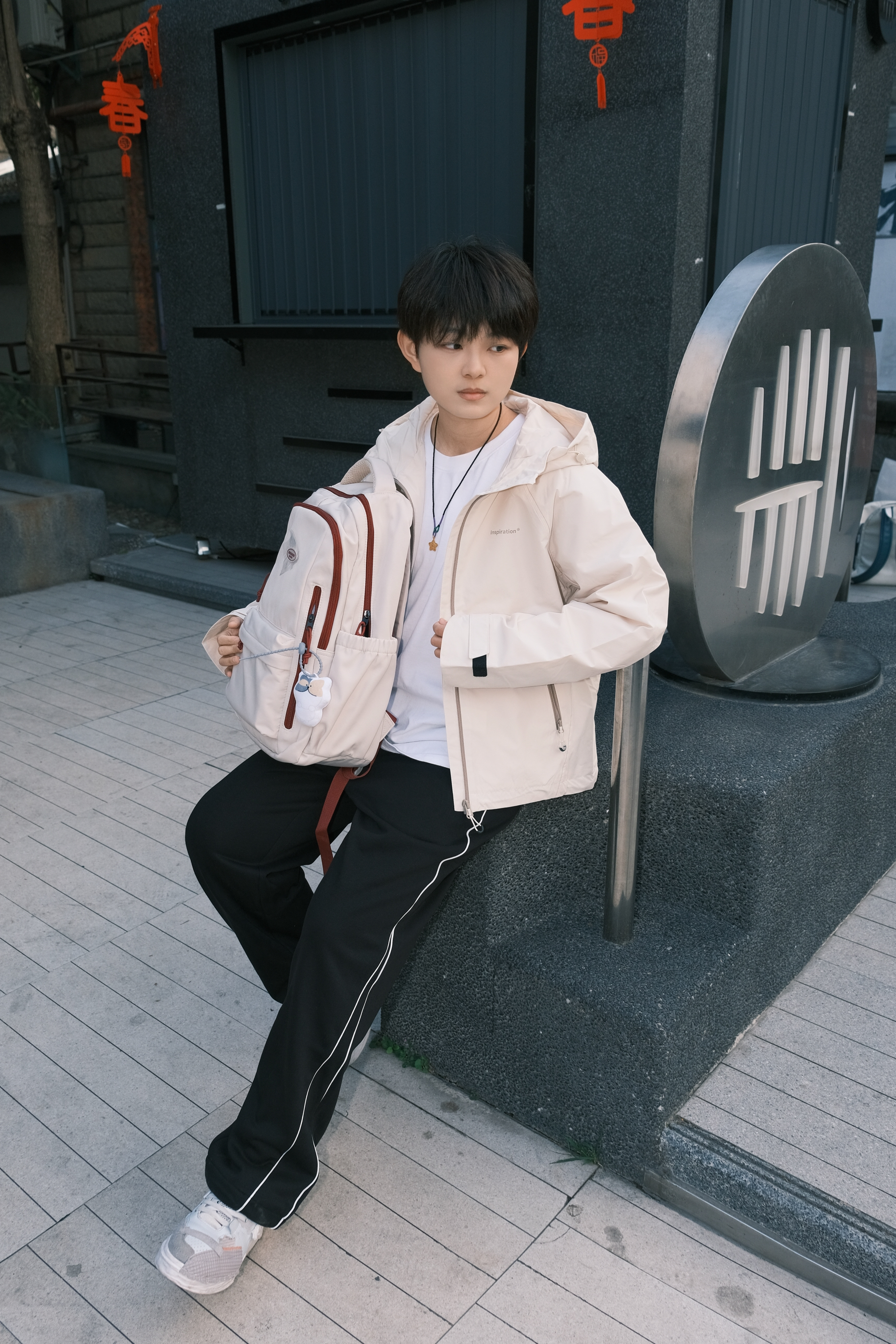 163/105 我宣布米白色就是气质的天花板~ 户外出行怎么少得了一件冲锋衣捏 简单又好看 搭配上一条黑色的休闲裤 慵懒感十足 在搭配一个米白色的双肩包 容量贼大 日常出行都不是问题哦!帅的嘞