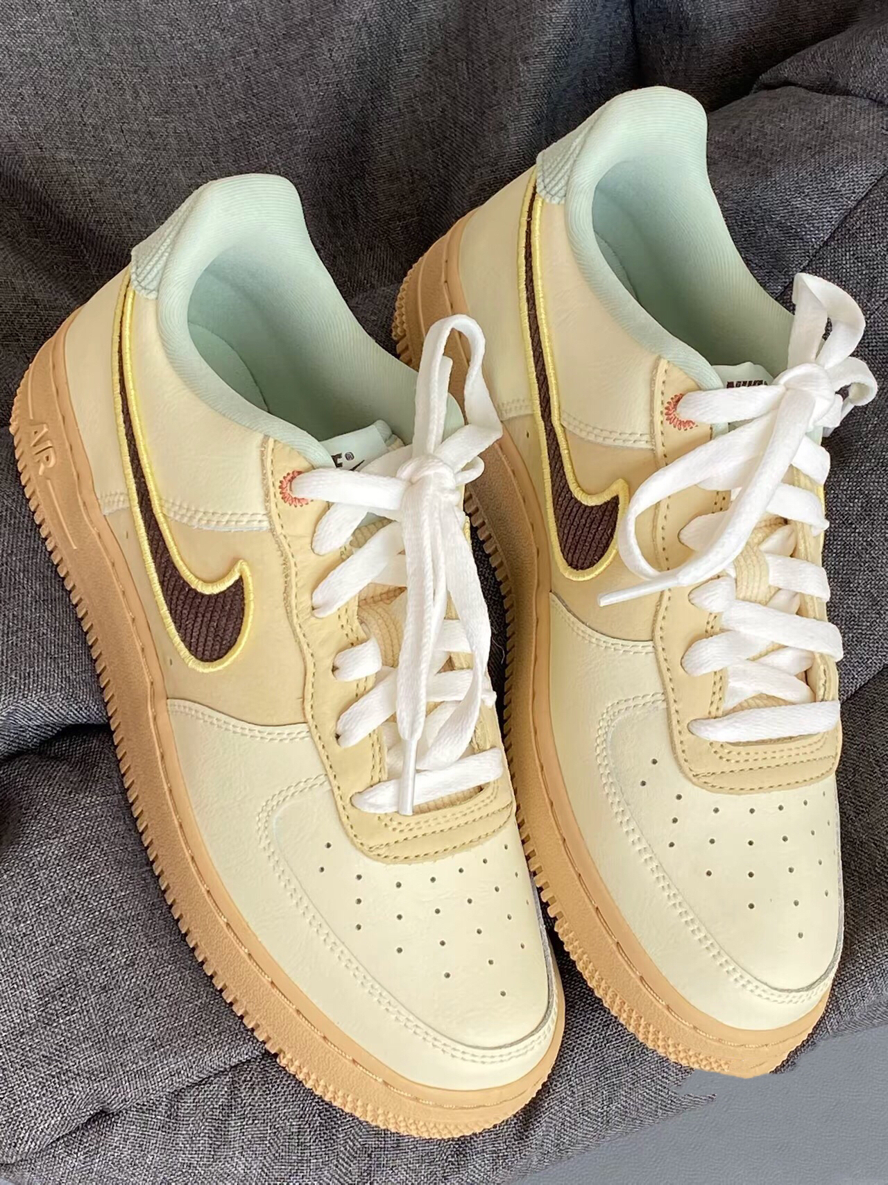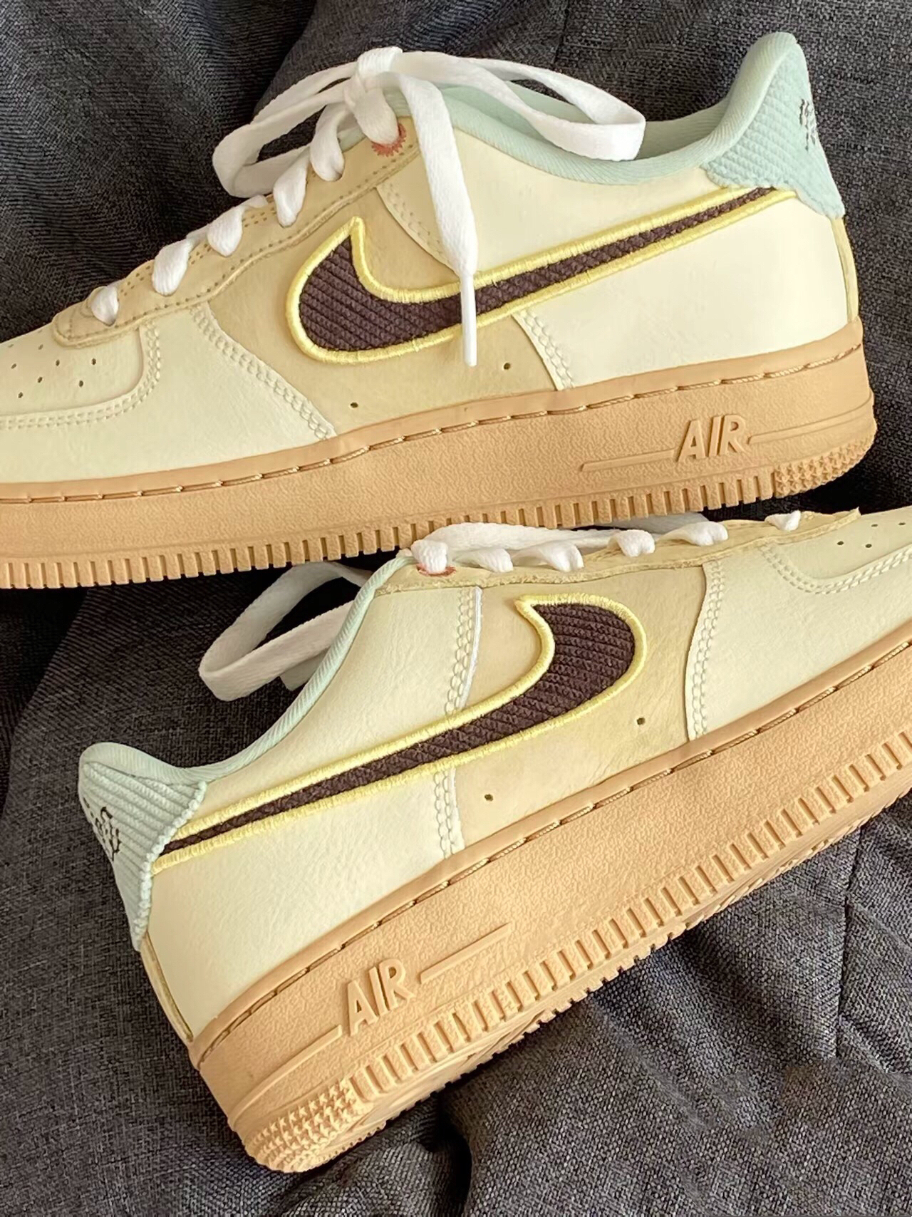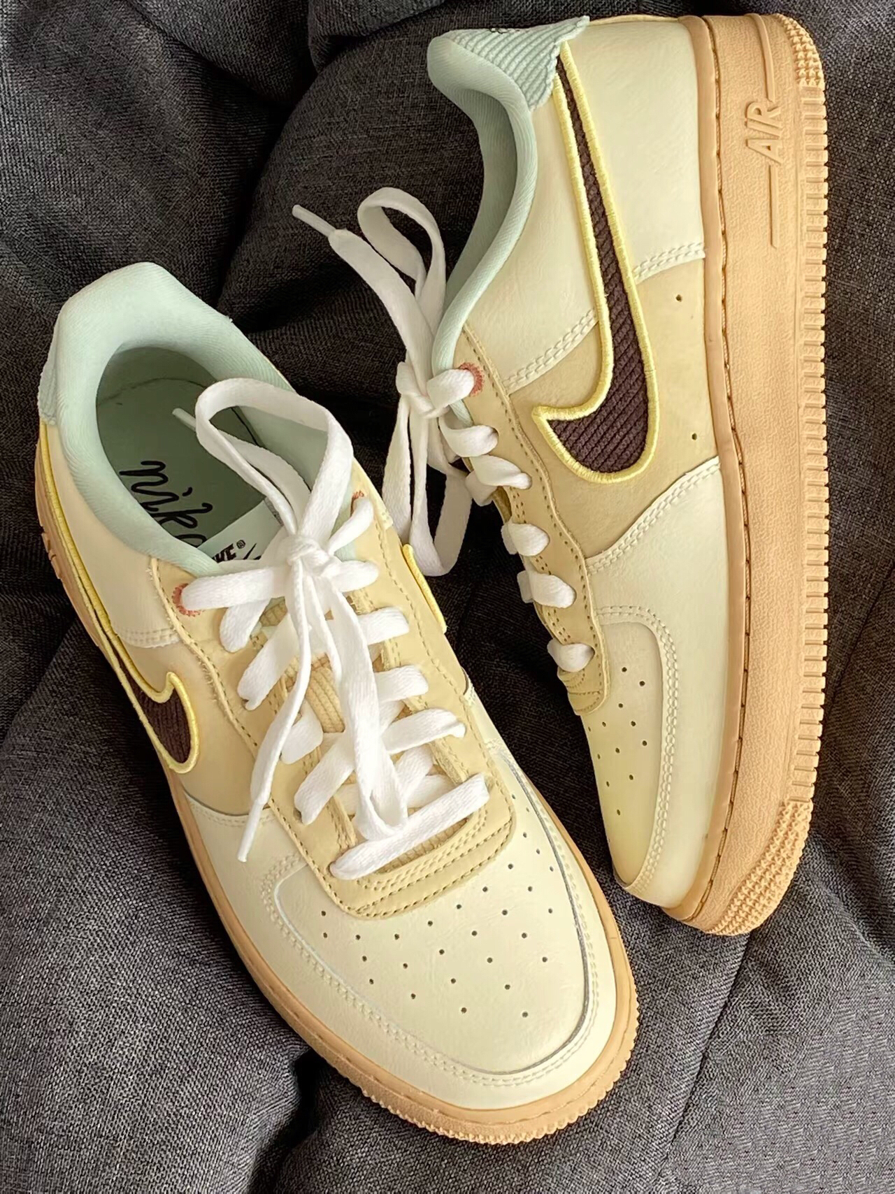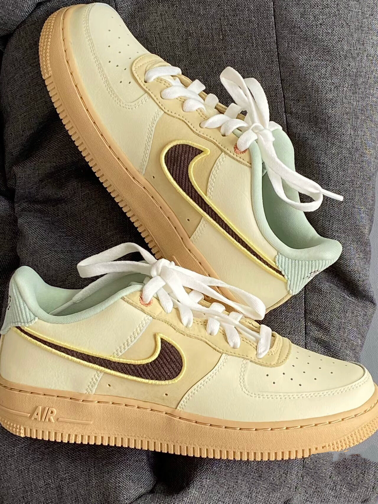 这双Nike AF1,在卡其色的基础上融入了淡绿的清新色调,既保留了卡其色的稳重 又增添了几分活泼与生动 这样的设计不仅适合日常休闲穿着 也能在春夏季节里为整体造型增添一抹亮色🟢🟡