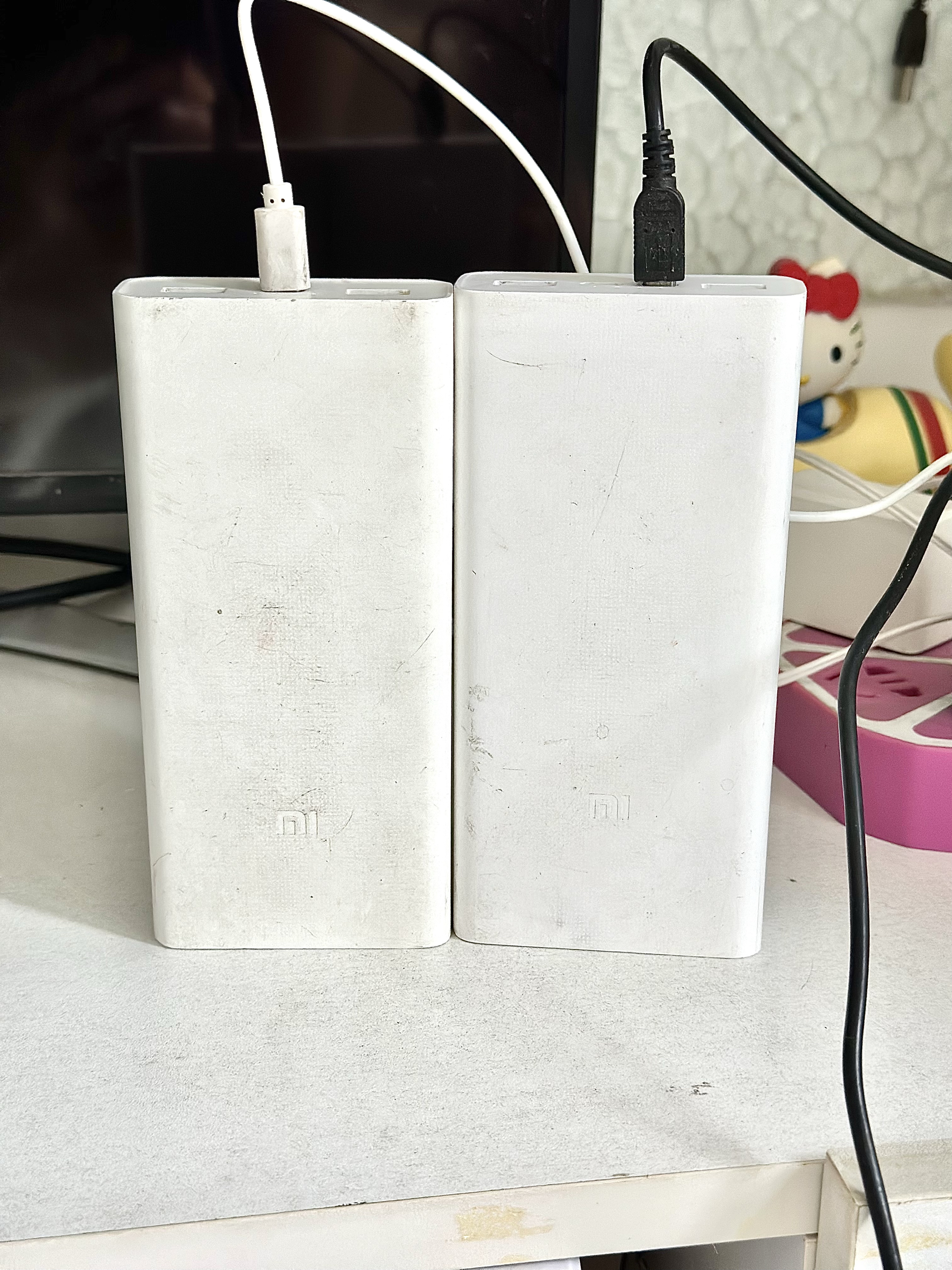 小米充电宝用了两代,左边的用了差不多6年 右边的后来出差外带又买的,用了三年,升级了Type-C充电口,两个都是2000毫安,差不多能充三次电 优点是充电蛮快的,看这成色就知道我经常用了 缺点就是有点重,用久了电量会有点下降,但毕竟用那么多年挺值当的,尤其是这充电快,容量大,我试过一次带上飞机,这个定额没问题,推荐!