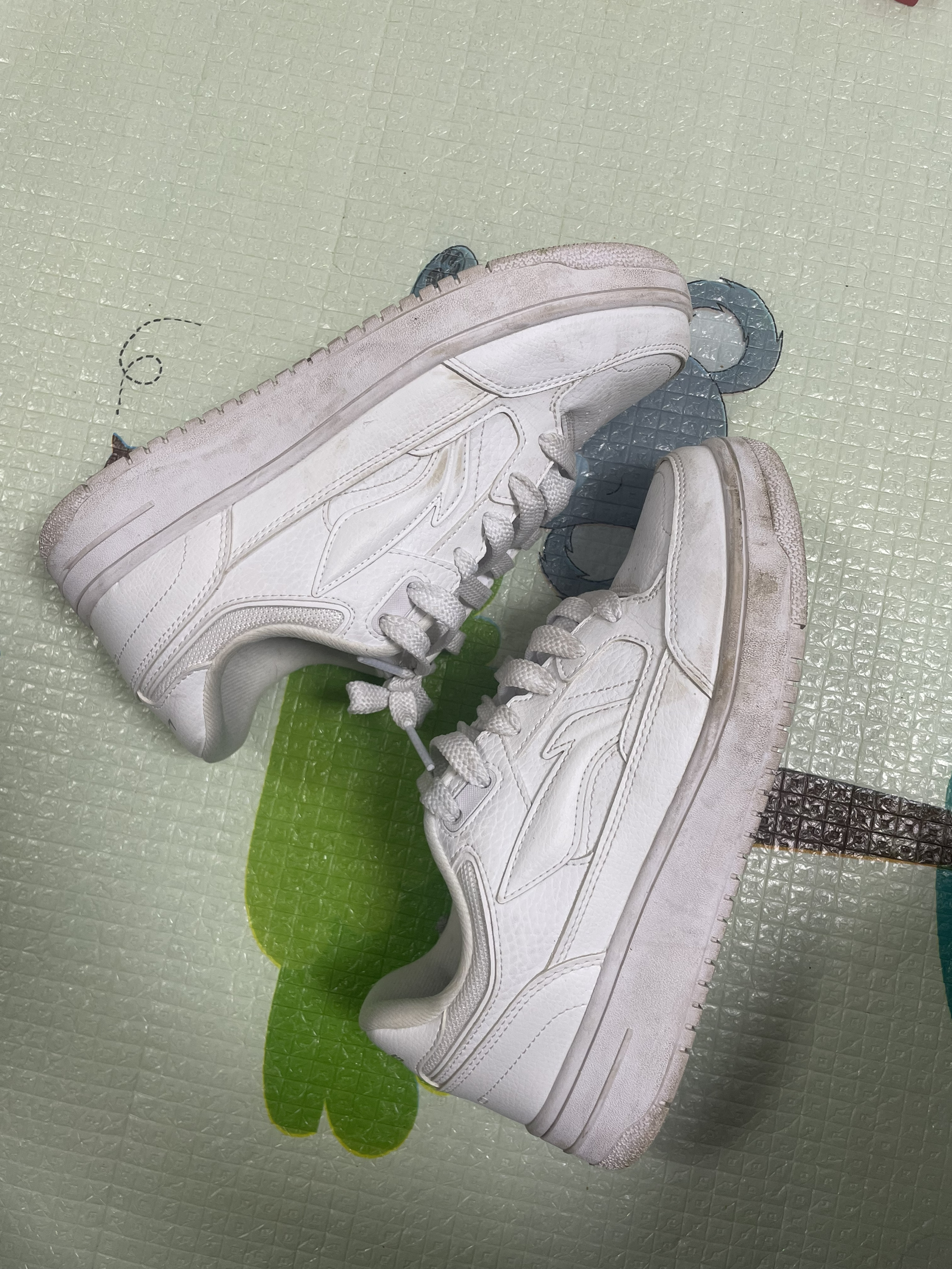 李宁天迹的一款白色板鞋,入手已经两个月左右了,脚感很不错,鞋底软硬适中,包裹性很好,算是物有所值