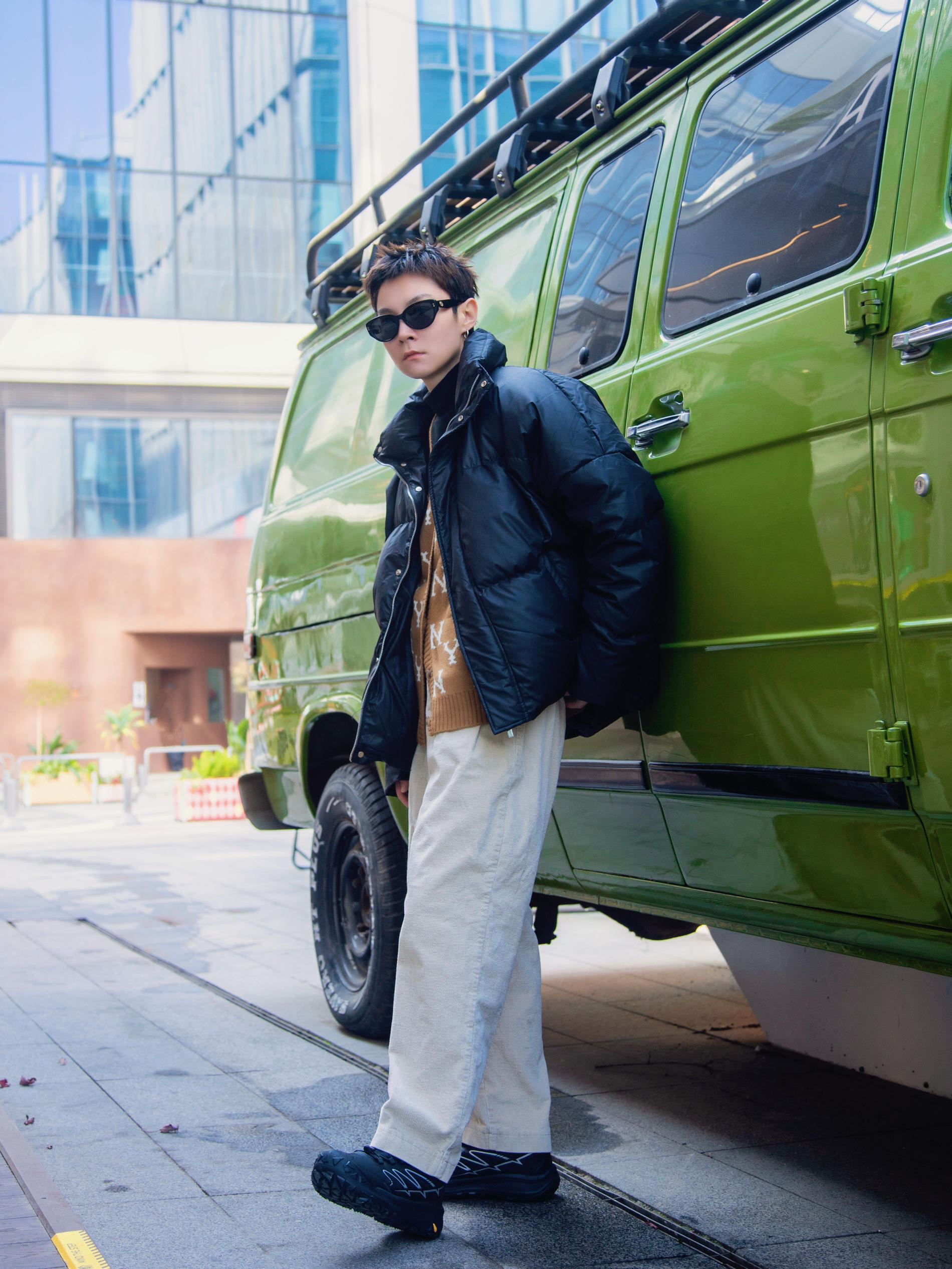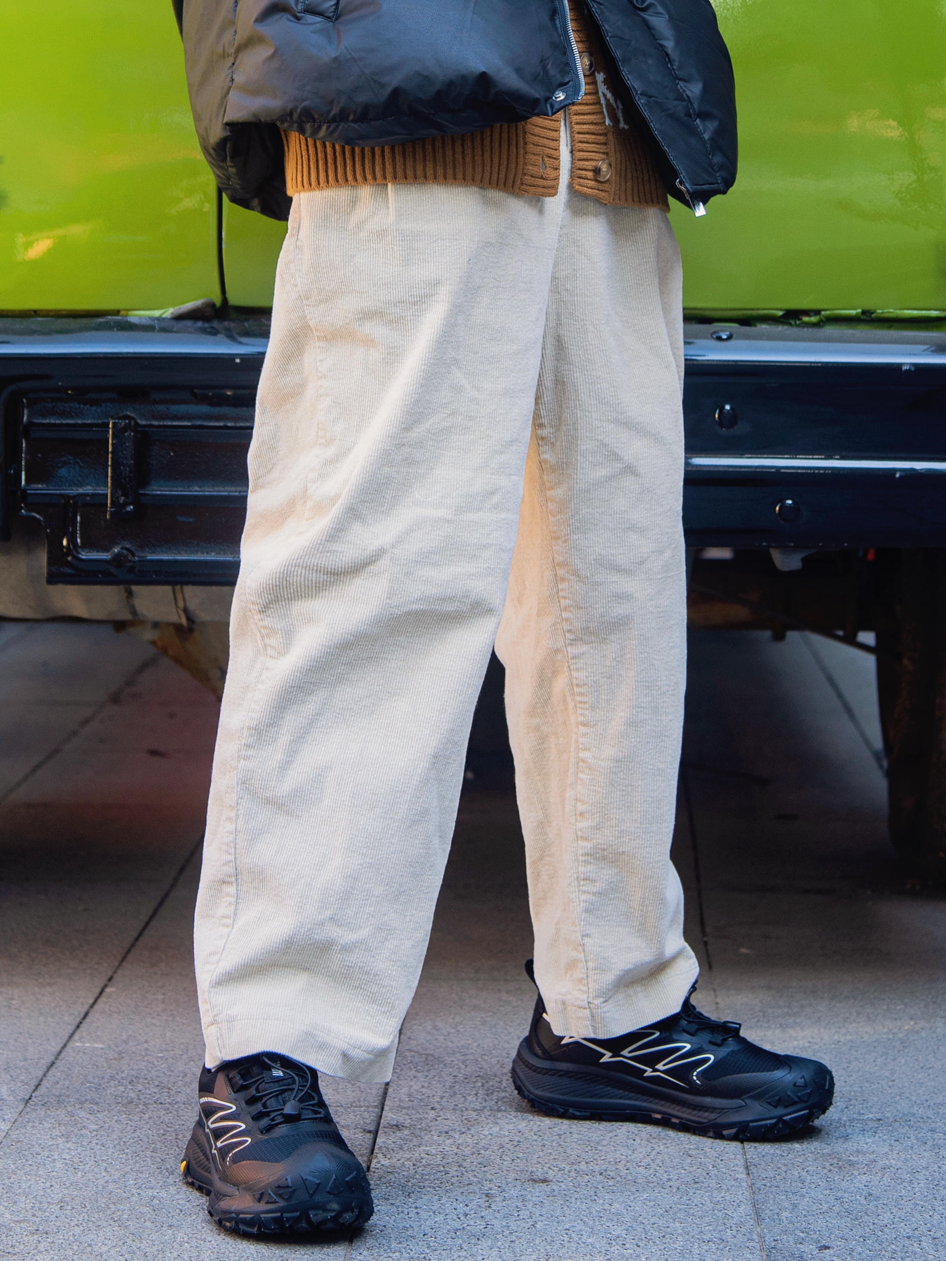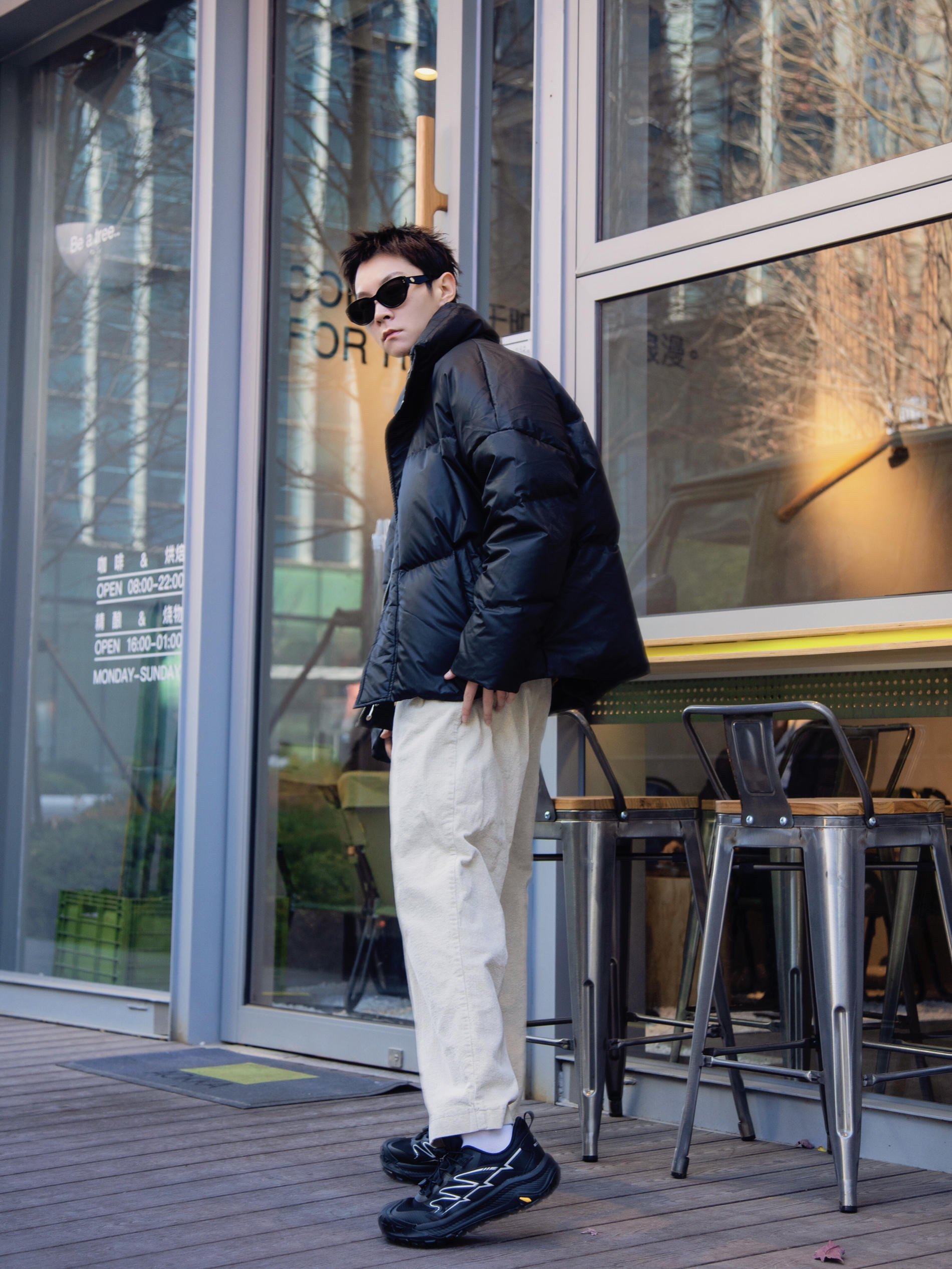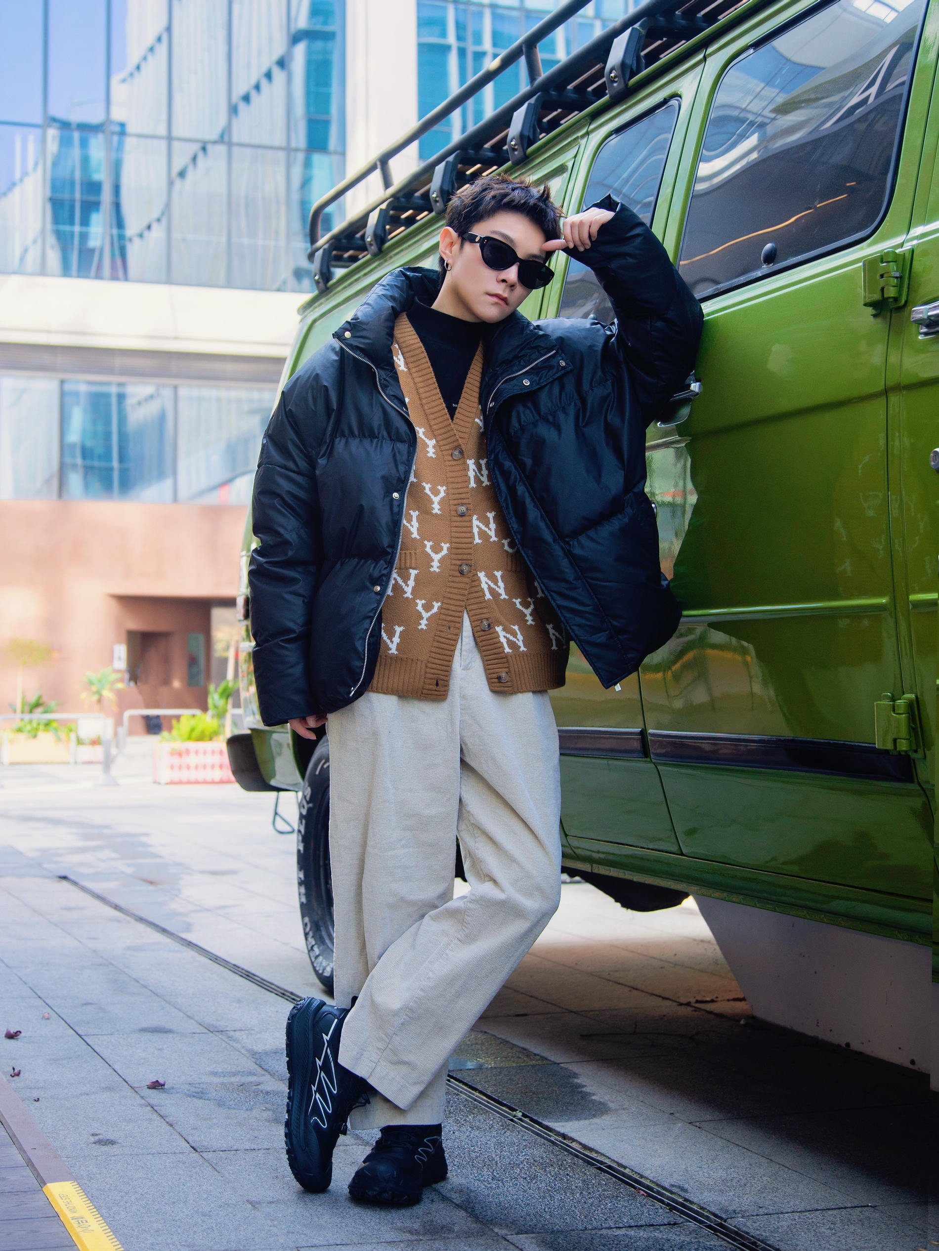 冬天怎么少的了针织毛衣? 分享一套简约老钱风穿搭 穿搭指南: 上身一件黑色半高领打底 外搭一件咖色针织毛衣开衫 合身的版型 低调的华丽 套黑色羽绒外套 有温度又不失时髦 下身配一条米色灯芯绒裤 上脚一双邦特黑色休闲鞋呼应一下 鞋身户外风设计 可出街可运动 这一套简约又不单调