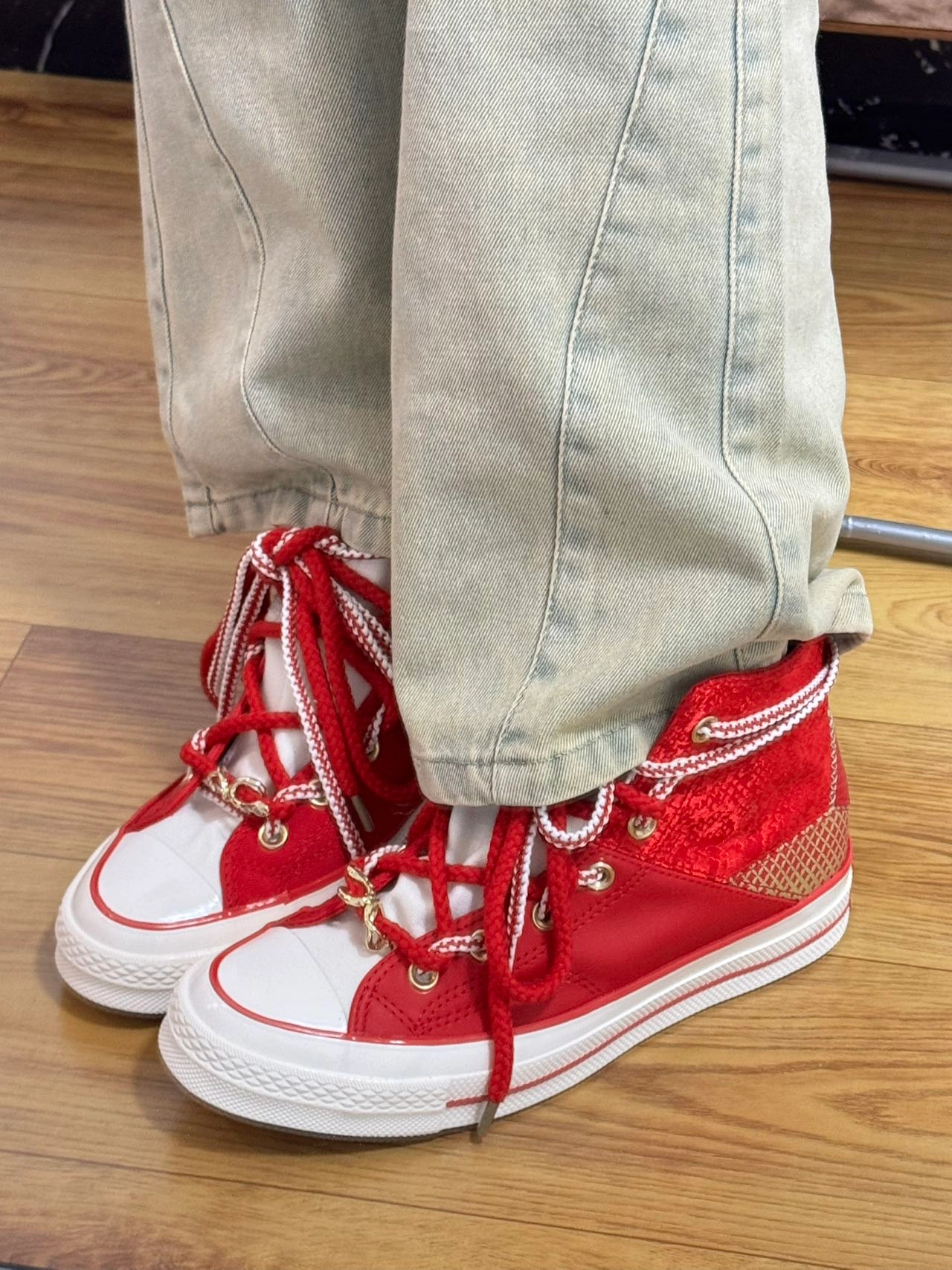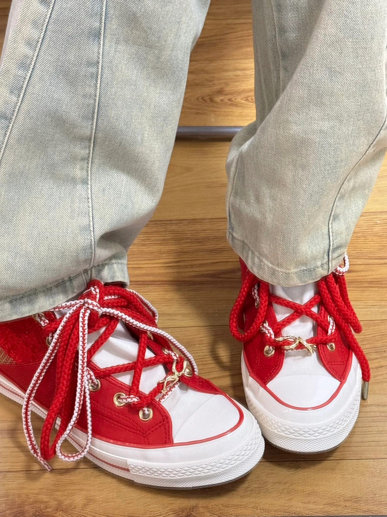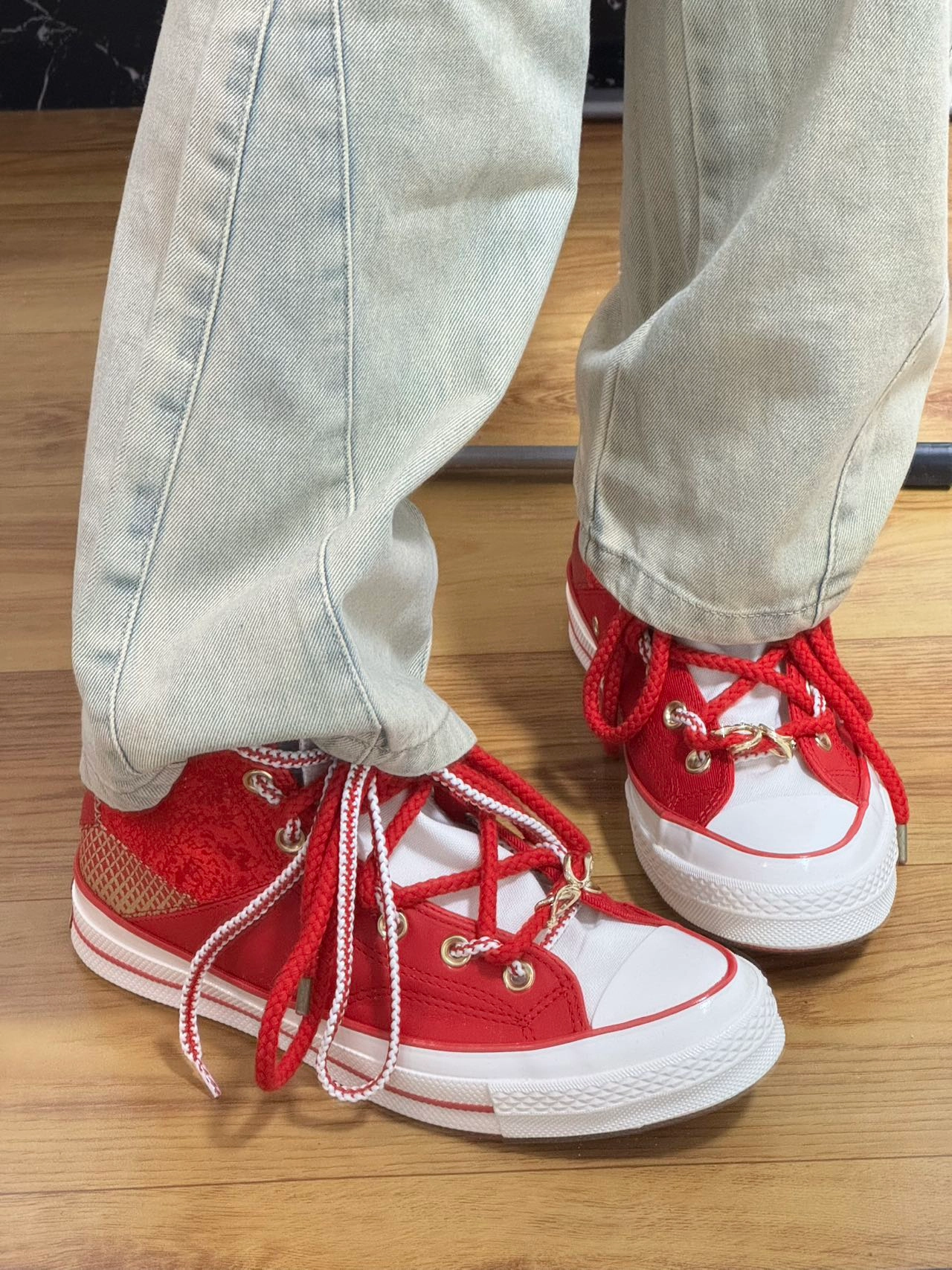 感觉红色系很有氛围感 双色鞋带好看好看! 搭配牛仔裤👖都很两眼 好运好运! 人节礼物