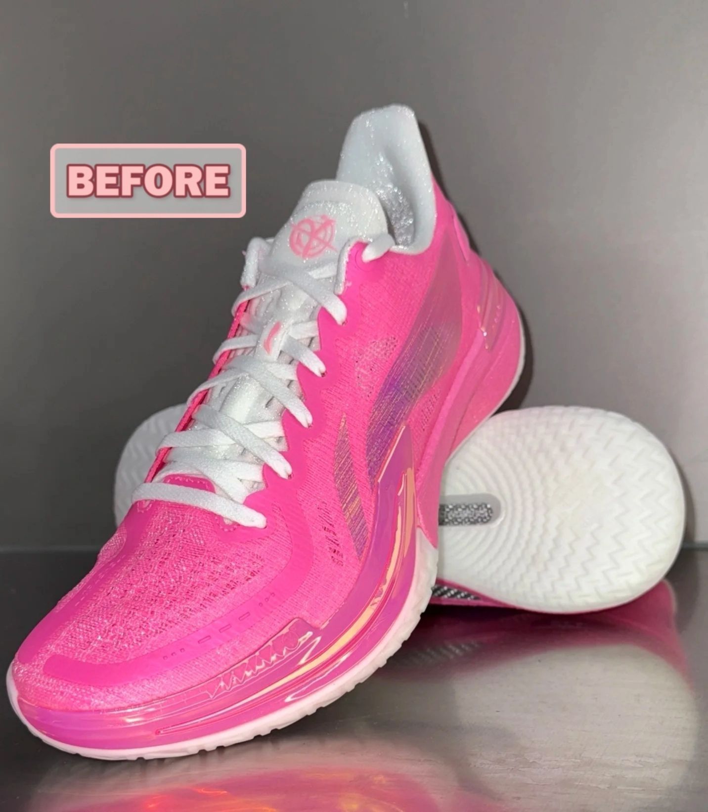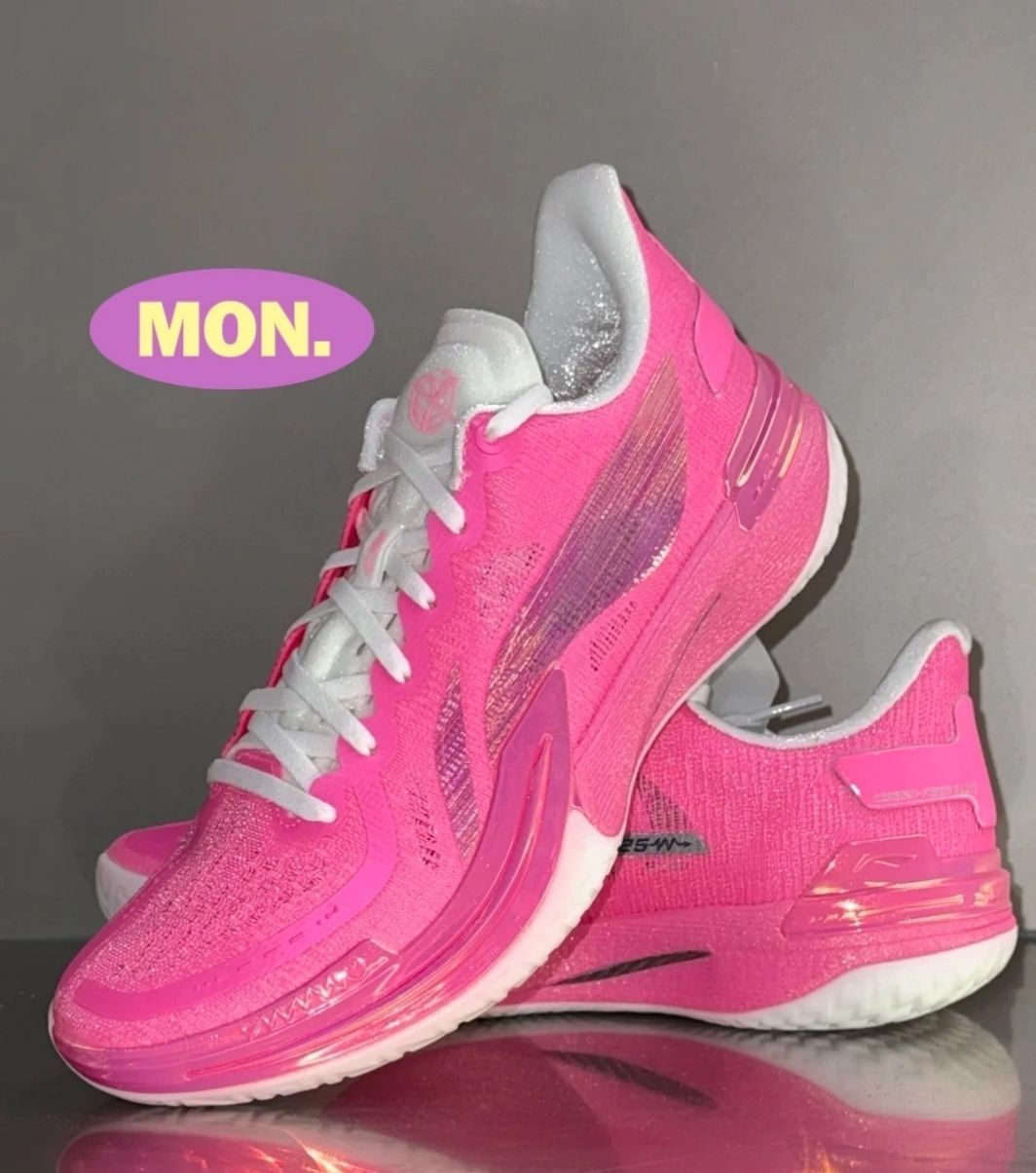 李宁伽马的又一新配色◇这次选用粉色为主色调使得整双鞋都透露着浪漫的气息。奶白色的鞋底透露着简约大气的质感。中底全掌露保证这双鞋能高效回弹充分减震,在碳核芯的加持下更增加了这双鞋的鞋脚一体性为运动员在场上的运动表现保驾护航。翻丝材质鞋面是这款鞋轻质、包裹强的重要科技之一