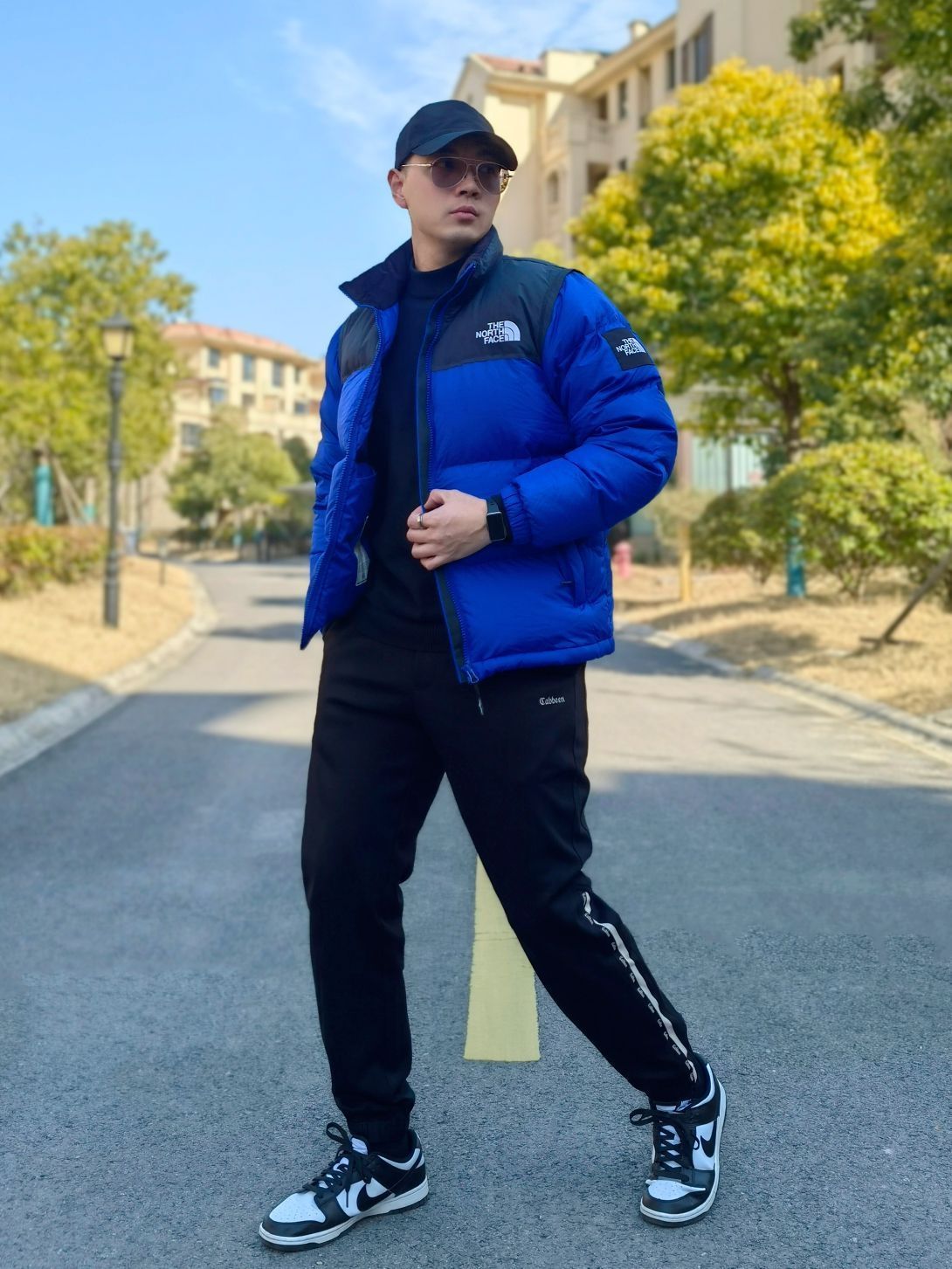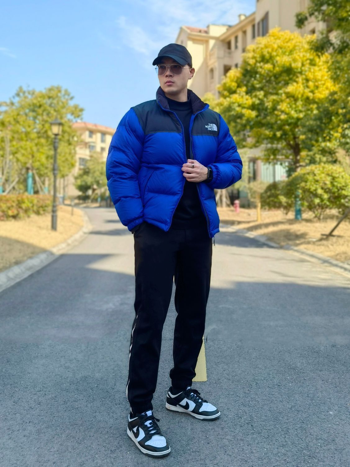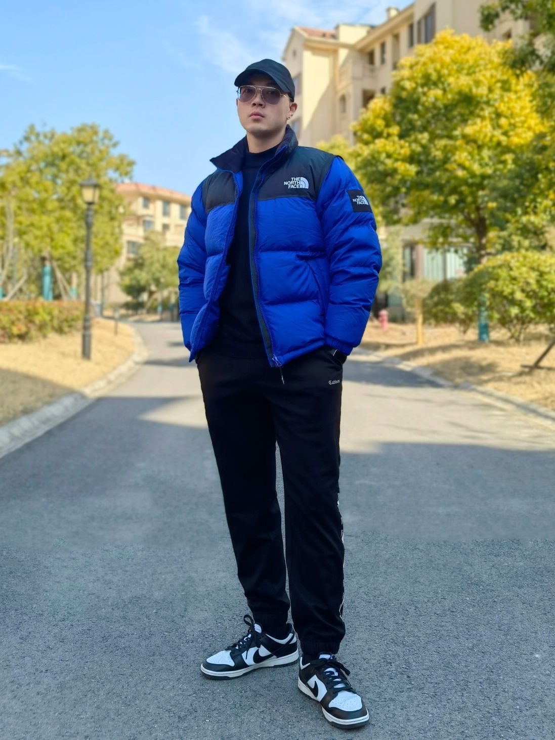hello 大家好,这里是撒旦锅锅 💗179cm/80kg ✔️类型搭配:羽绒服+运动裤+板鞋 上身搭配THE NORTHFACE北面韩版羽绒服,黑蓝拼色时尚亮眼,袖子可拆卸当马甲穿,下身搭配一条黑色卡宾运动束脚裤,鞋子选择经典的黑白熊猫dunk板鞋,整体搭配潮酷休闲运动风满满,种草推荐✔️