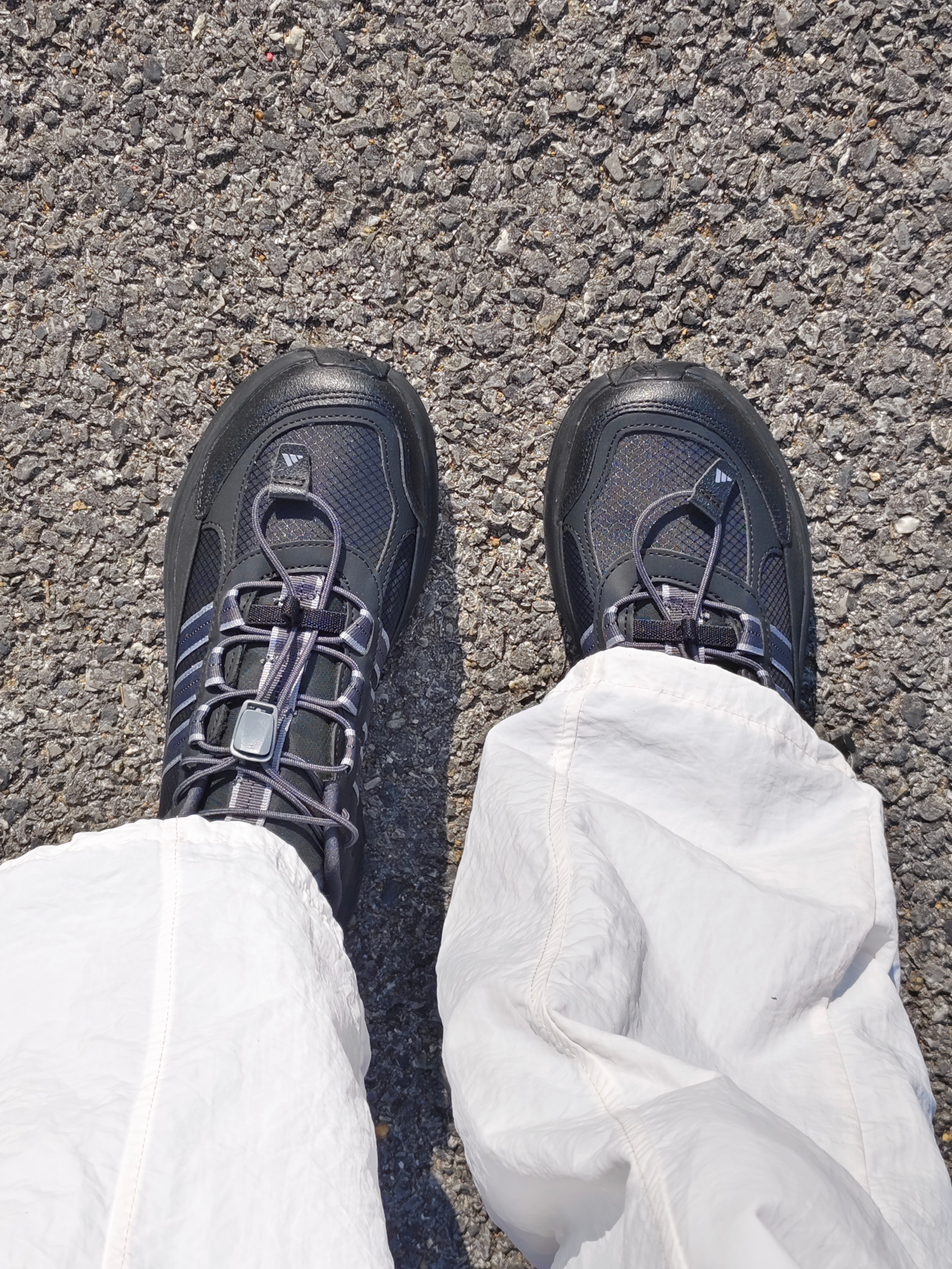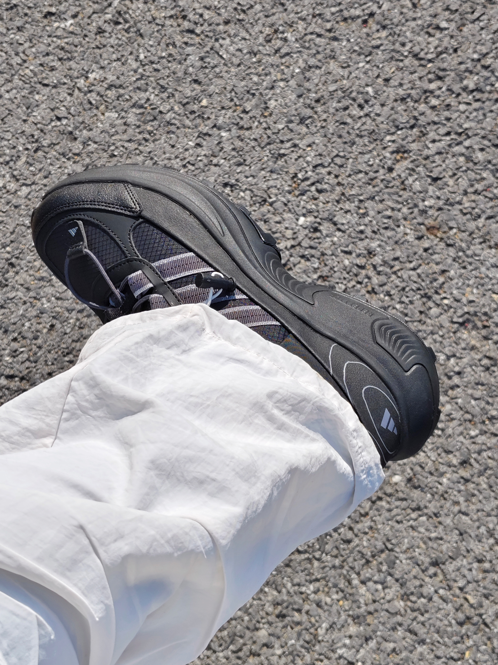 哈咯今天分享一双阿迪达斯的黑武士登山鞋,很有机械风,穿上脚酷酷的,而且鞋面防水,碰到带有水气的天气也没问题