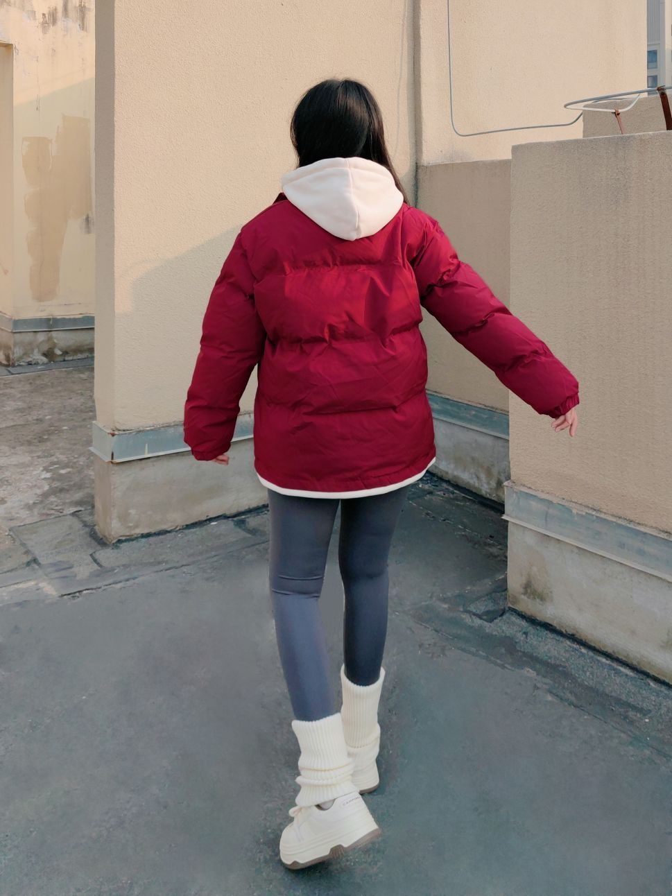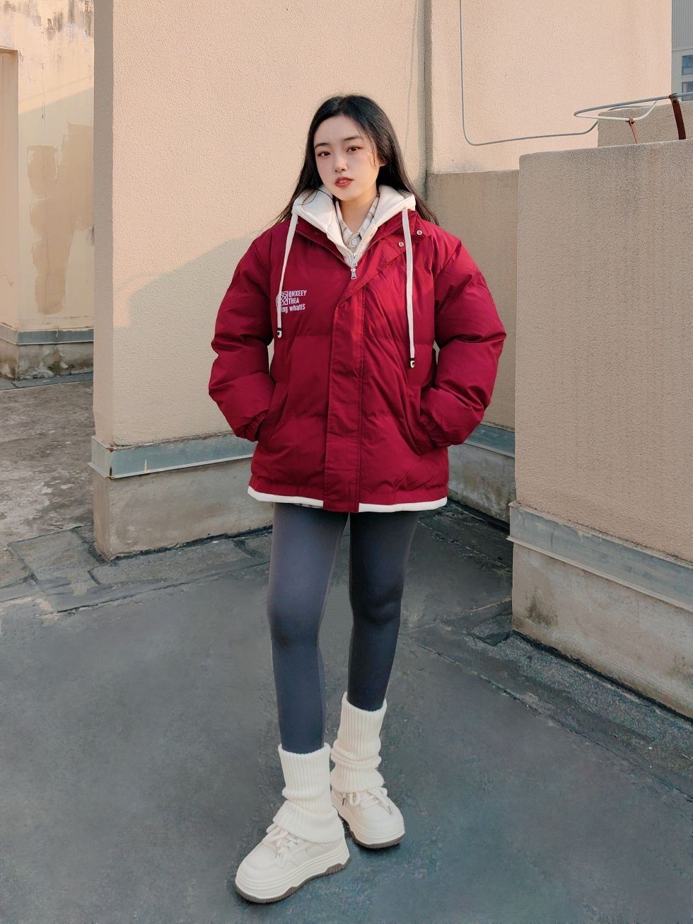 160cm/50kg/M码 ↓ 哈喽,这里是小5的穿搭分享√ 今天带来一套新年搭配: 假两件棉服+瑜伽裤+堆堆袜+板鞋 过年期间就是要穿红色系呀, 暖暖的还很吸睛, 这套我选的假两件设计, 自带一个连帽款式感觉更有层次啦! 搭配了紧身瑜伽裤, 简约深灰色还挺显瘦的哈, 像我这种粗腿女孩可以再加一个堆堆袜搭配, 视觉上会更协调, 甜美活力迎接新的蛇年~ ↓ 棉服:qnxeey 裤子:361° 板鞋:...