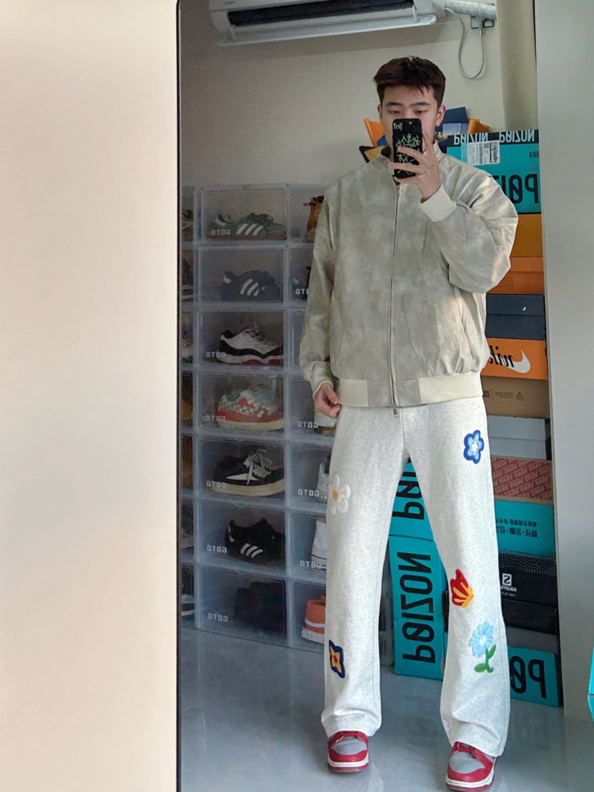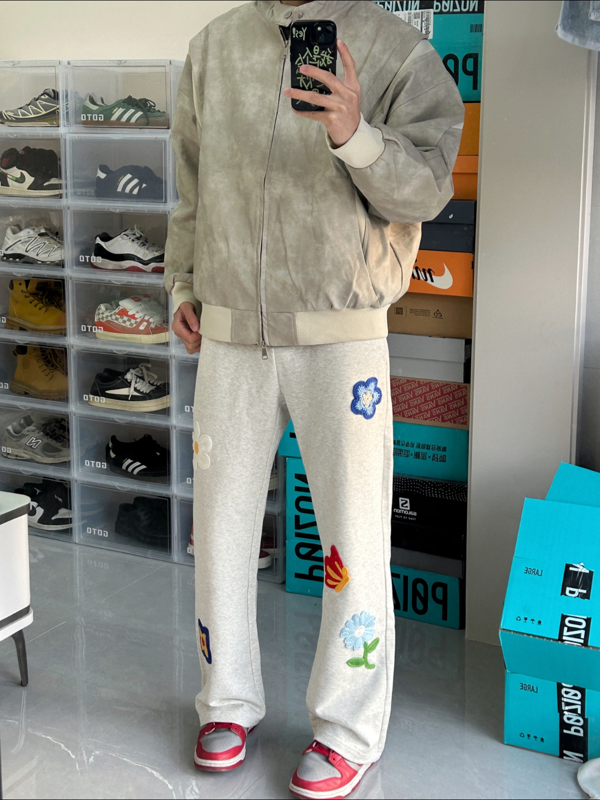挖到宝藏直筒卫裤! 重工花卉刺绣设计拉高裤子整体颜值,裤子重磅面料垂感也很ok,日常休闲,百搭耐看,男女同款小情侣可以一起穿!出门很拉风~ 开春这样穿简直不要太帅了,好吧! (图片来自网络,侵删)