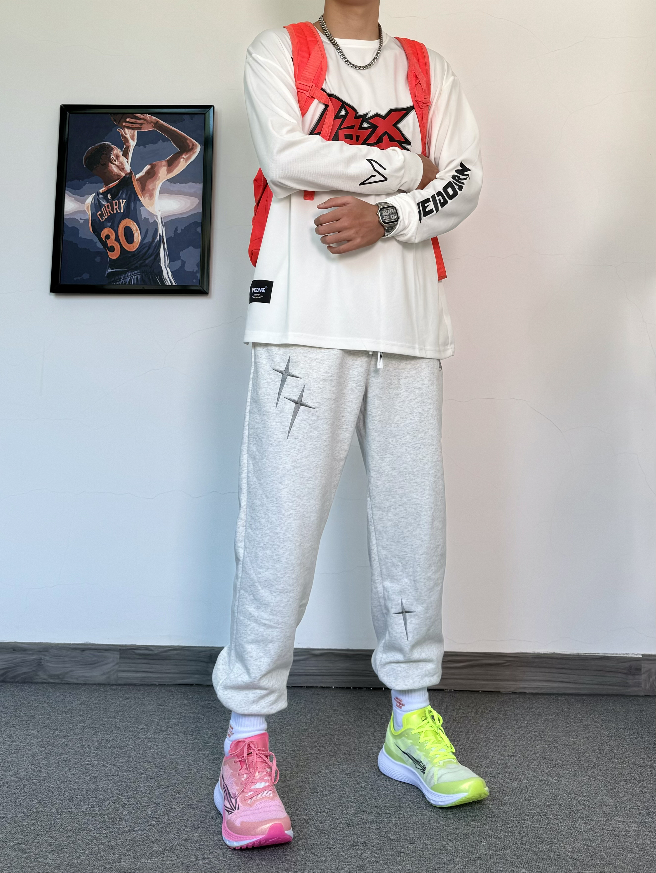 心心恋恋的春天终于来啦 上身一身美式味儿十足的穿搭 运动感十足✔️ 鸳鸯配色运动鞋足够吸睛 脚感舒适 太适合运动了 男生这样穿 很难不帅✨