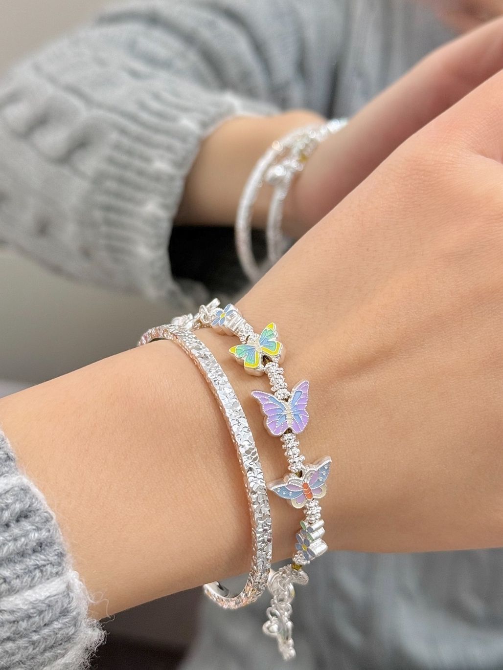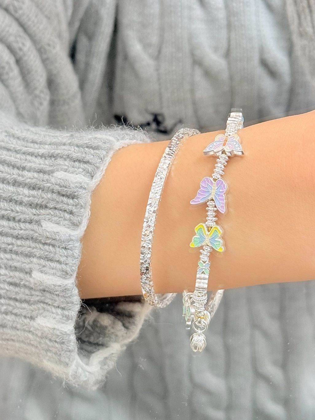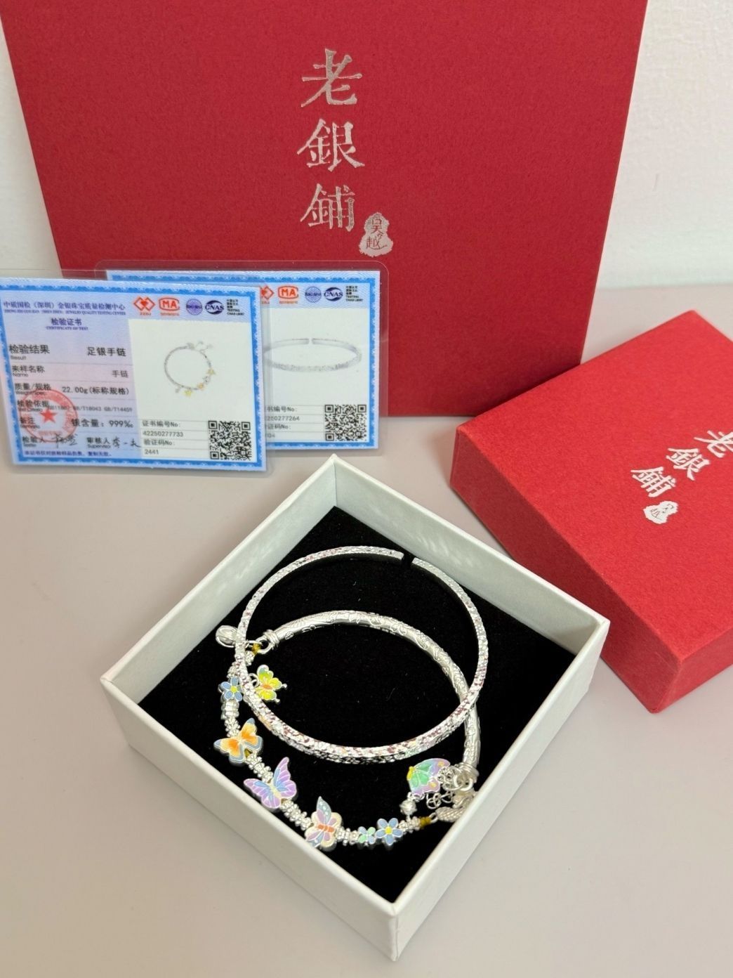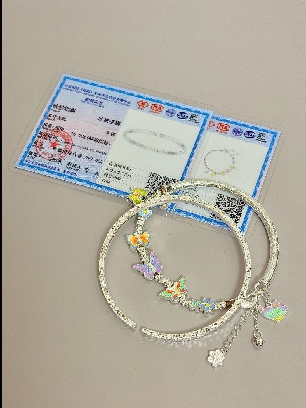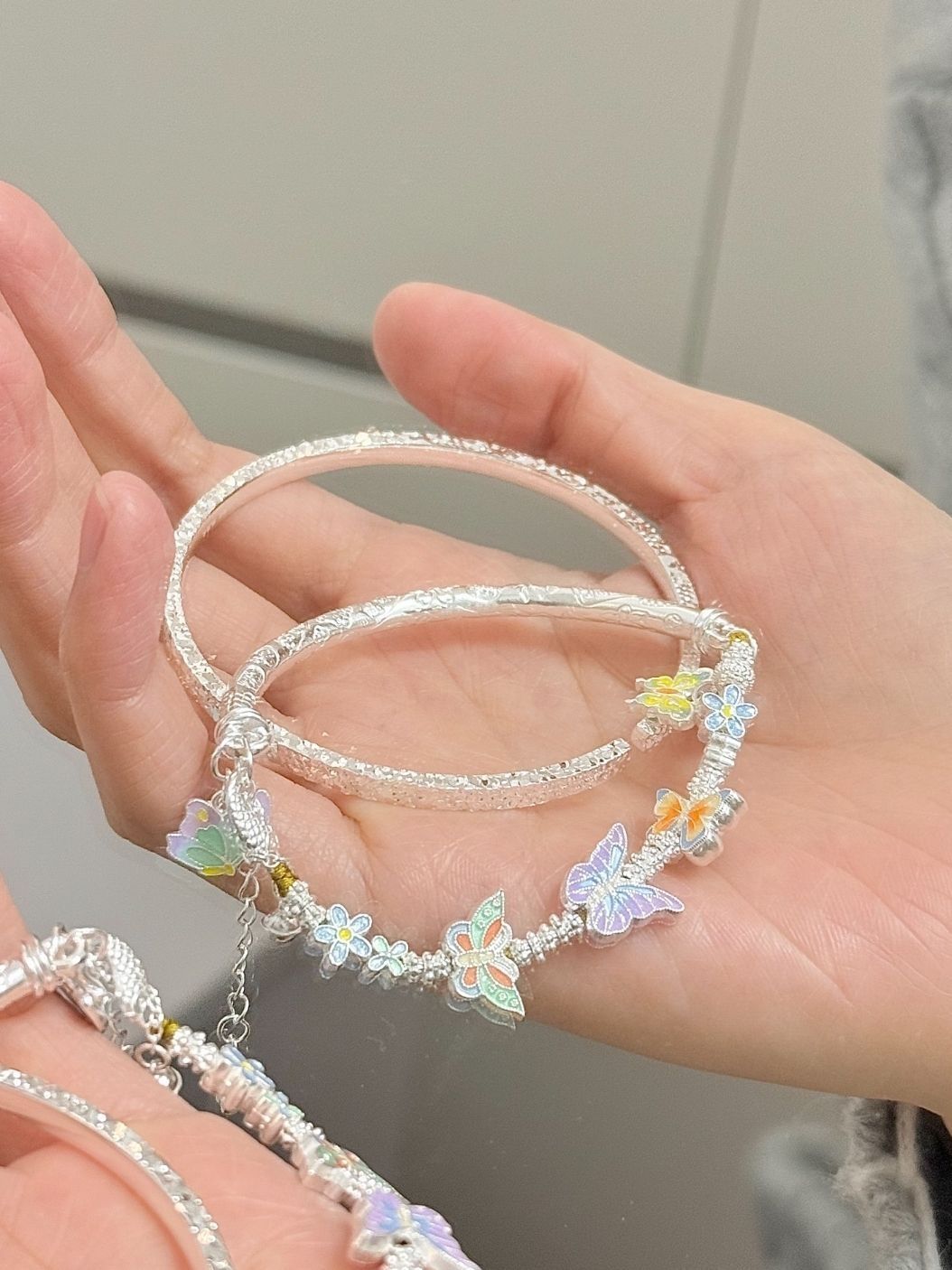 本篇笔记关联了吴越老银铺 蝴蝶俏芳妍半镯半链珐琅足银手链 12911841 银色、kader/卡蒂罗 流光之心波光粼粼足银手镯 SZ3084 银色等商品,为用户提供真实的使用体验和购买参考。