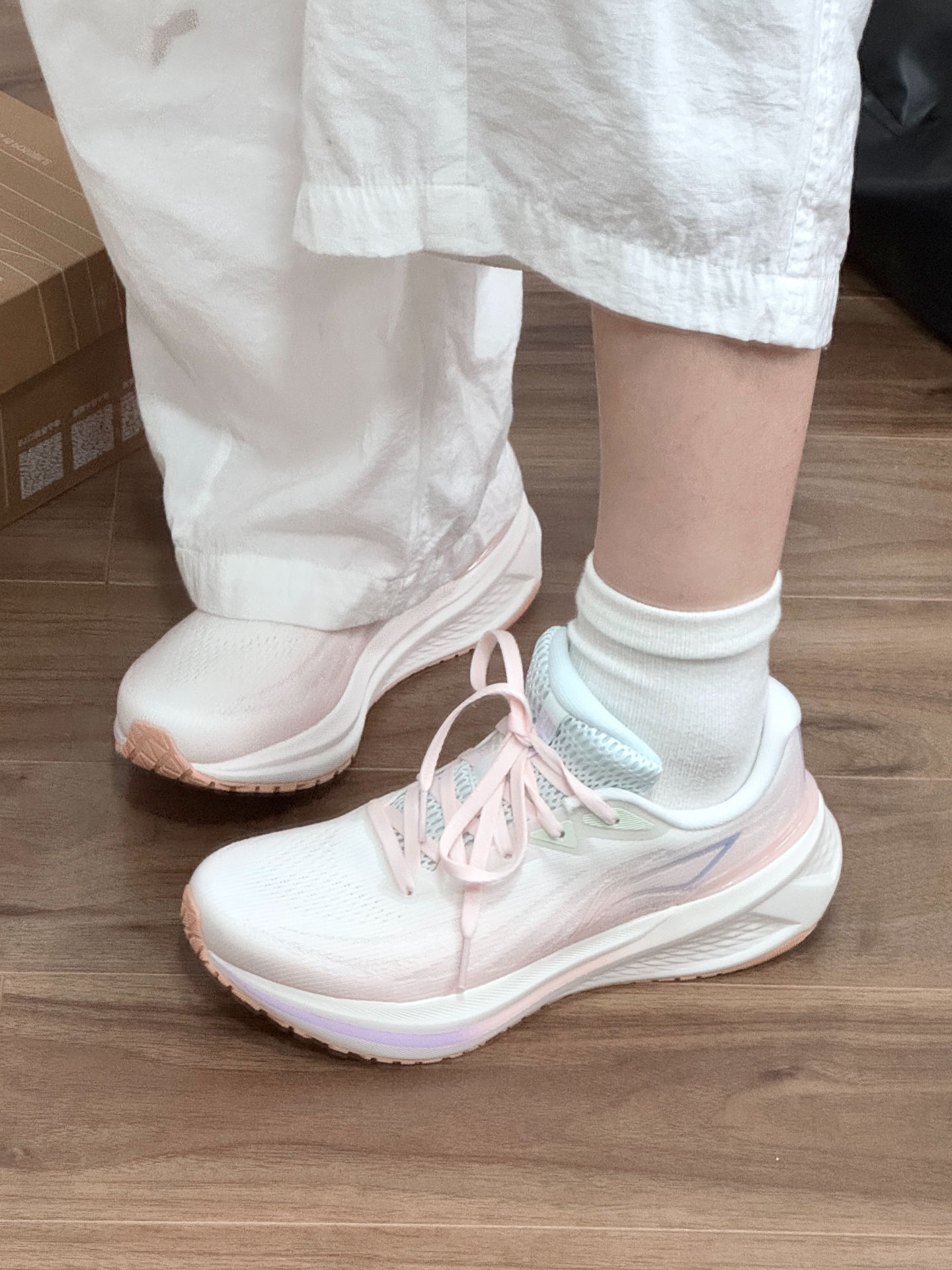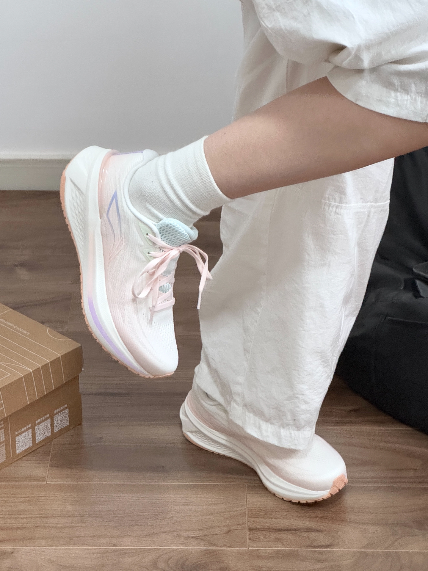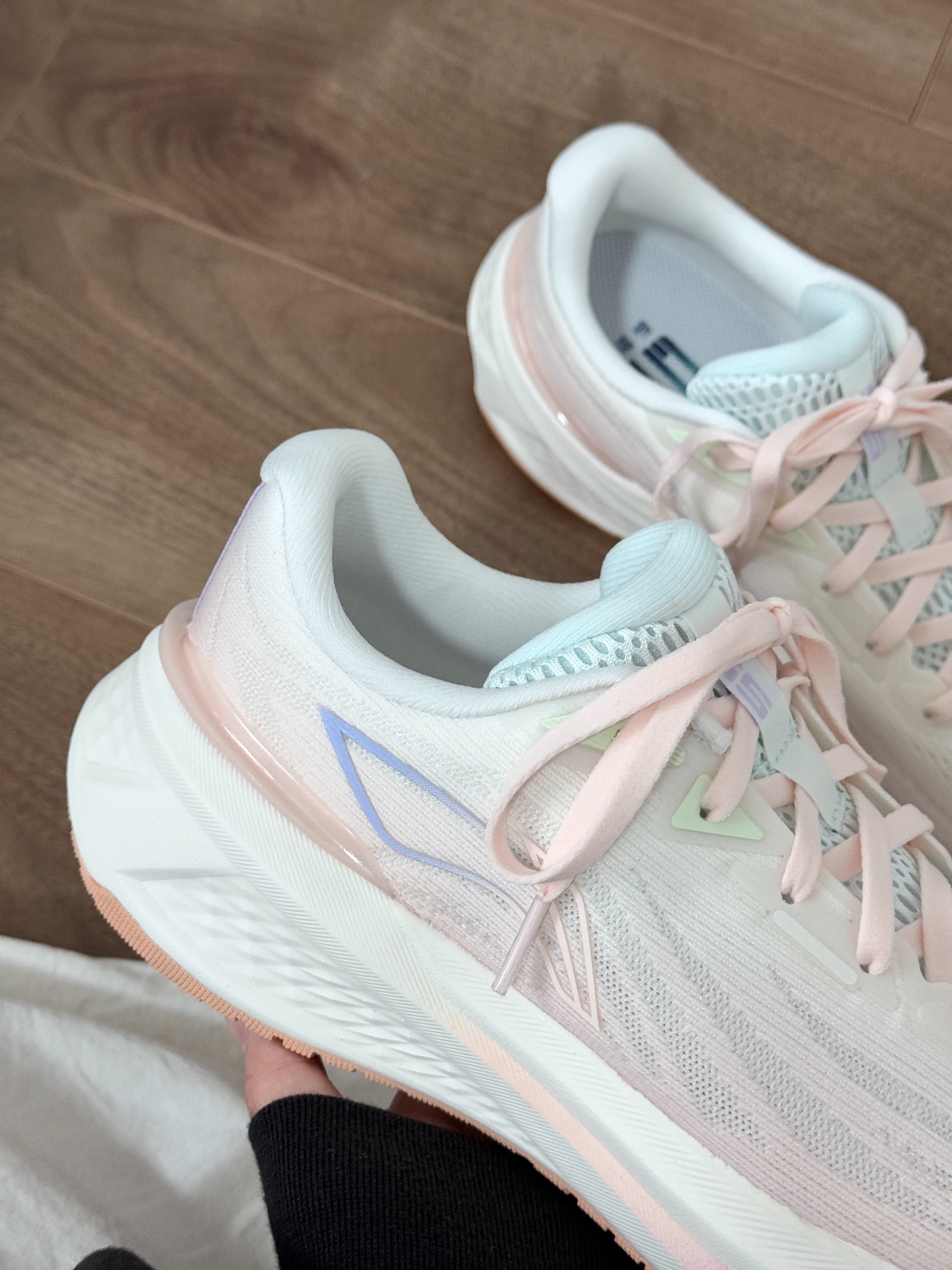 是李宁的吾适LITE3.0情人节桃花运呀 淡淡的粉色系敲好看 鞋的支撑力很足,穿上很软 日常跑步或者运动都很适合 我准备踏春穿这双去啦~