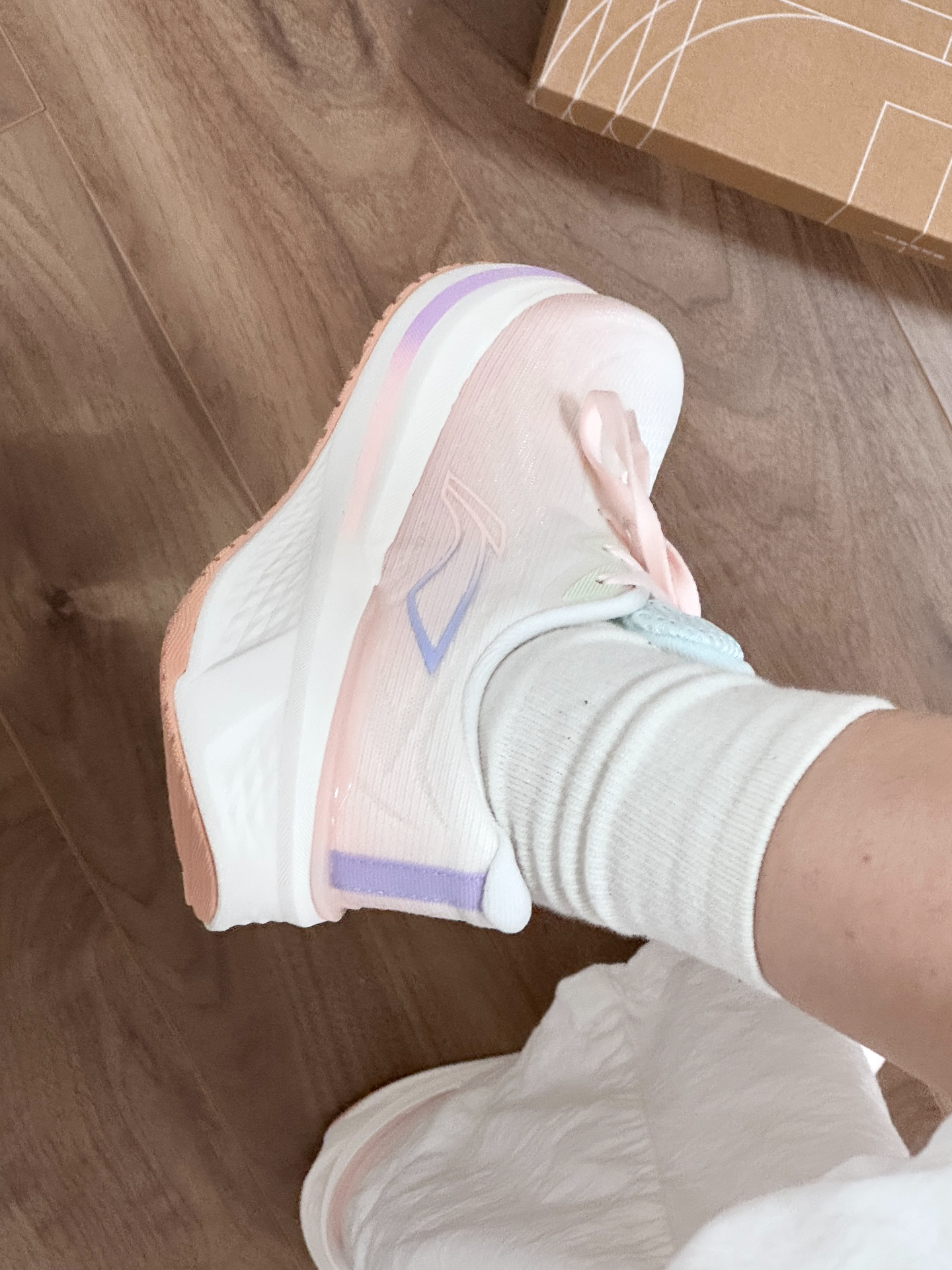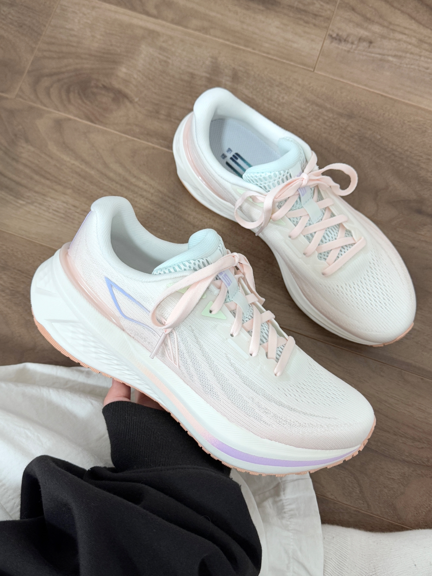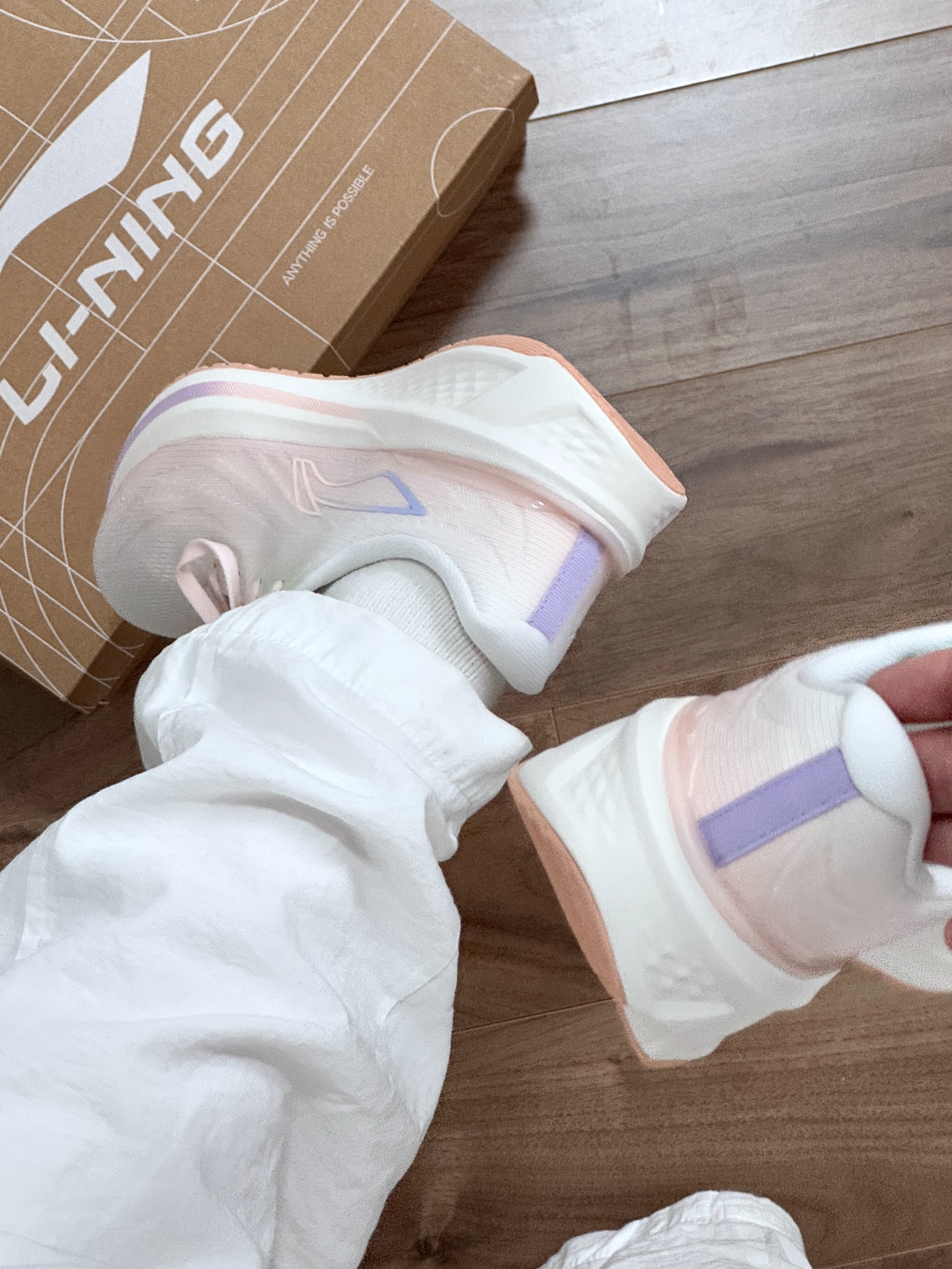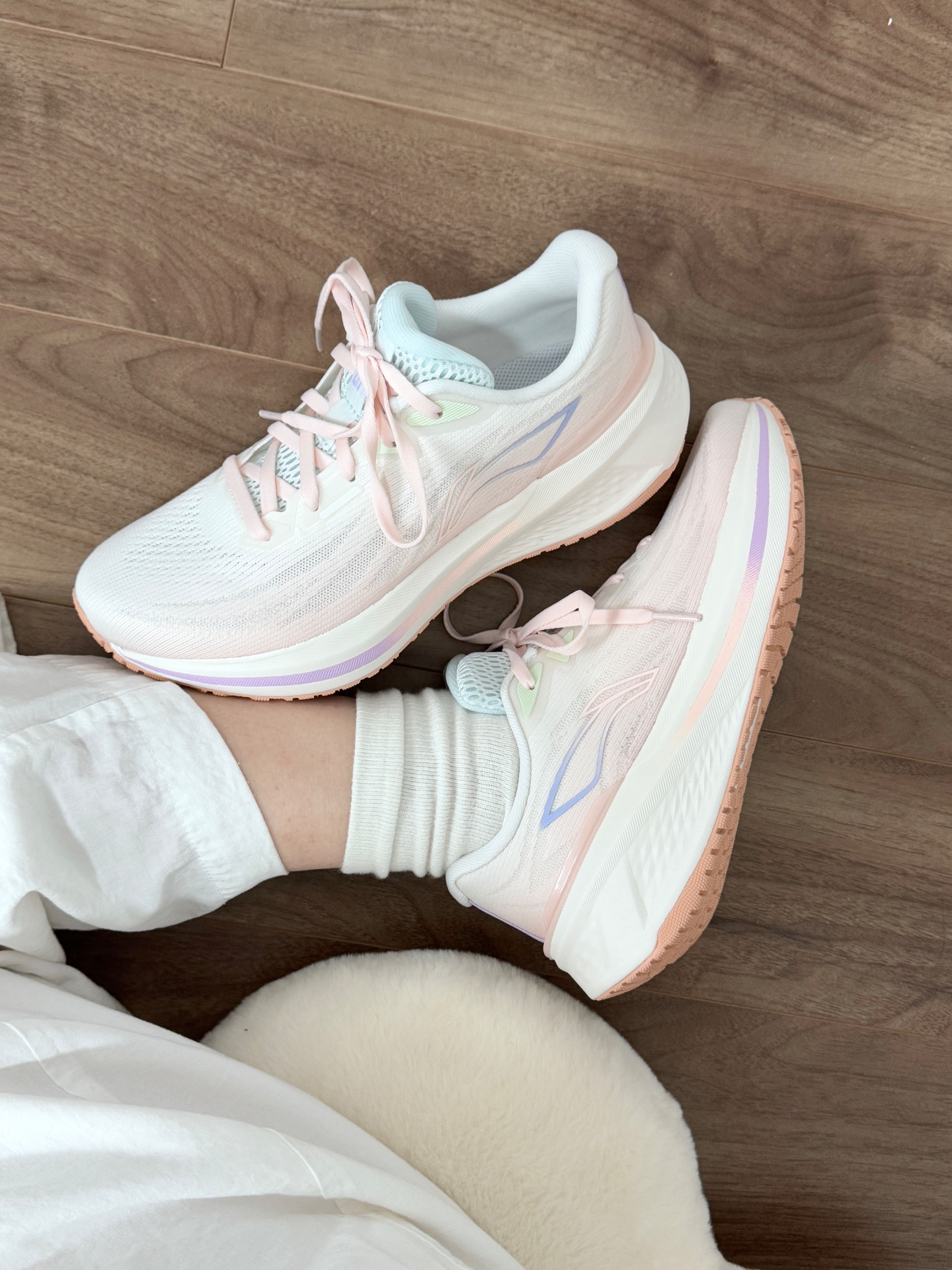 是李宁的吾适LITE3.0情人节桃花运呀 淡淡的粉色系敲好看 鞋的支撑力很足,穿上很软 日常跑步或者运动都很适合 我准备踏春穿这双去啦~