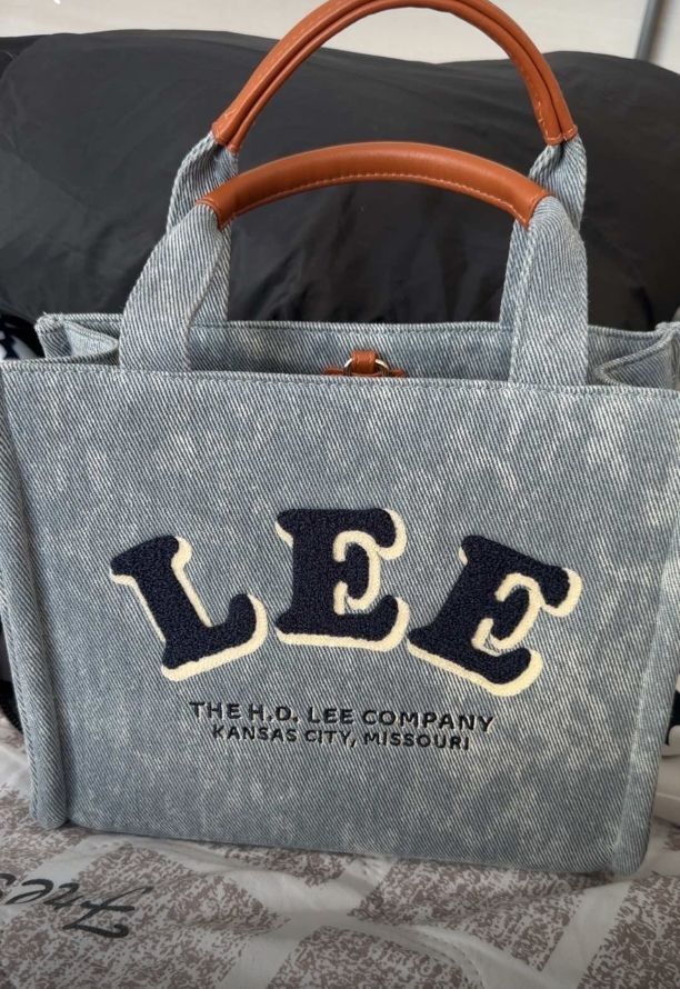 本篇笔记关联了Lee 牛仔TOTE 耐磨立体绒面字母Logo超大容量硬底做旧水洗学院风牛仔布托特包单肩包 水洗灰等商品,为用户提供真实的使用体验和购买参考。