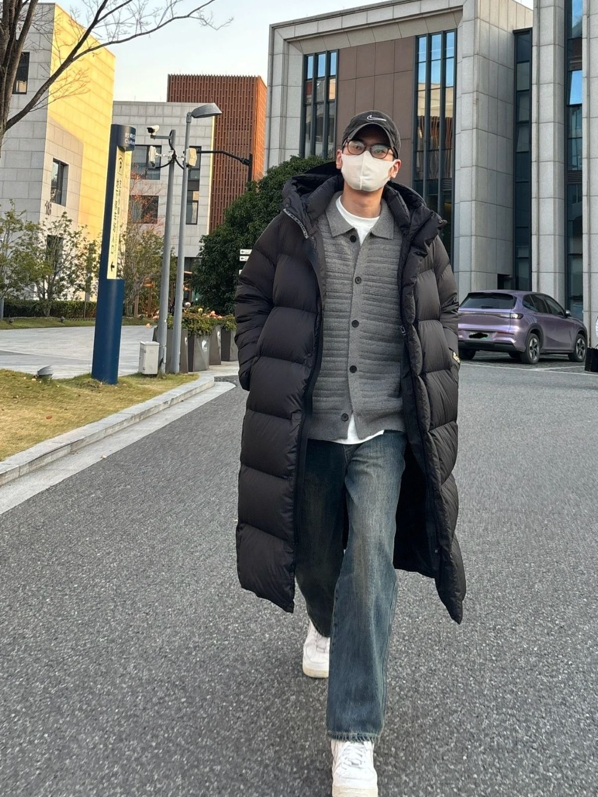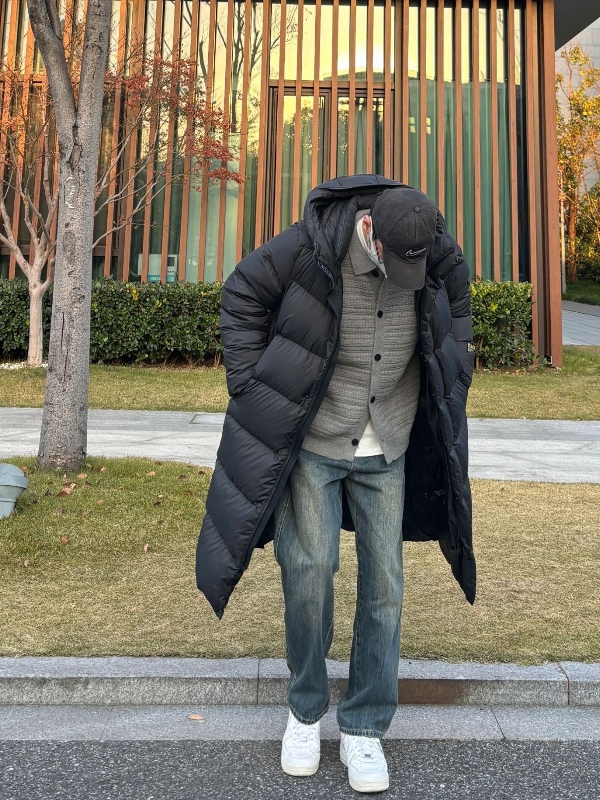 今天这套先用深灰色翻领开衫针织毛衣做内搭 裤子选择不挑腿型的水洗直简复古牛仔裤 鞋子上脚清爽干净的纯白色af1 接着套上简约大方的黑色宽松阔版长款连帽鹅绒羽绒服 充绒量很足,保暖防寒,这个冬天温度和风度我都要 图源网络侵删