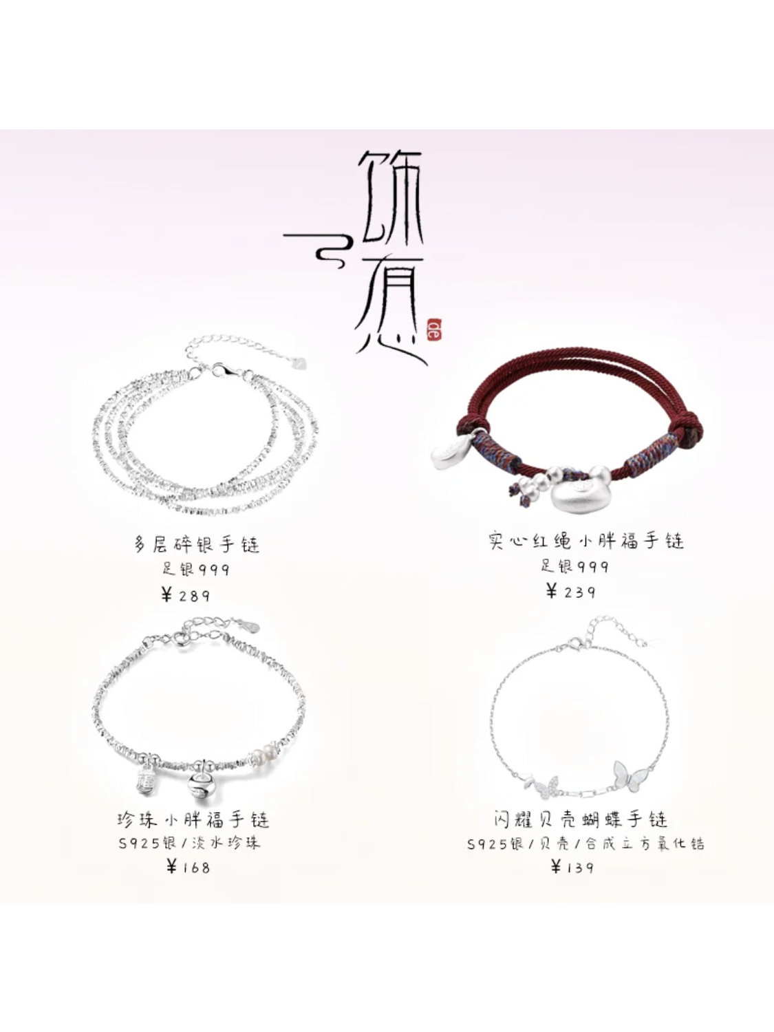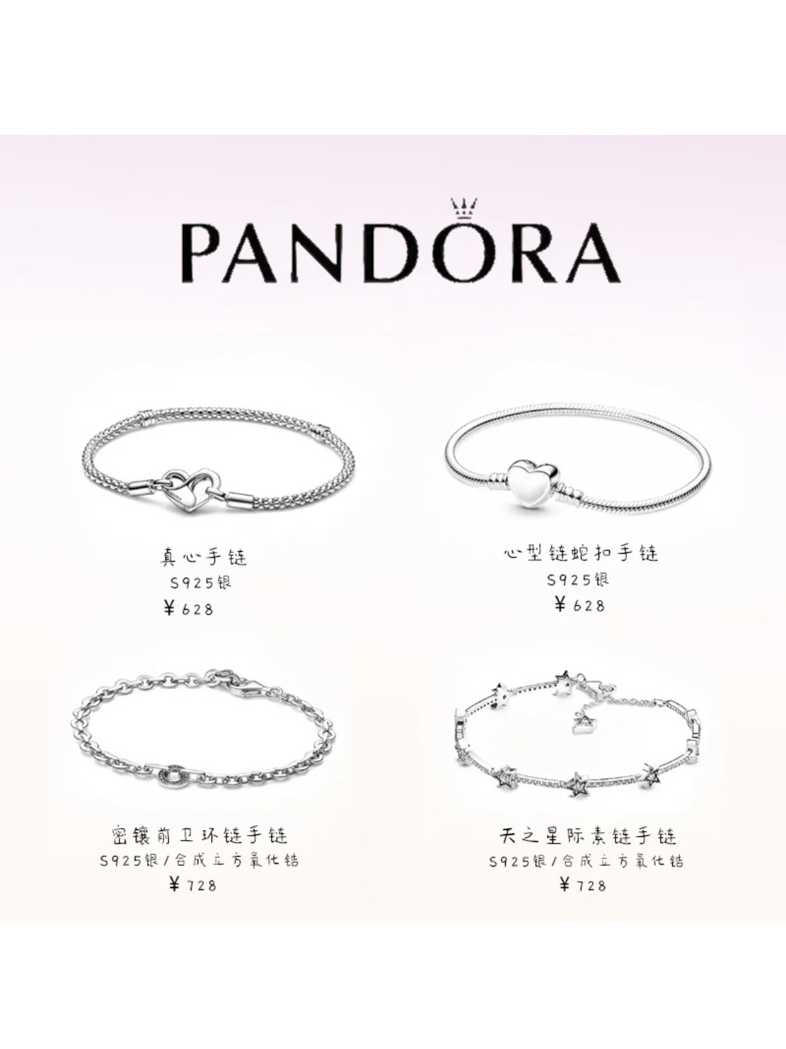 本篇笔记关联了PANDORA/潘多拉 心形链扣蛇骨链手链 599206C00 银色、Fanci/范琦 新中式铃兰花环S925银手链 SB02532W000 银色、GUDS GAVE/上帝礼物 万福金安足银情侣手绳 GUS2922 红色等商品,为用户提供真实的使用体验和购买参考。