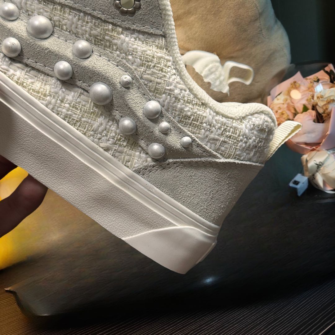拿到手上的时候,万斯的LOGO处一颗颗的珍珠像极了贪吃蛇,设计的非常有灵感,穿出去回头率非常的高 非常百搭。