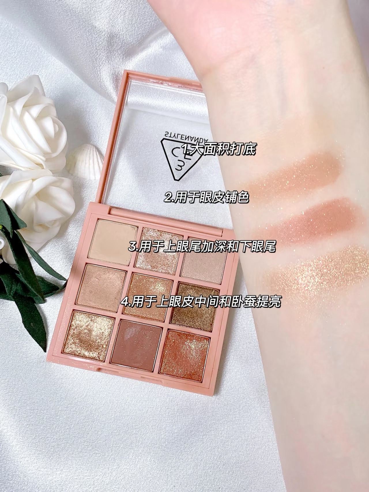 本篇笔记关联了3CE/三熹玉 细腻易上色九宫格眼影盘 哑光细闪九色纷呈 橘棕盘OVERTAKE 8.1g等商品,为用户提供真实的使用体验和购买参考。