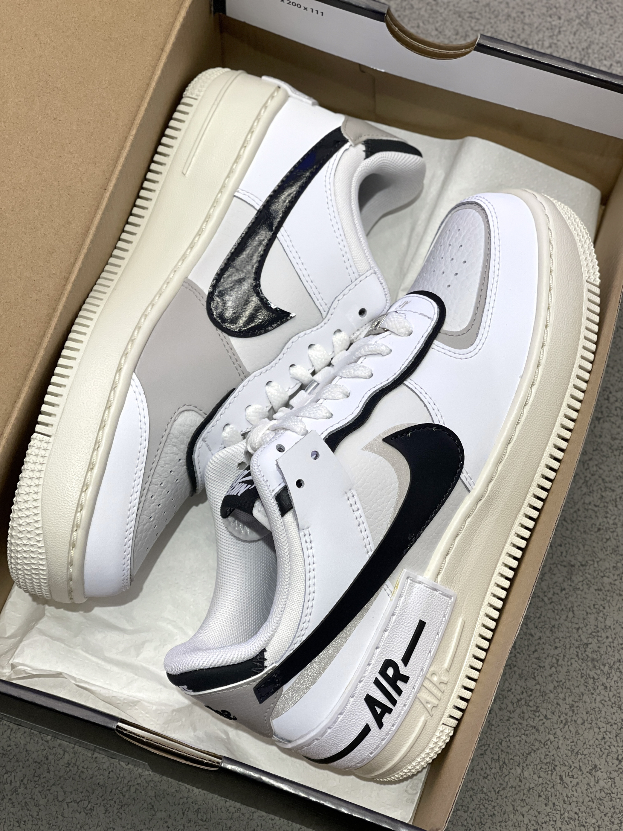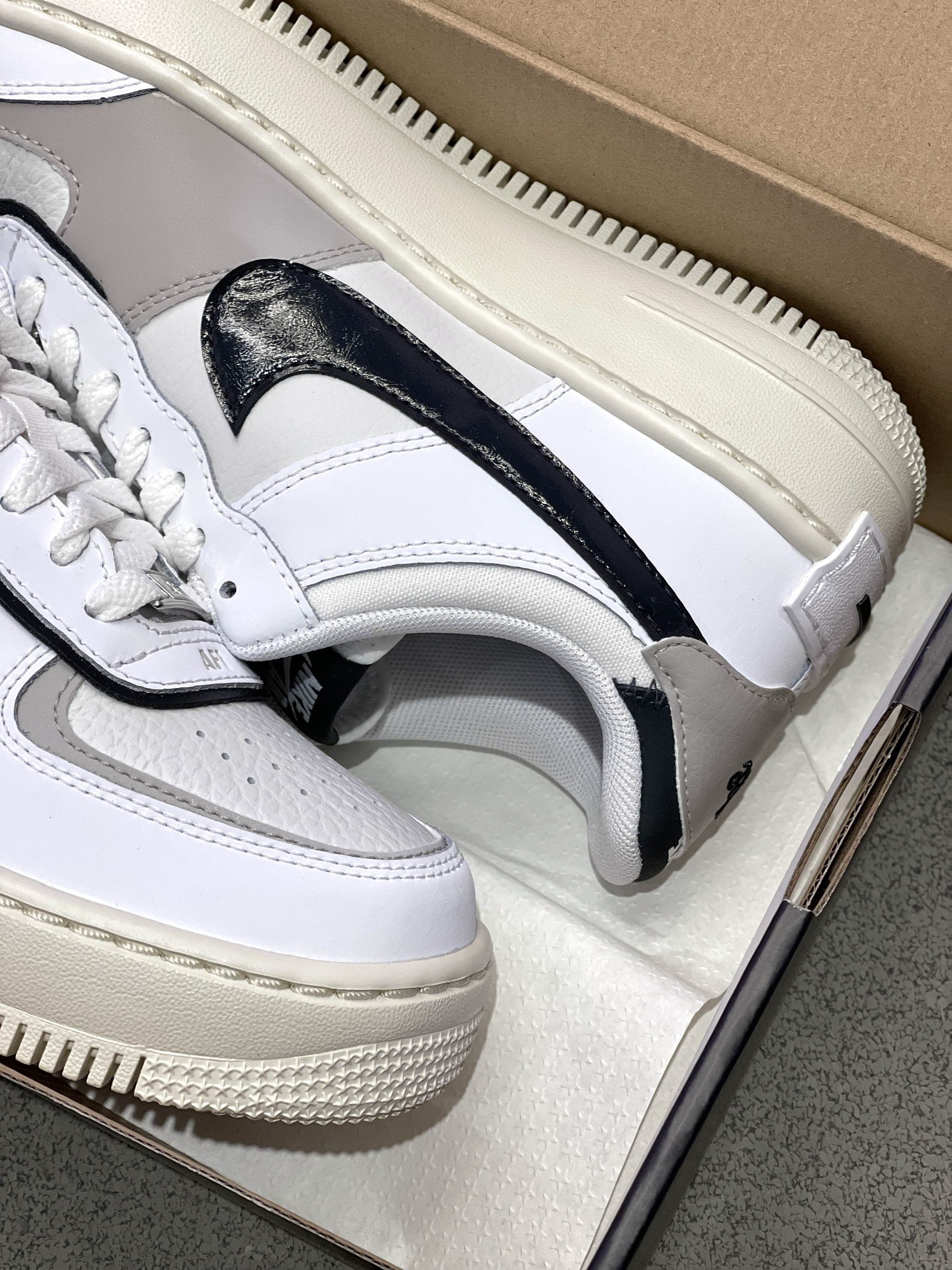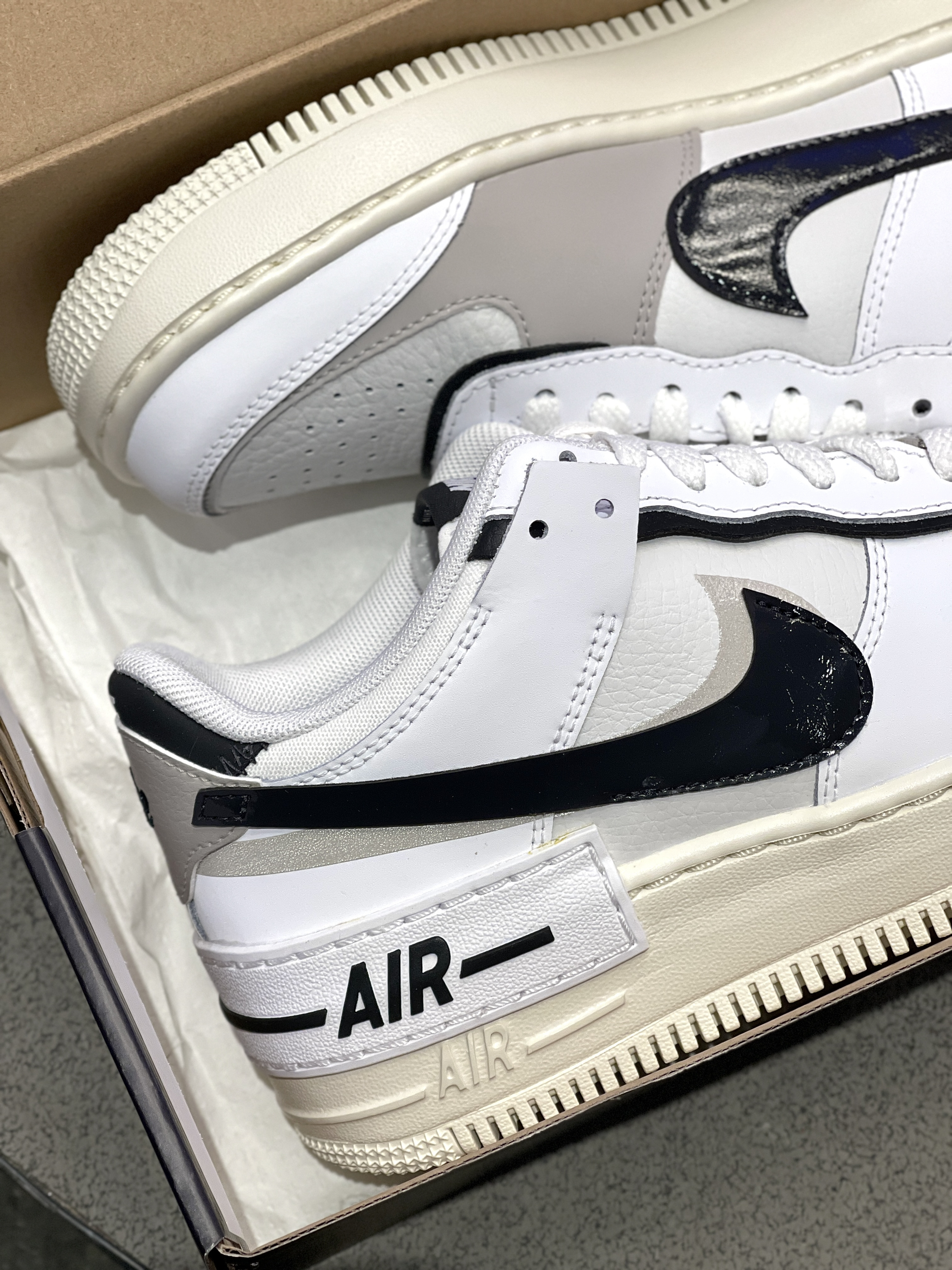 喜欢AF1的家人有福咯!轻量化空军一号来啦~ Nike|AF1 Shadow低帮板鞋“白黑色”,依旧是复古的空军一号低帮作为基础,黑白灰三种颜色、轻量化➕解构重组设计,穿起来轻便脚感也有改善哦!