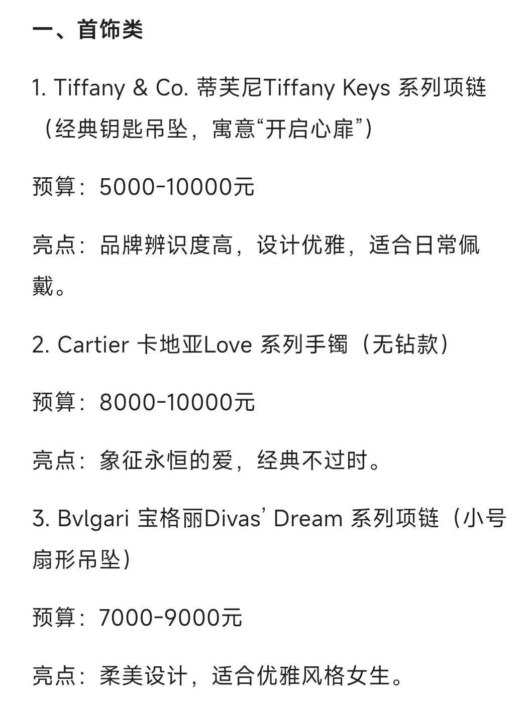 在万元预算左右,选择高端礼物可以兼顾品牌价值、设计感和实用性,以上是一些适合送女友的高端品牌推荐,涵盖首饰、包包、配饰、美容科技等不同类别,需要的宝子可以参考噢~ 这些品牌和产品都具有高端的品质和口碑,可以根据女友需求选择合适的礼物,希望这份清单能帮你挑到让她心动的礼物!🎁