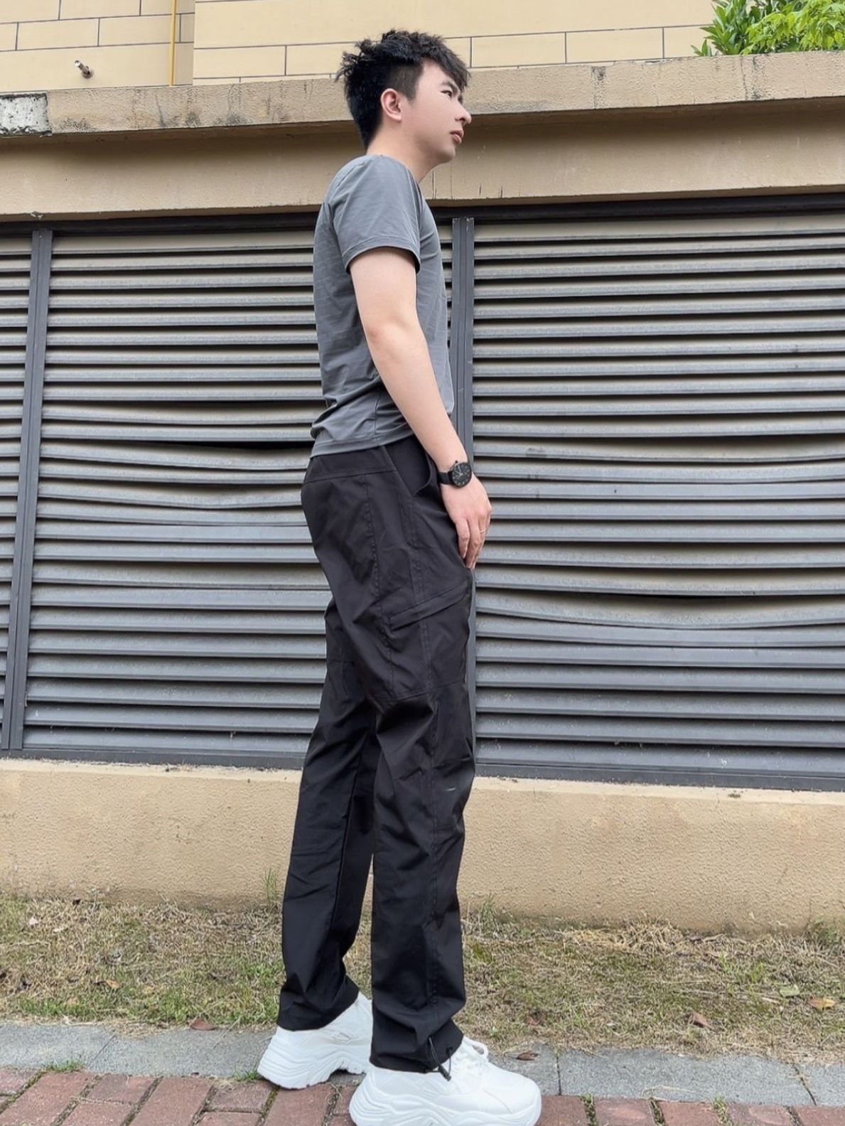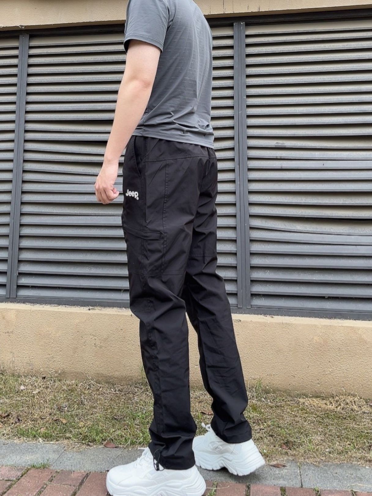 选了条Jeep的山系的冲锋裤 搭配一条灰色短袖看起来又潮又酷 裤子×码的,穿上合身 面料是防水速干的,夏天穿也OK 口袋的裁剪设计也非常帅气很有机能风 一整个气质氛围靠这个穿搭出来就是给人与众不同一点 图源网络侵删
