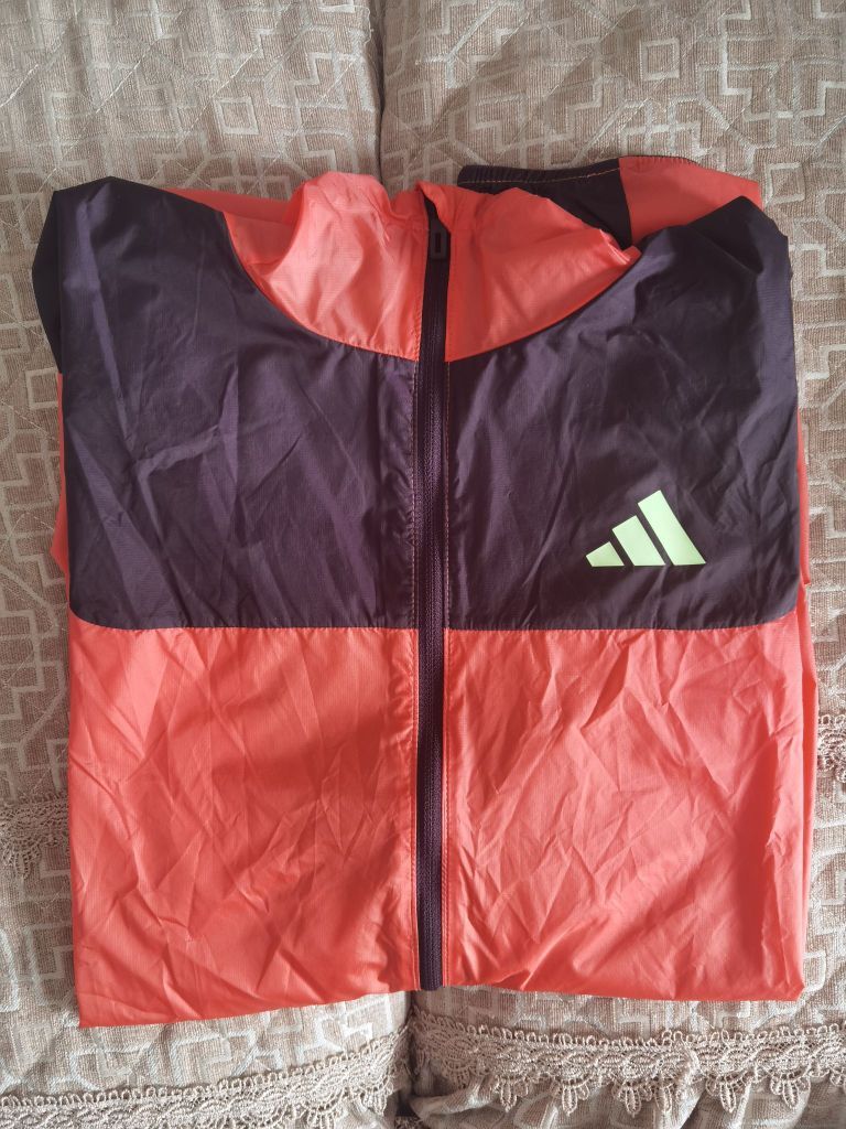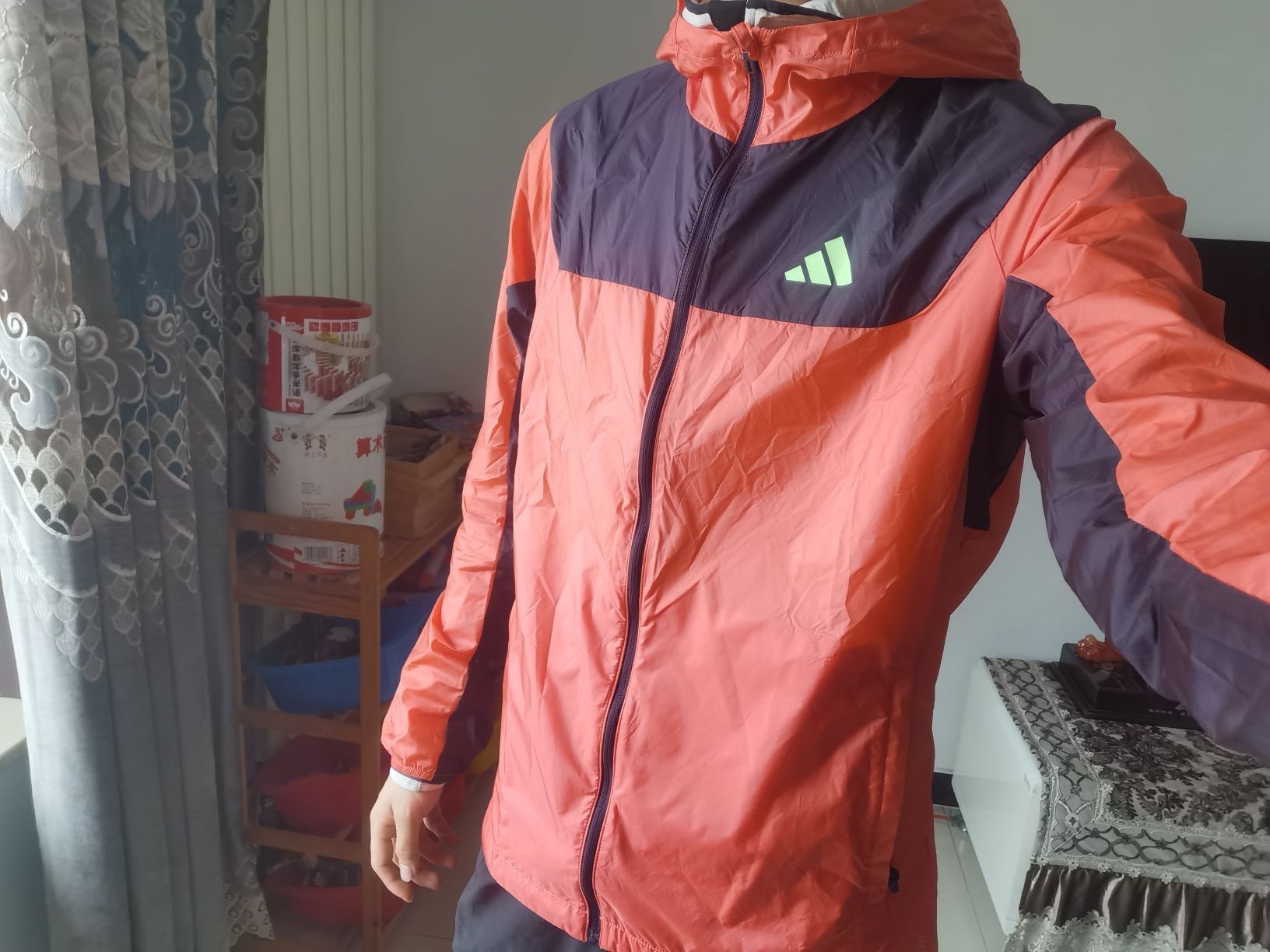阿迪这件跑步风衣运动党非常值得入手。 首先是材料轻薄,重量特别轻,跑步训练不会增添负担。同时面料柔软舒适,在大幅度伸展时完全不会感觉到被束缚。穿着风衣在防风的同时也不会闷汗。 衣服的款式设计简洁大气,橙红与黑色的拼色彰显运动的元素。袖口收口,帽子后侧与下摆的弹性设计,让它在运动时更加贴合身体。 开春跑步热身甚至较冷的地方进行强度训练都可以穿着,夏天甚至可以当件皮肤衣穿。